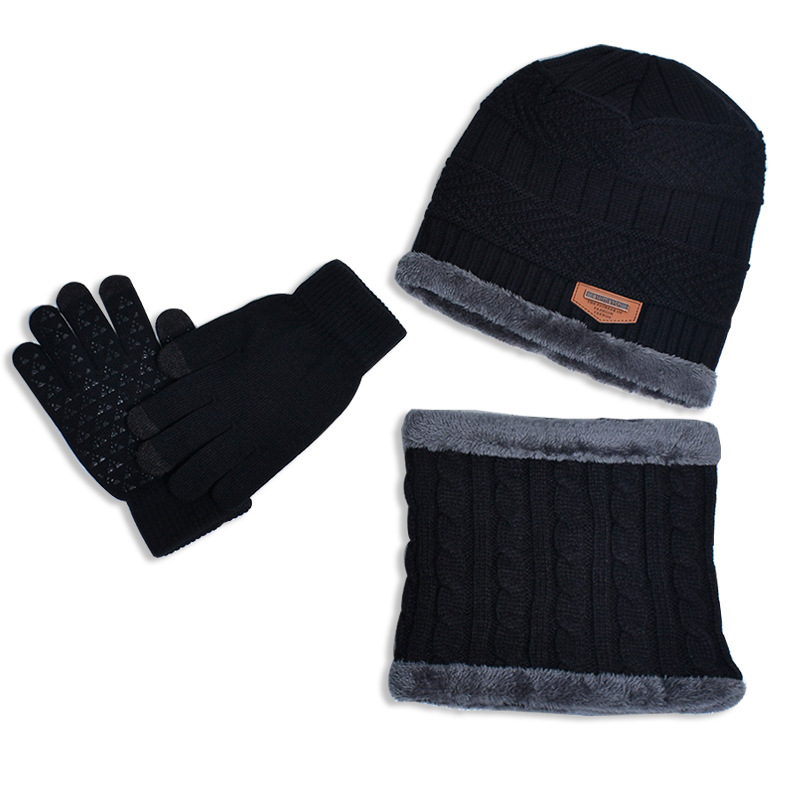 9552厂家跨境爆款针织毛线帽子围巾手套三件套 冬季保暖套装批发