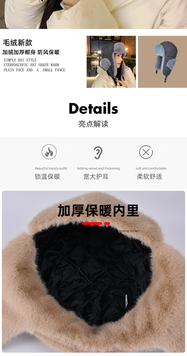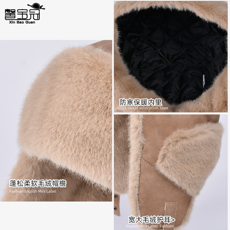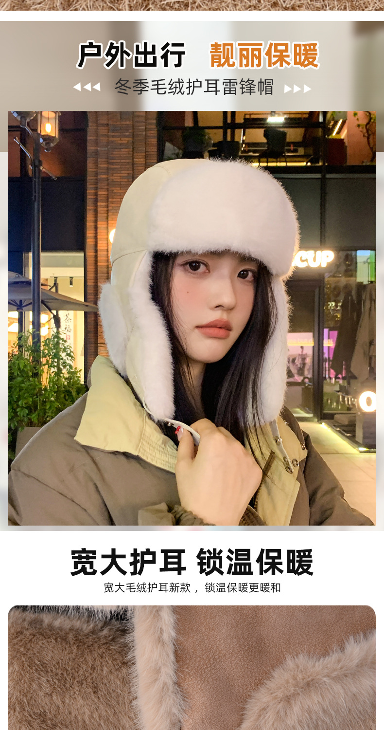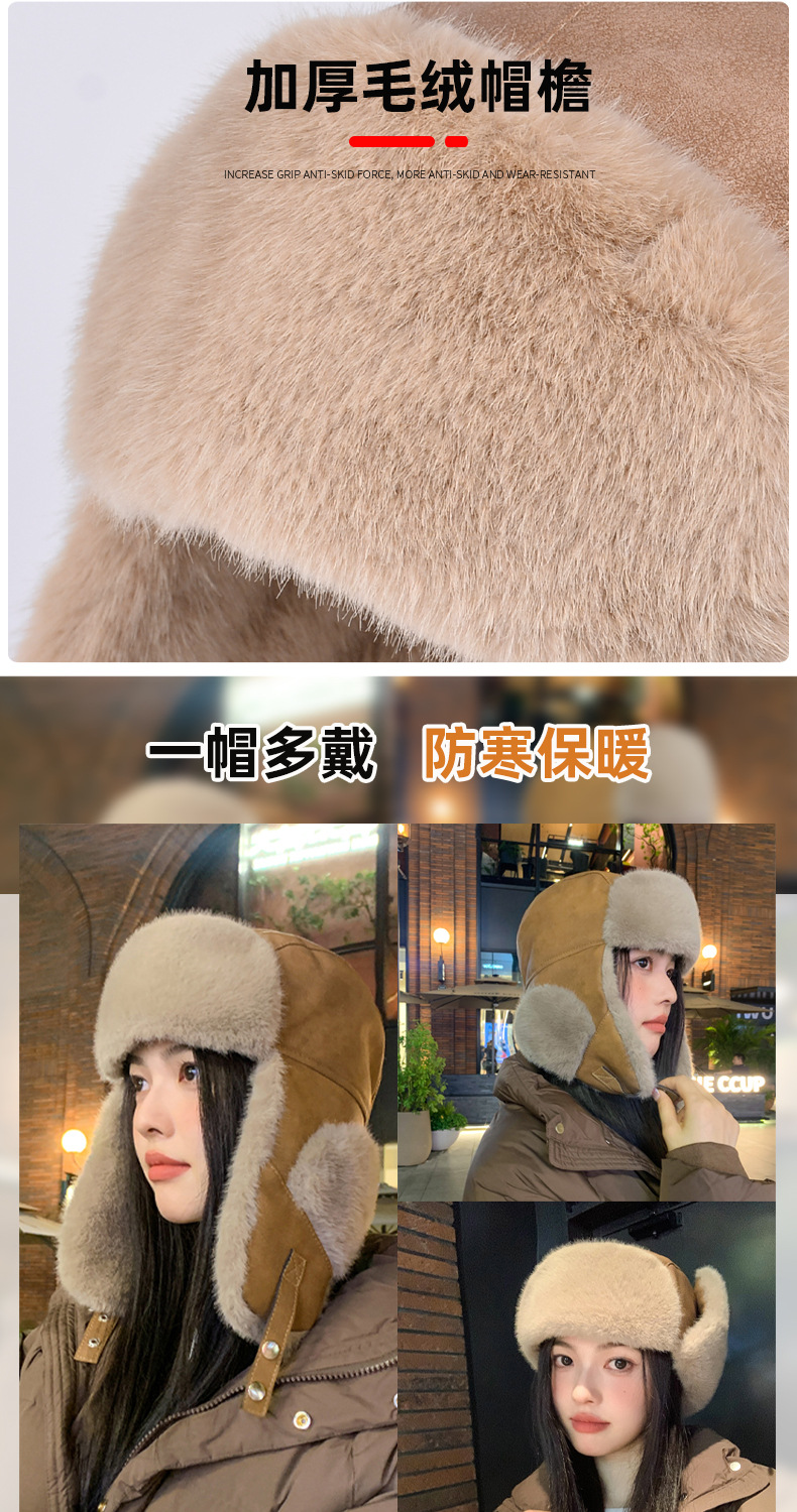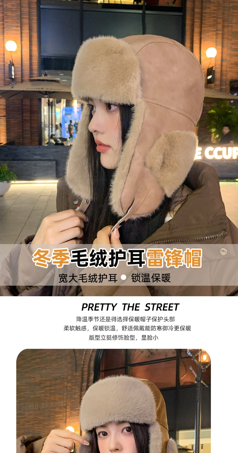 冬季麂皮绒帽子女显脸小护耳套头帽户外骑车滑雪加厚防寒雷锋帽潮