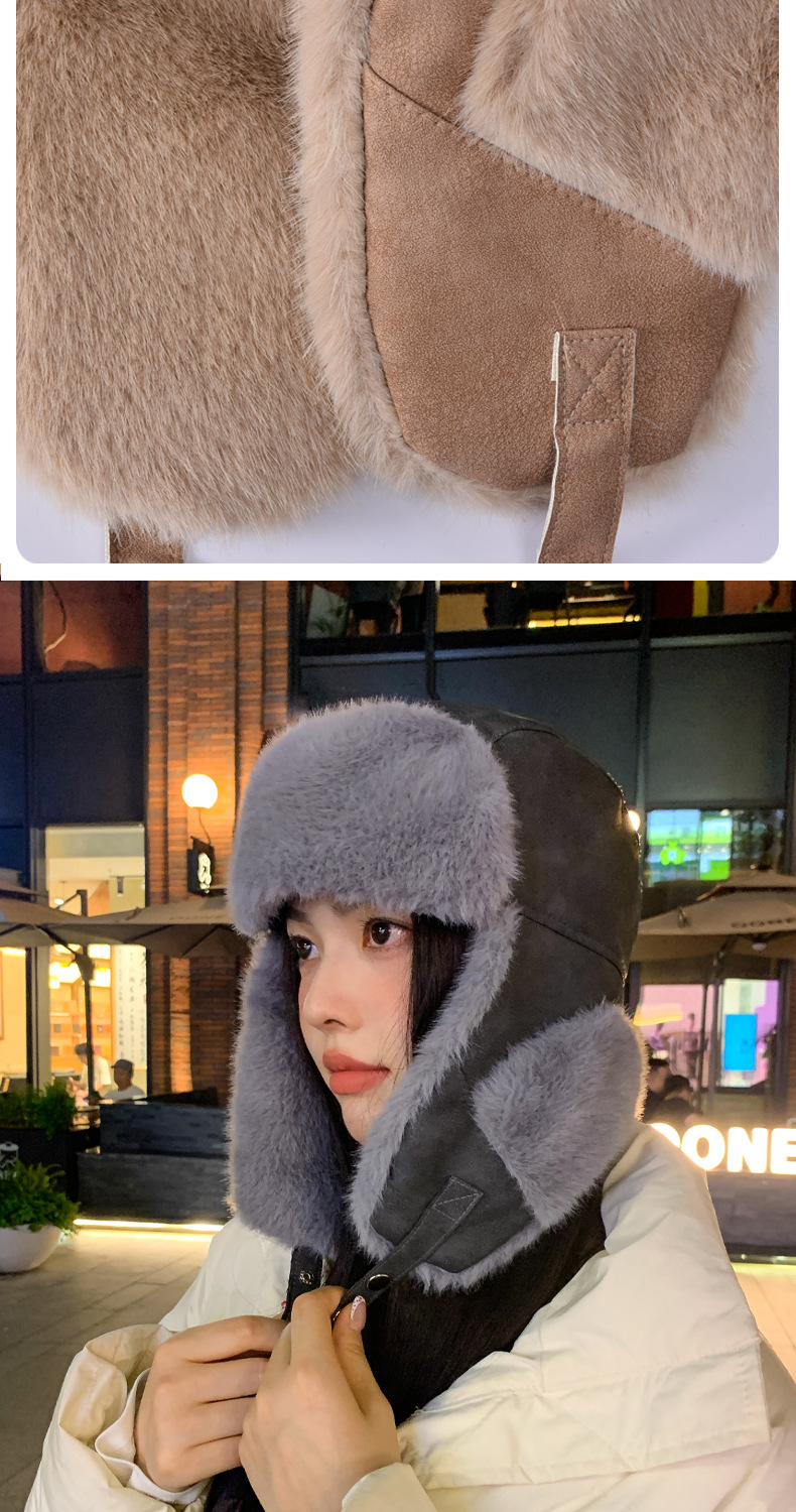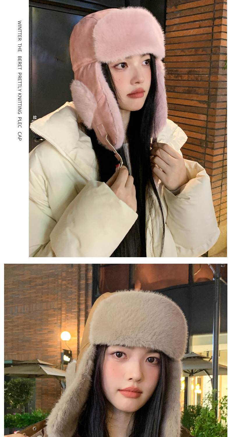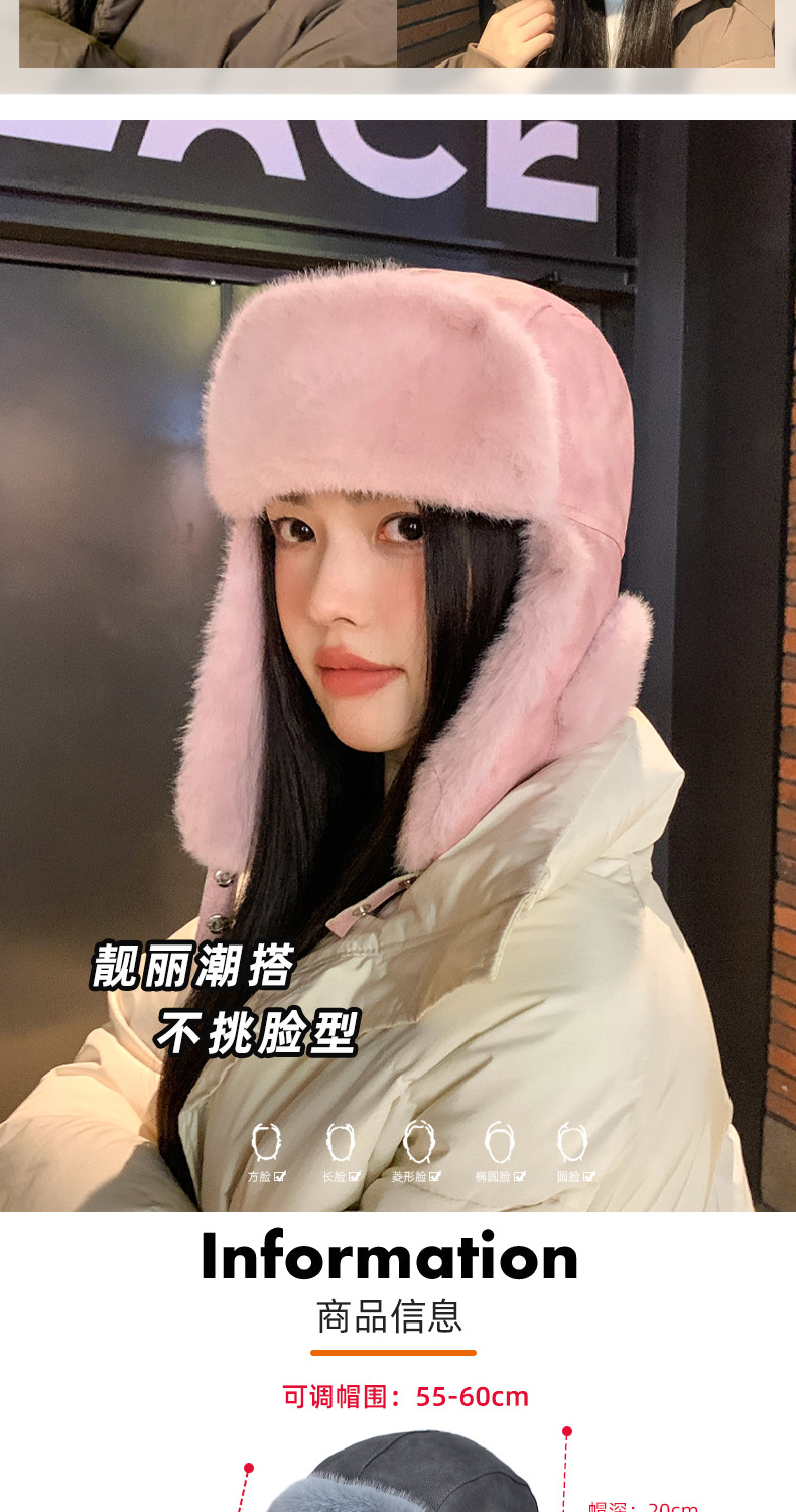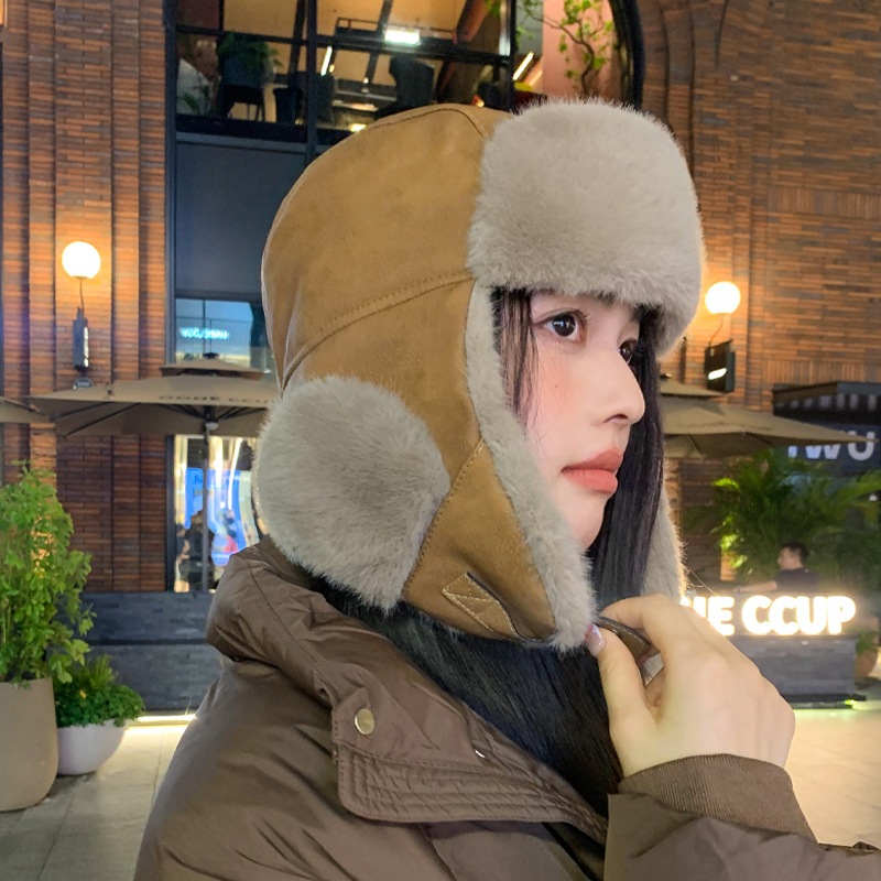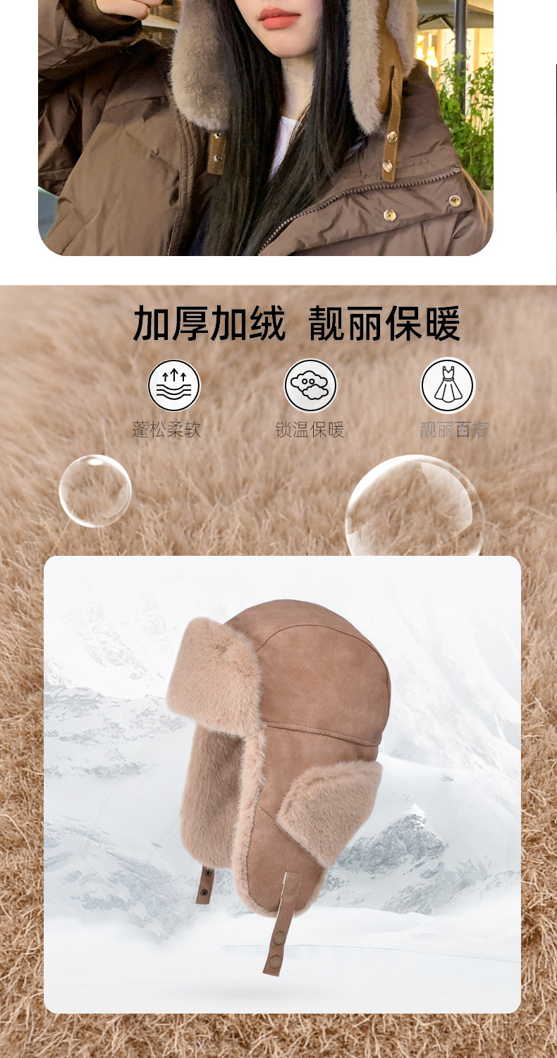 冬季麂皮绒帽子女显脸小护耳套头帽户外骑车滑雪加厚防寒雷锋帽潮