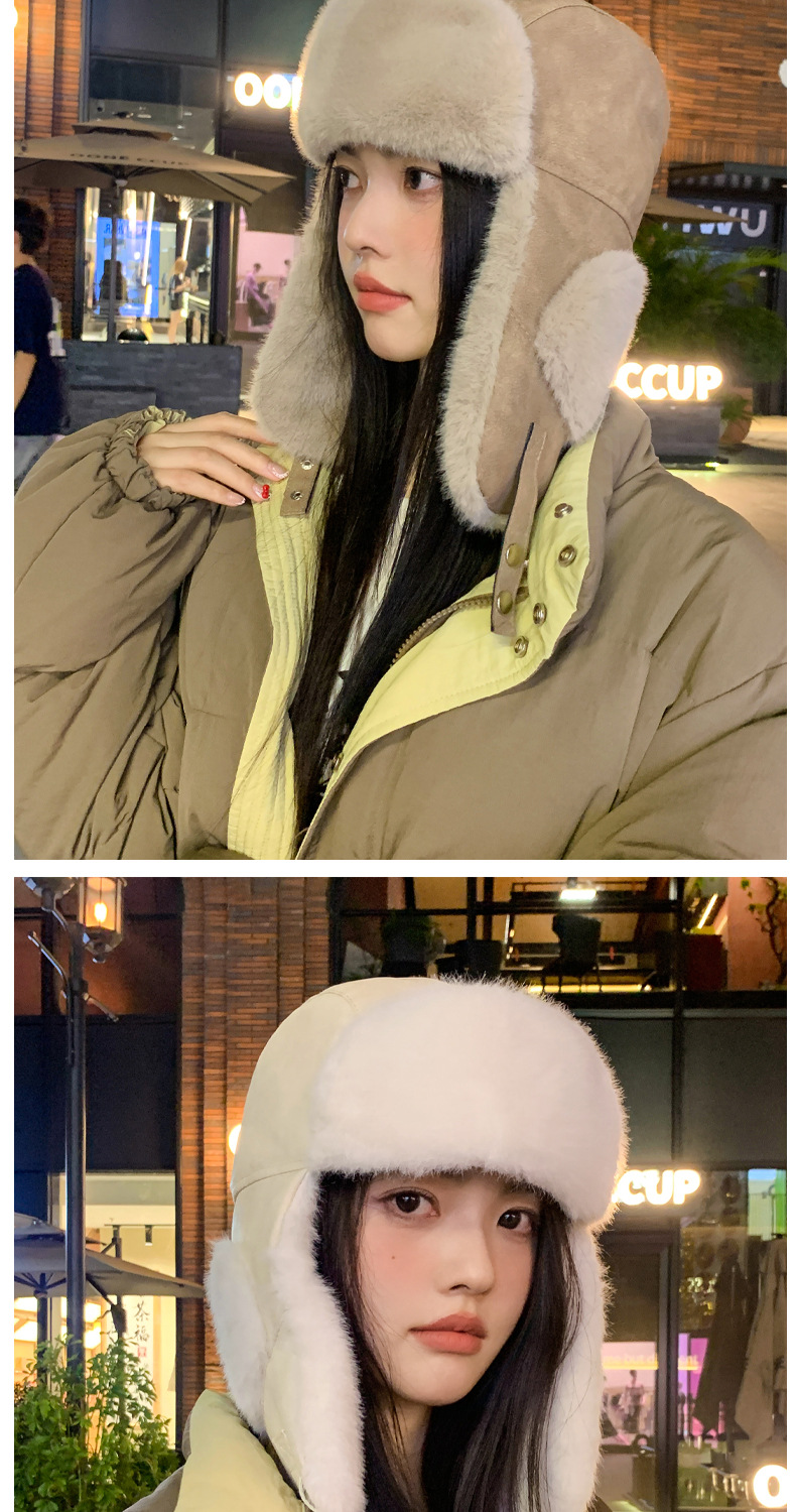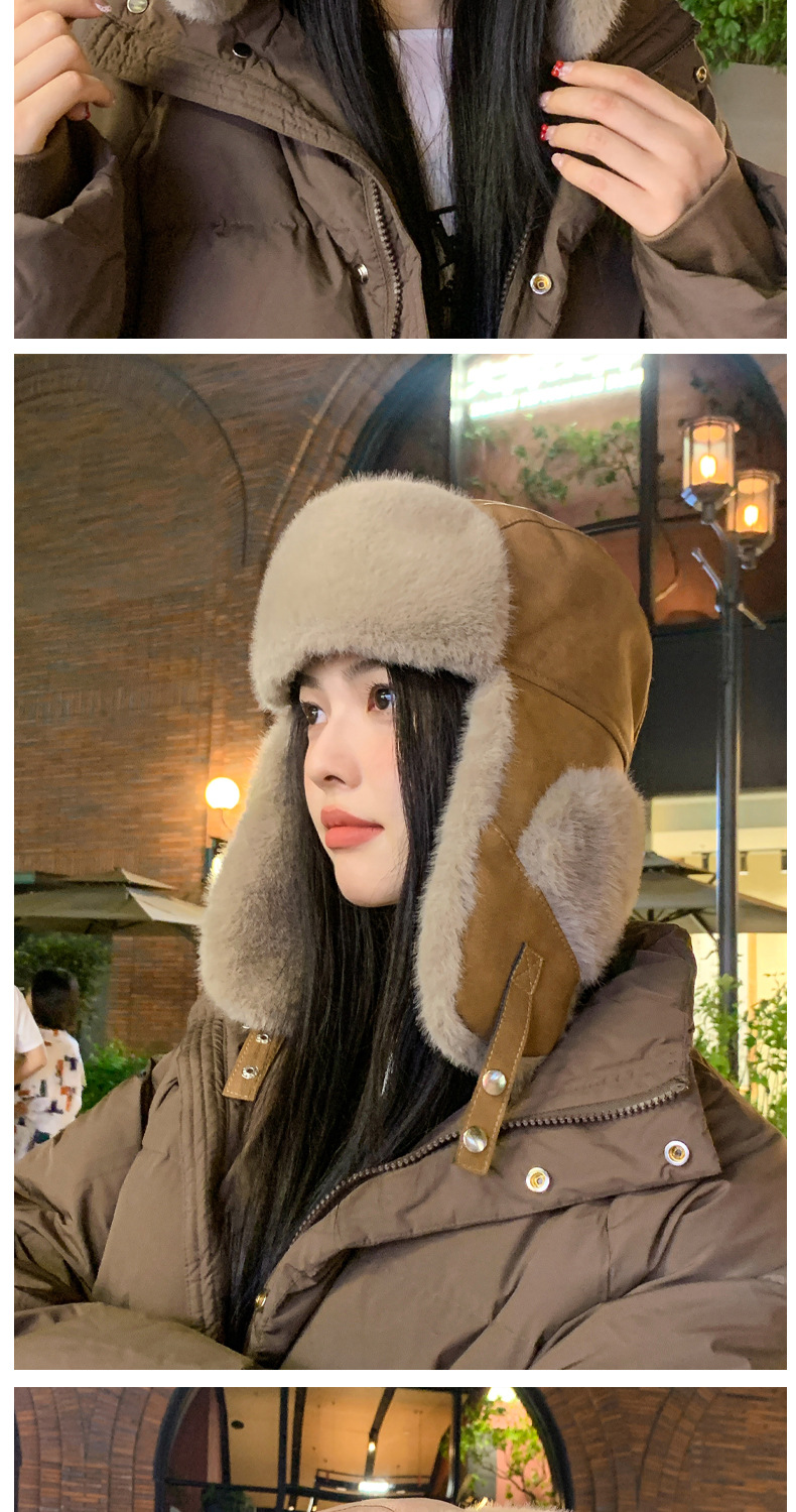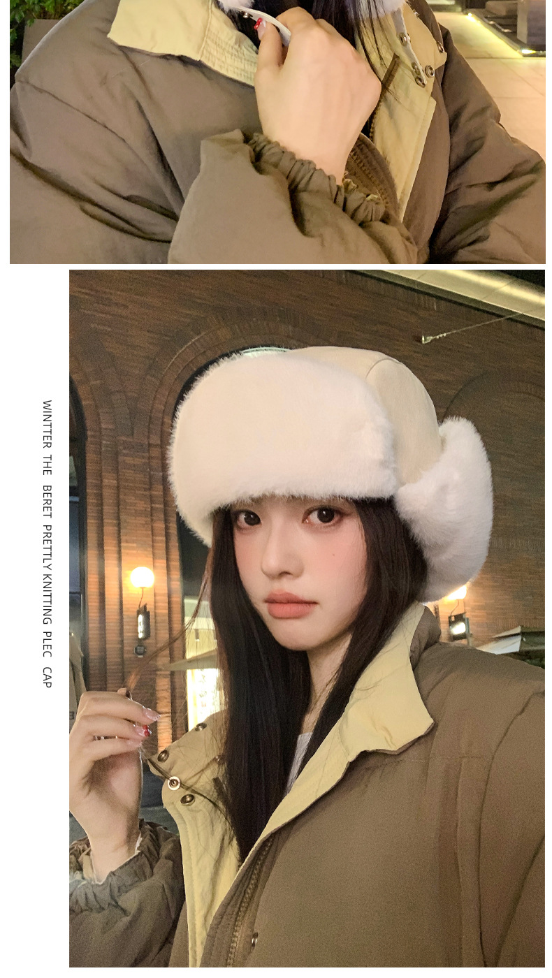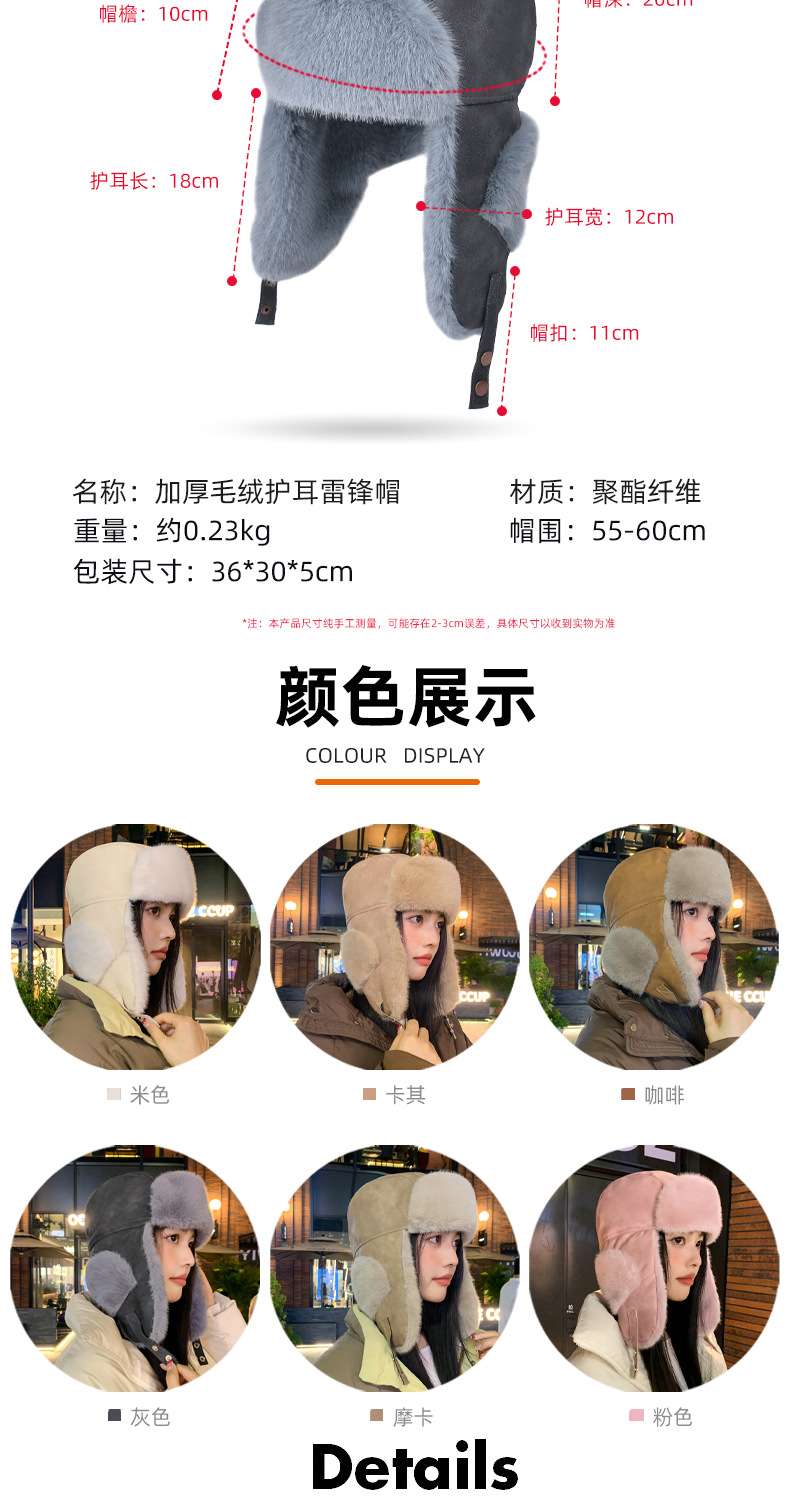 冬季麂皮绒帽子女显脸小护耳套头帽户外骑车滑雪加厚防寒雷锋帽潮