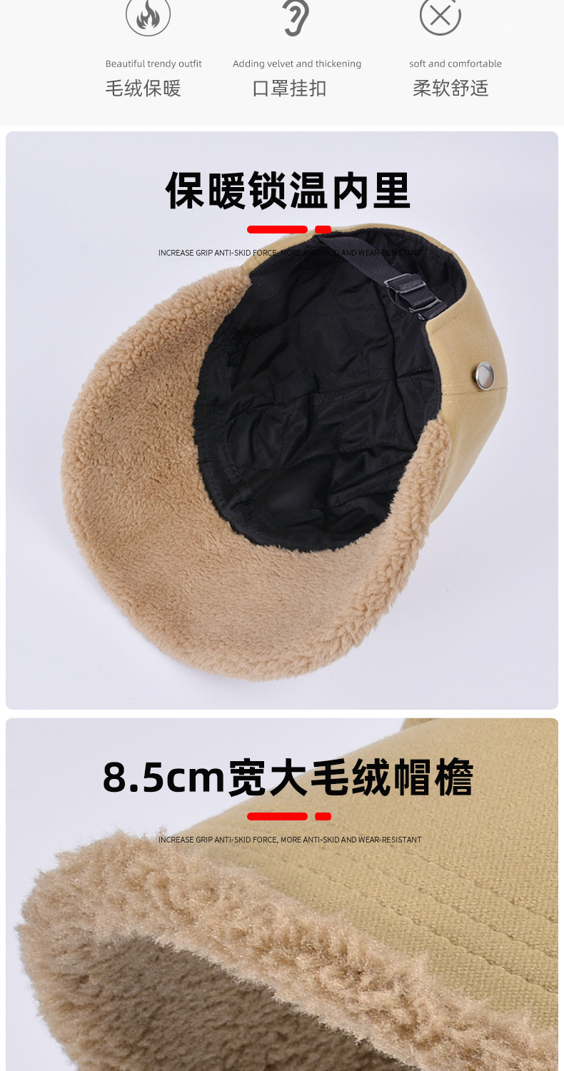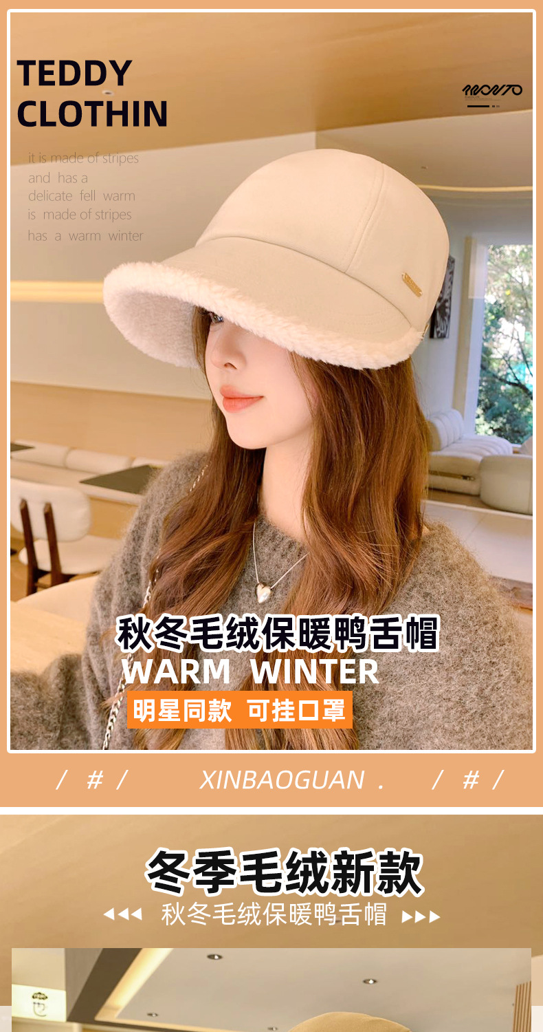 8558秋冬季毛绒保暖护耳帽子女赵露丝同款韩版百搭加厚鸭舌渔夫帽