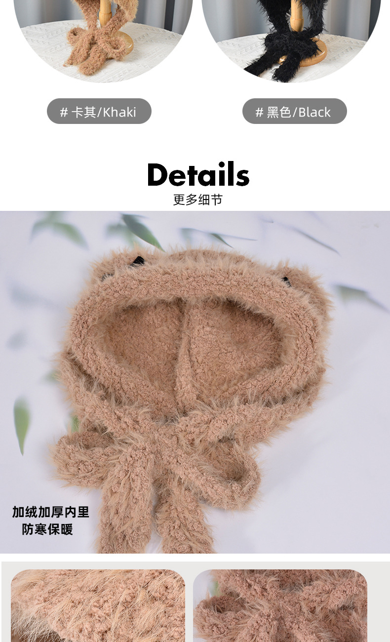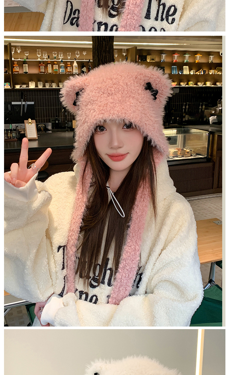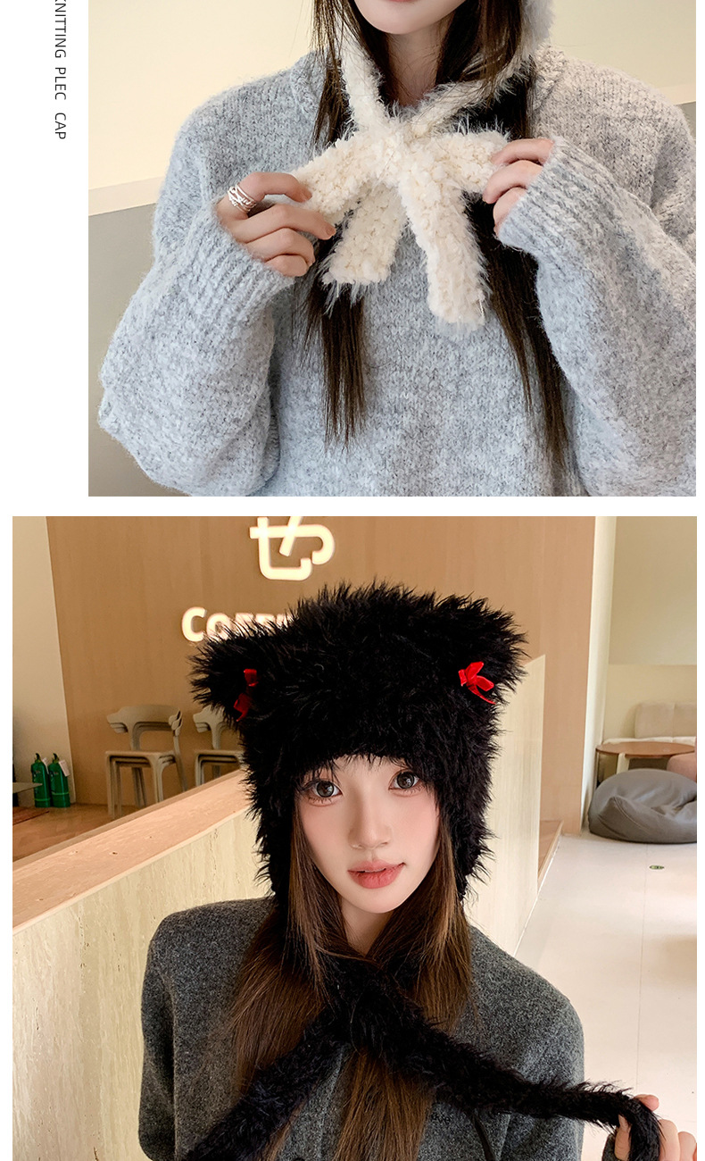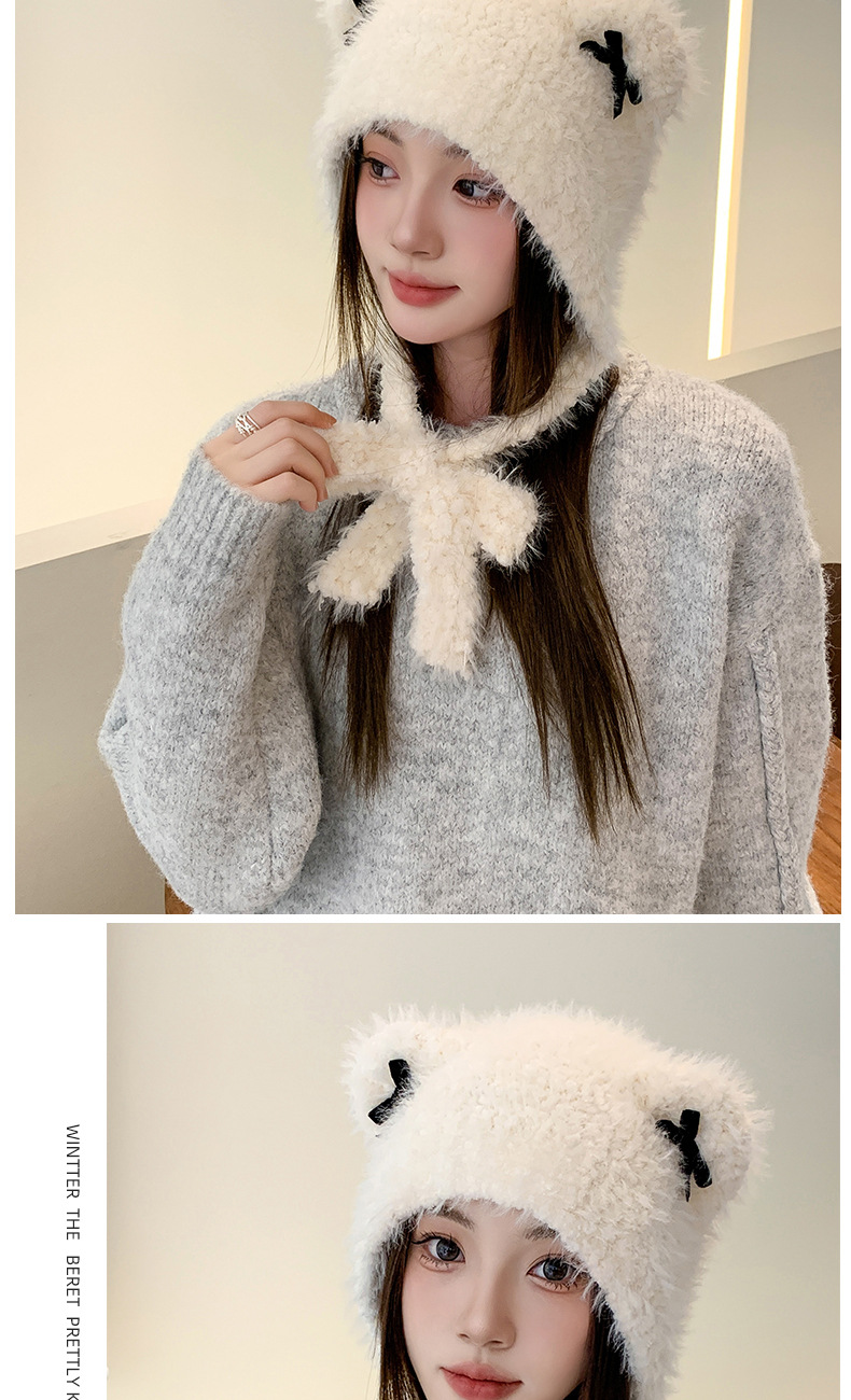 毛绒护耳帽子女可爱猫耳蝴蝶结雷锋帽秋冬防寒保暖针织毛线套头帽