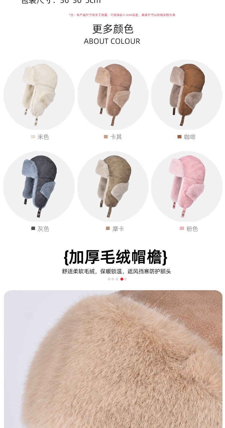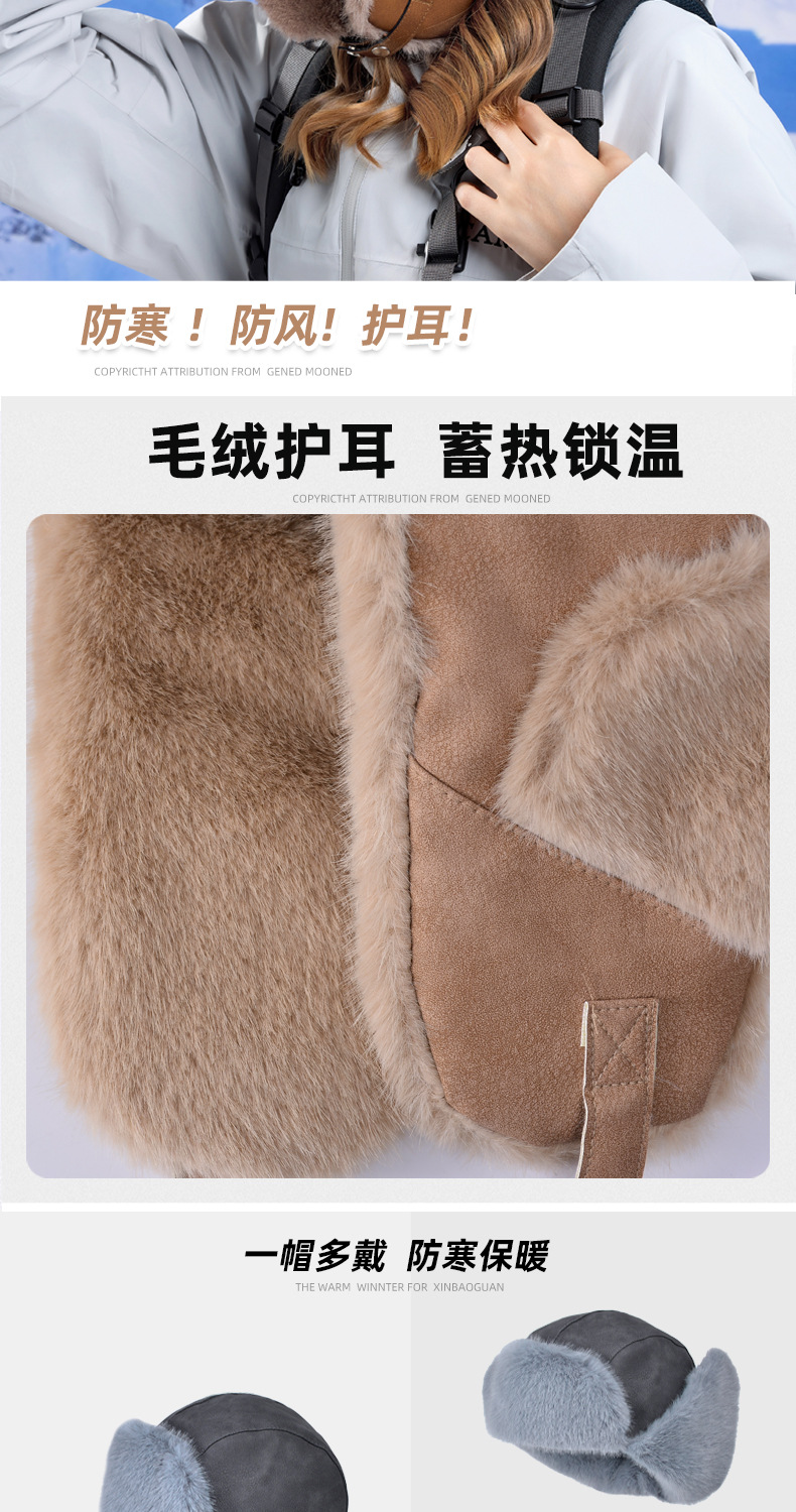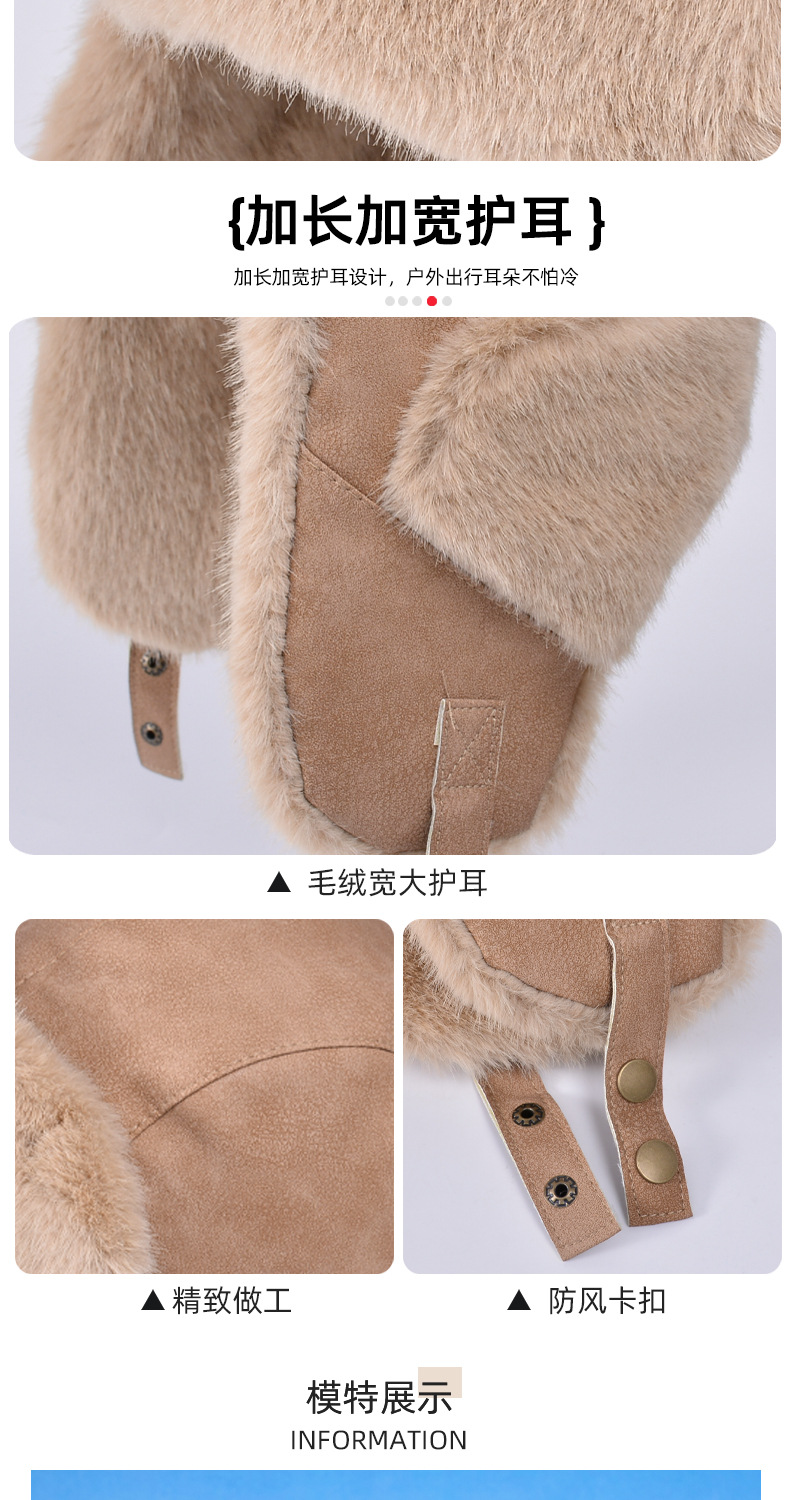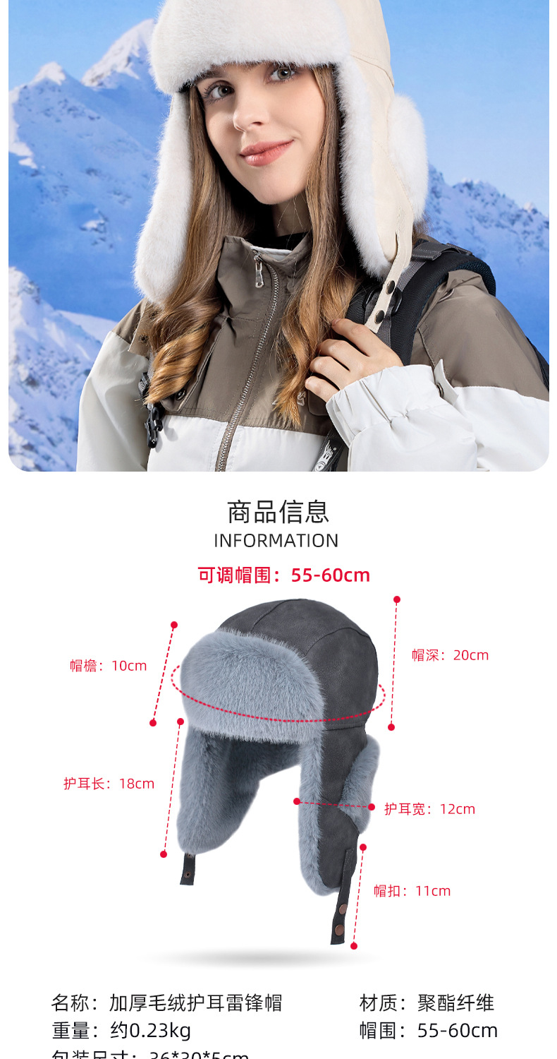 冬季加厚毛绒雷锋帽大头围防风护耳套头帽户外骑行防寒保暖帽子女