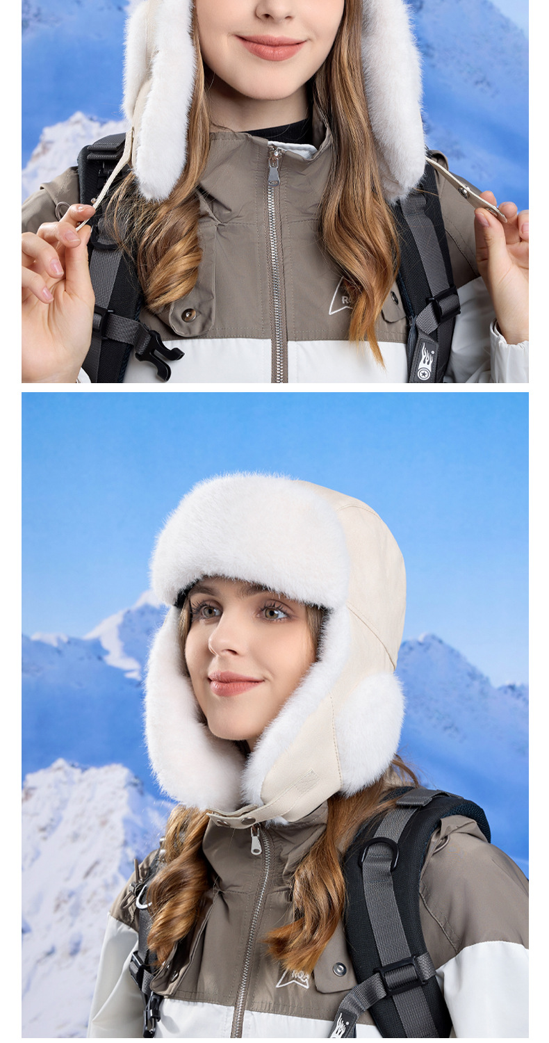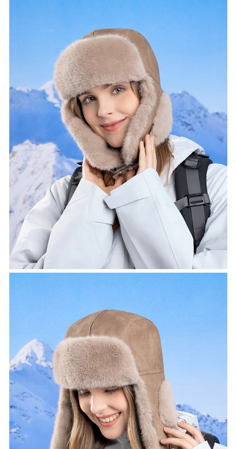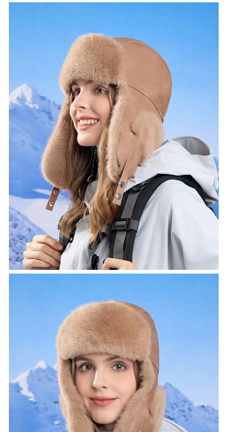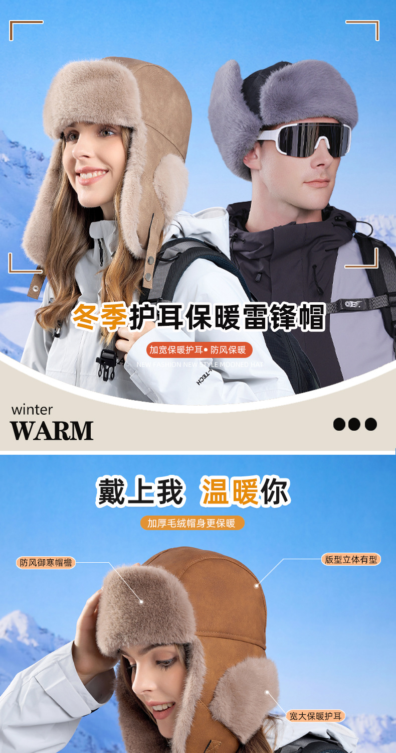 冬季加厚毛绒雷锋帽大头围防风护耳套头帽户外骑行防寒保暖帽子女