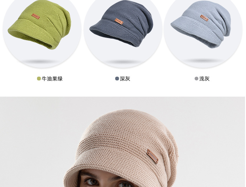9960冬季加绒堆堆帽女户外保暖套头帽子宽檐显脸小护耳时尚月子帽