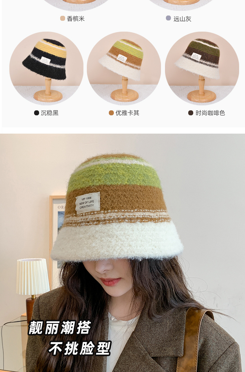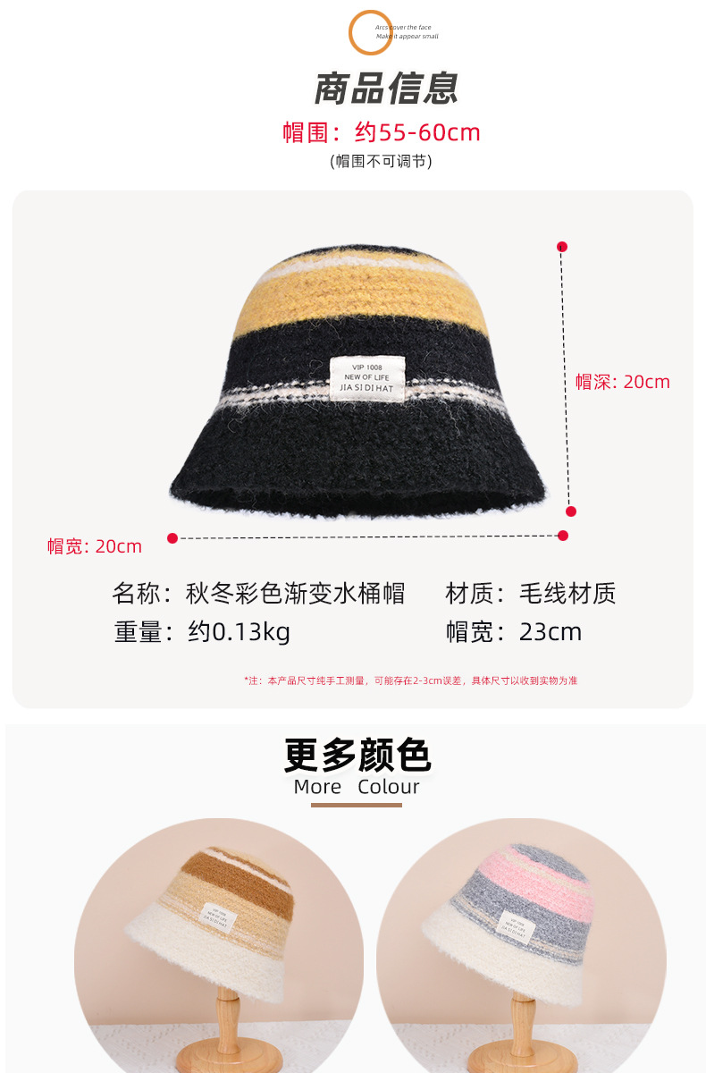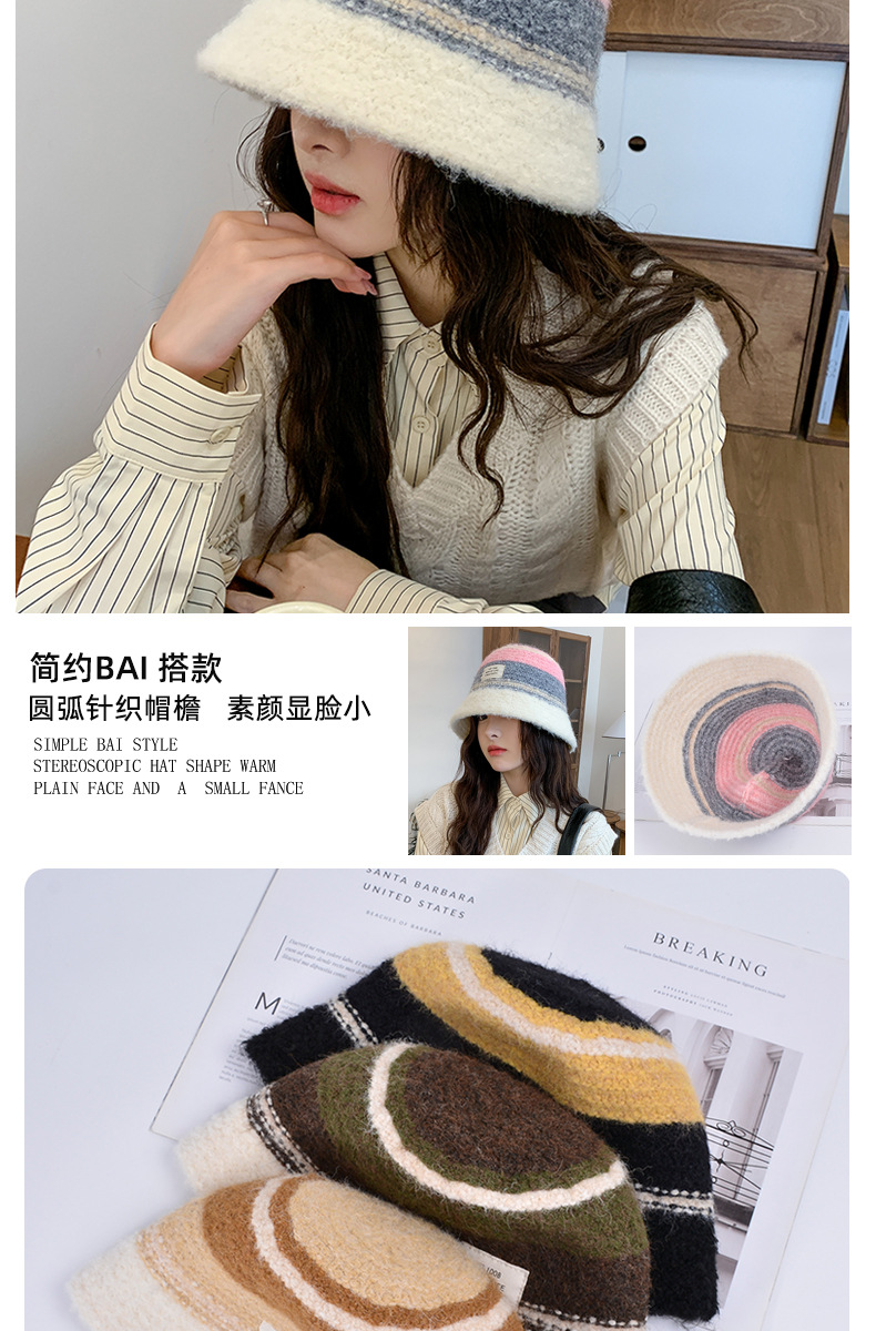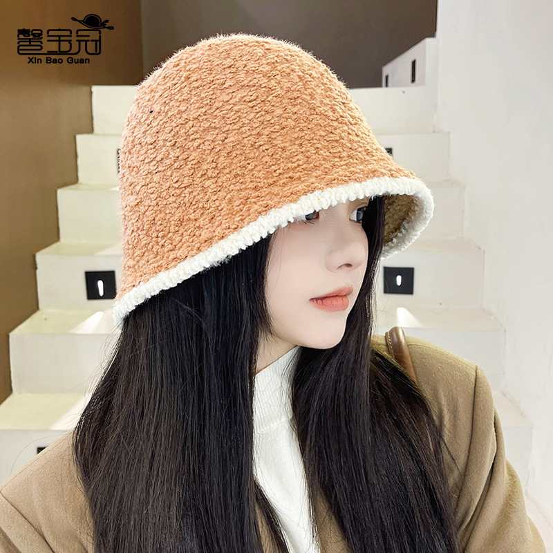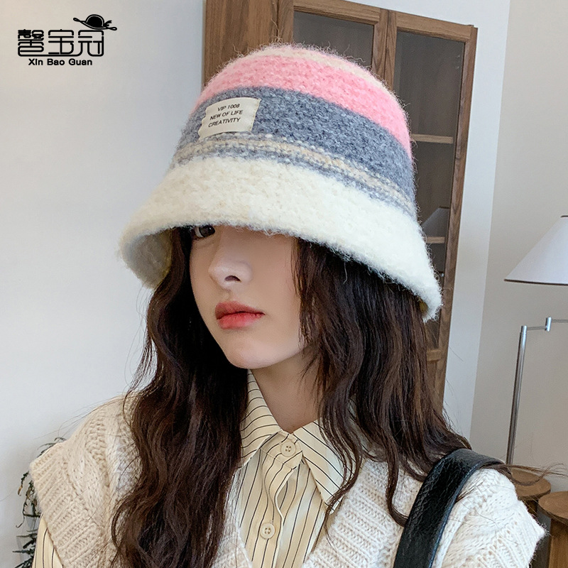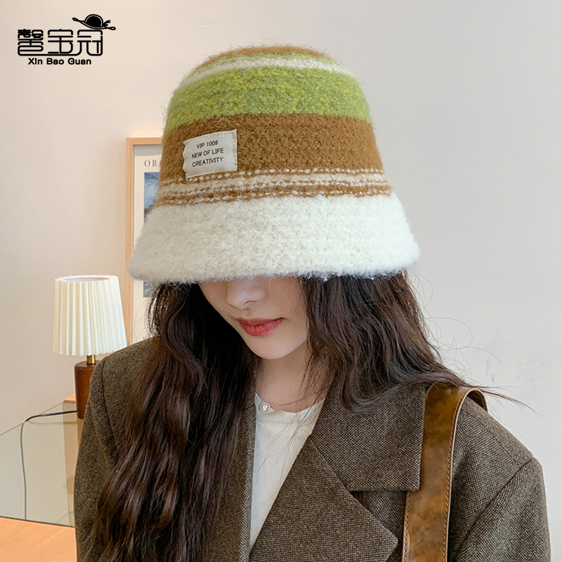 秋冬季针织渔夫帽甜美多巴胺毛线盆帽复古气质百搭显脸小帽子女潮