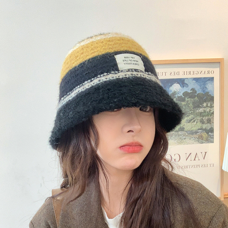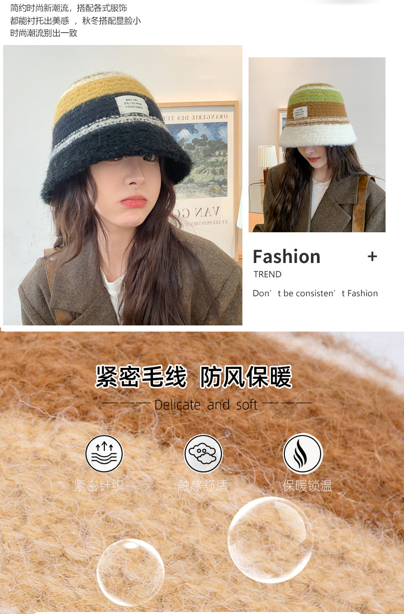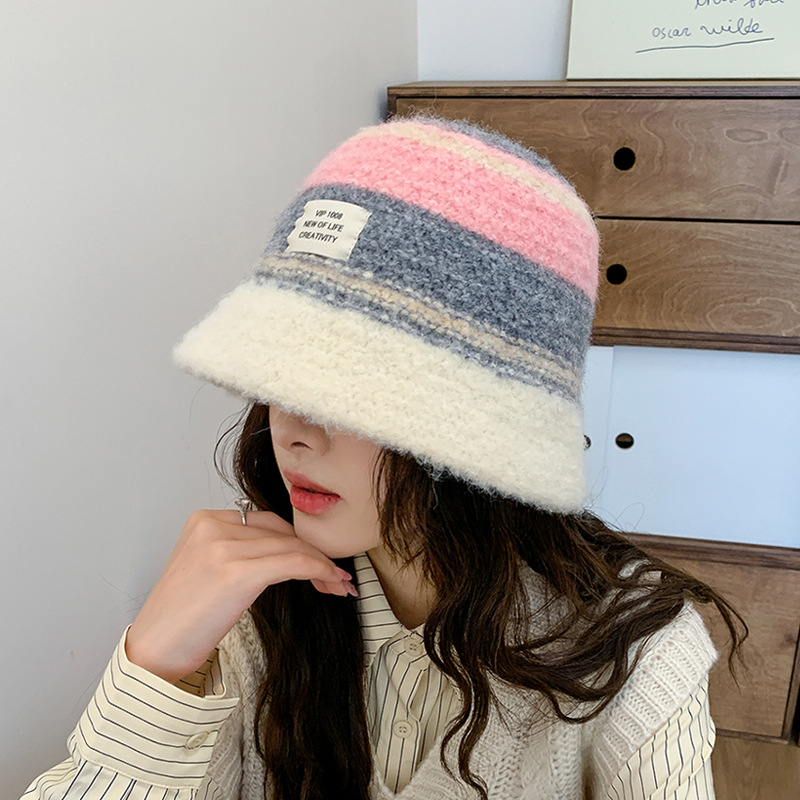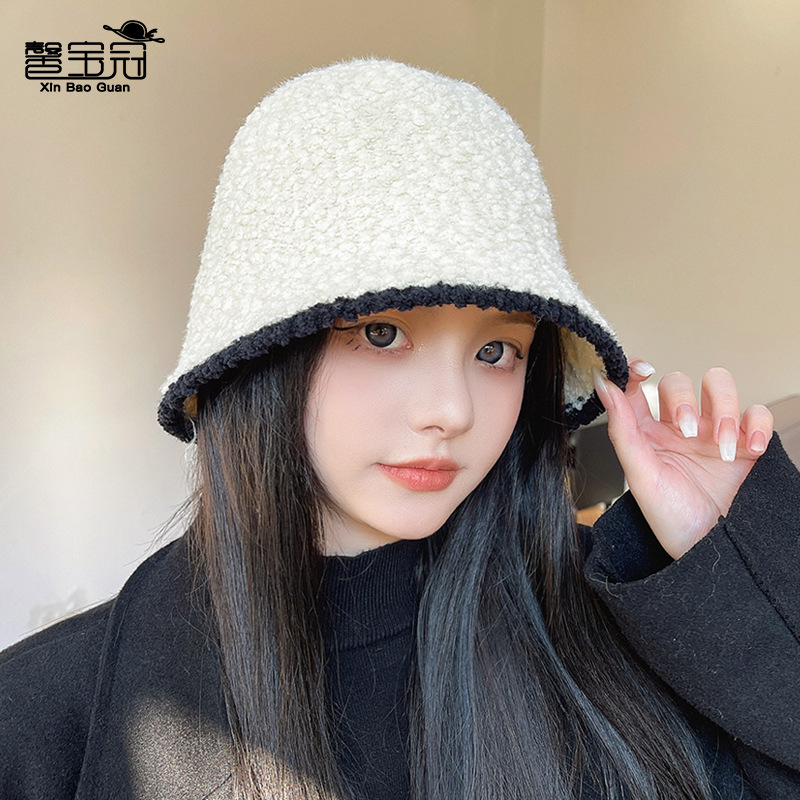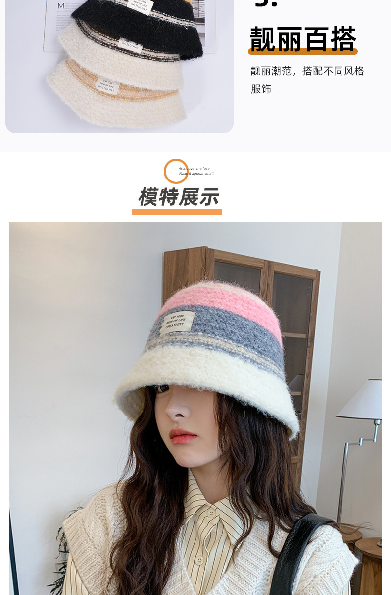 秋冬季针织渔夫帽甜美多巴胺毛线盆帽复古气质百搭显脸小帽子女潮