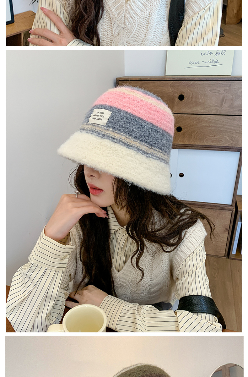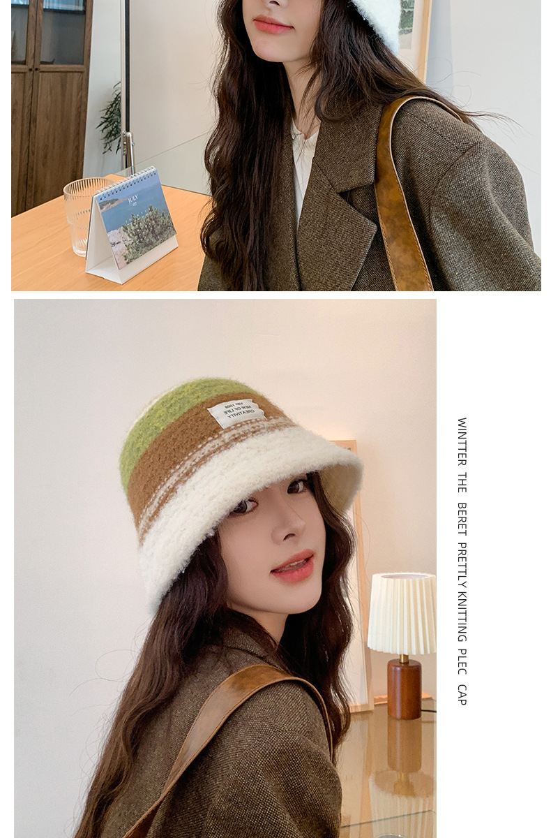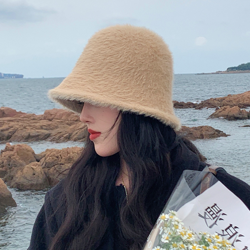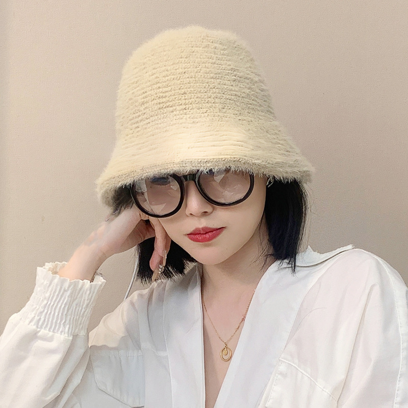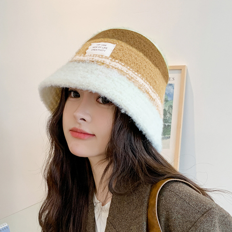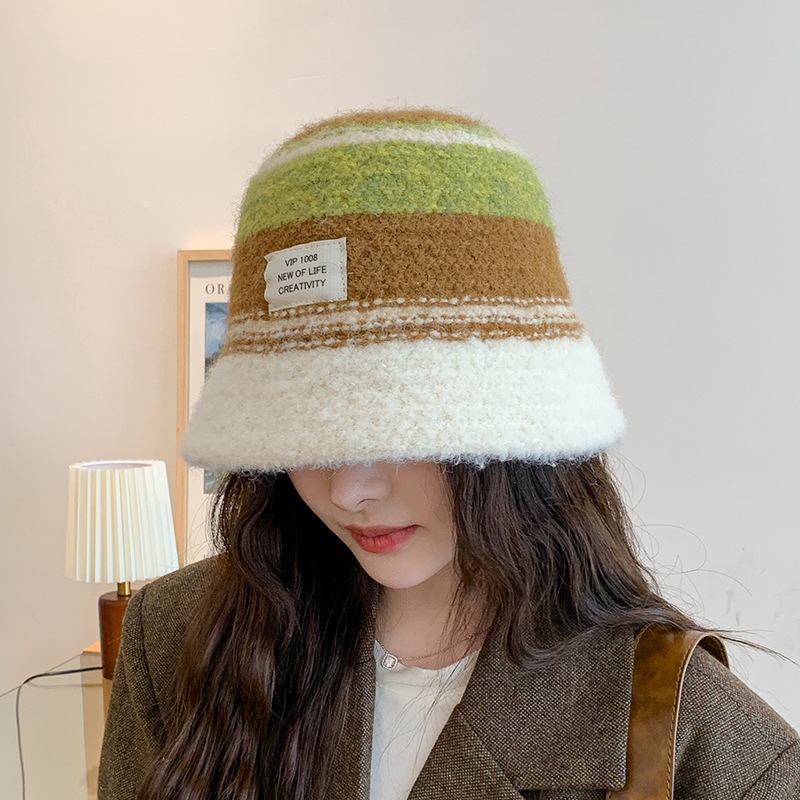 秋冬季针织渔夫帽甜美多巴胺毛线盆帽复古气质百搭显脸小帽子女潮