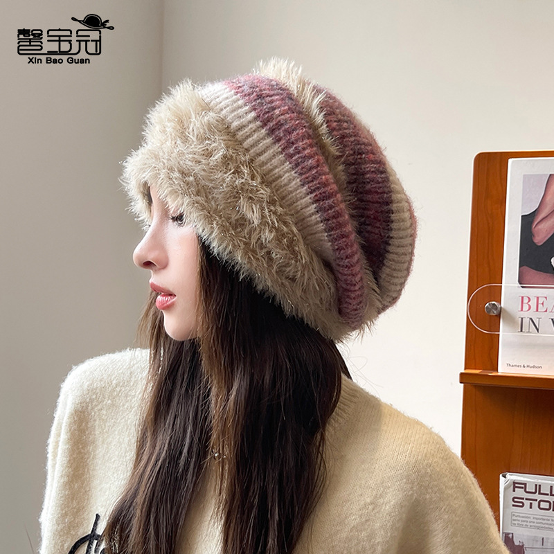 秋冬季慵懒风堆堆帽毛绒护耳套头帽子女日系百搭冷帽显脸小月子帽