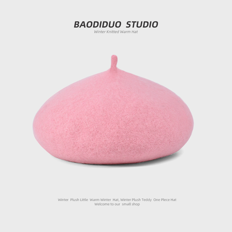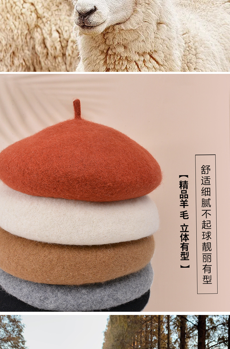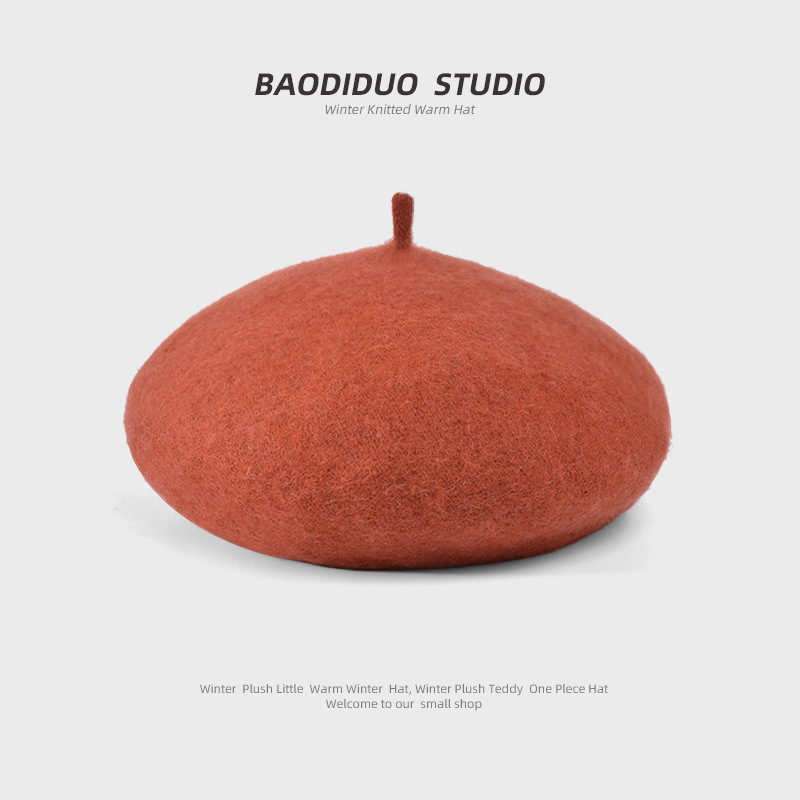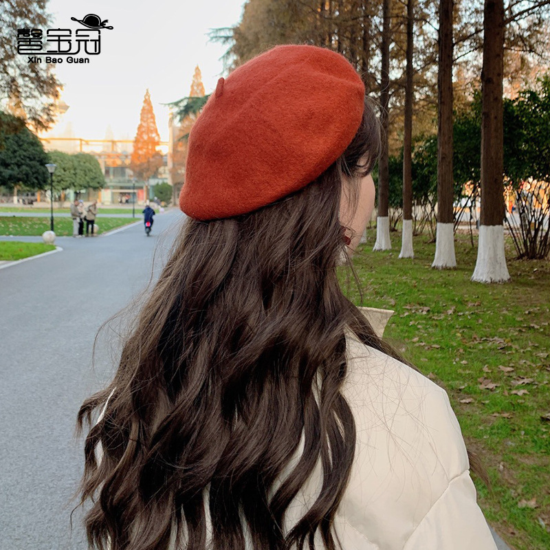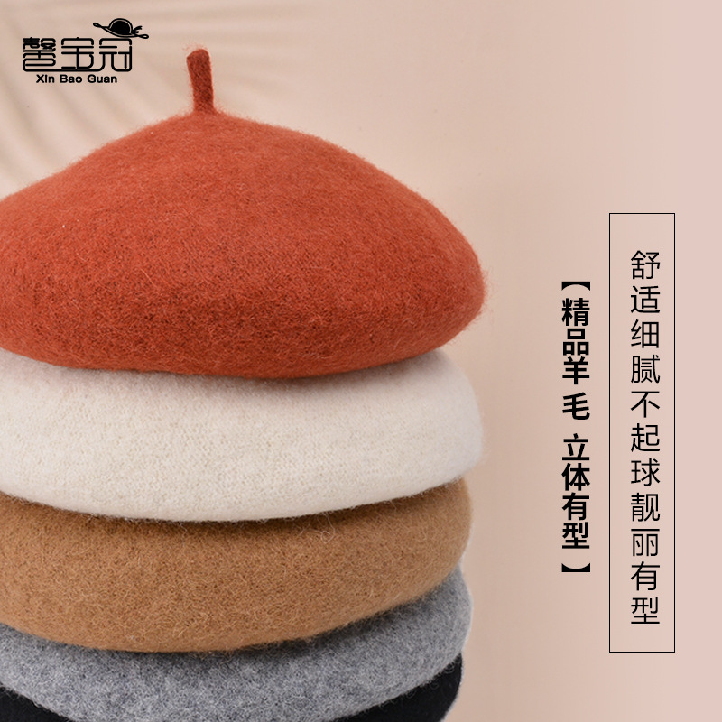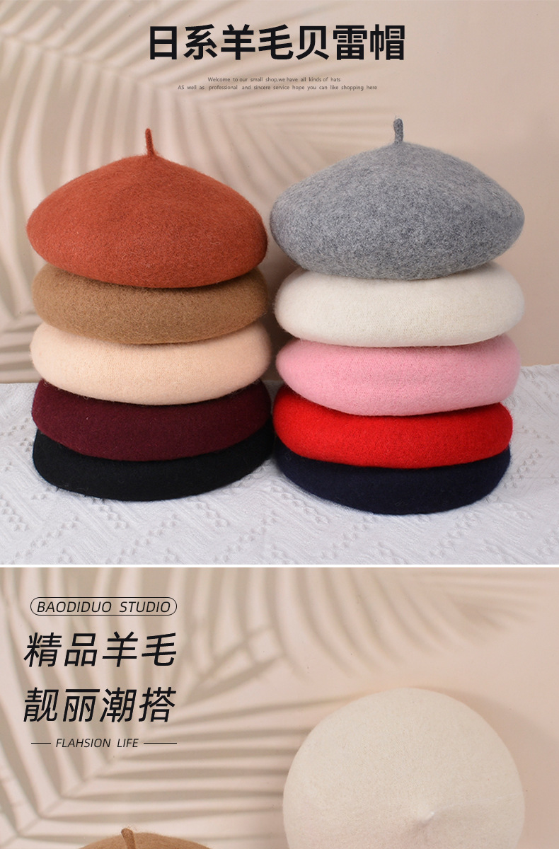秋冬季羊毛帽子女日系百搭保暖蓓蕾画家帽显脸小复古英伦风贝雷帽