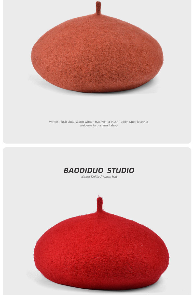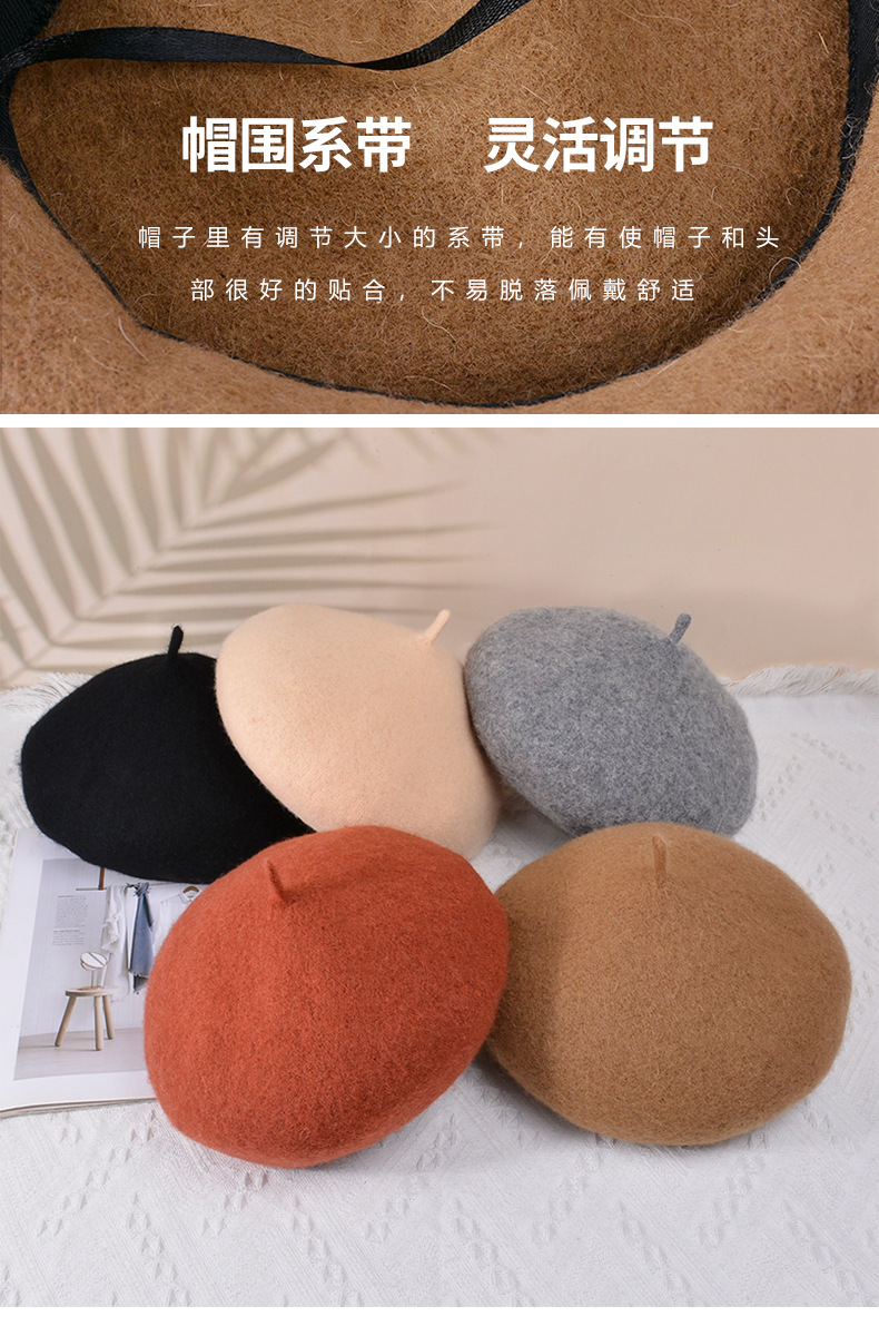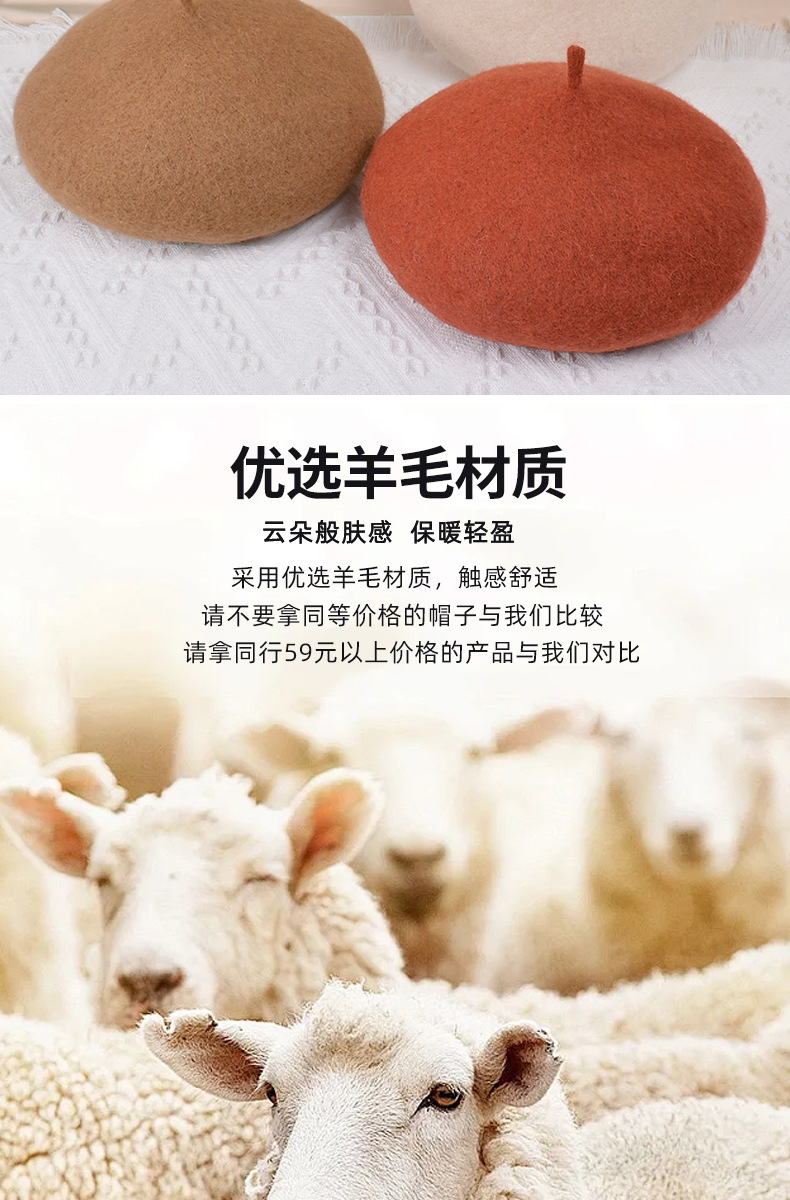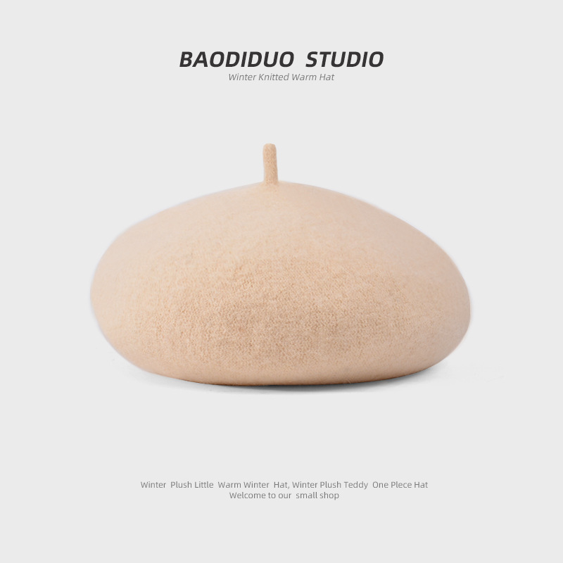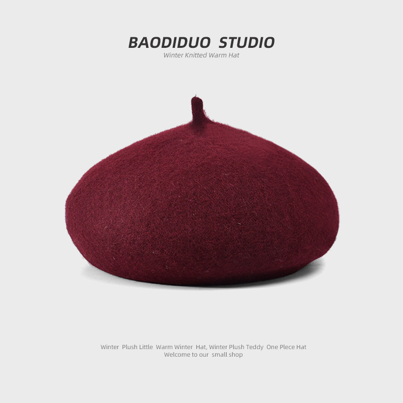 秋冬季羊毛帽子女日系百搭保暖蓓蕾画家帽显脸小复古英伦风贝雷帽
