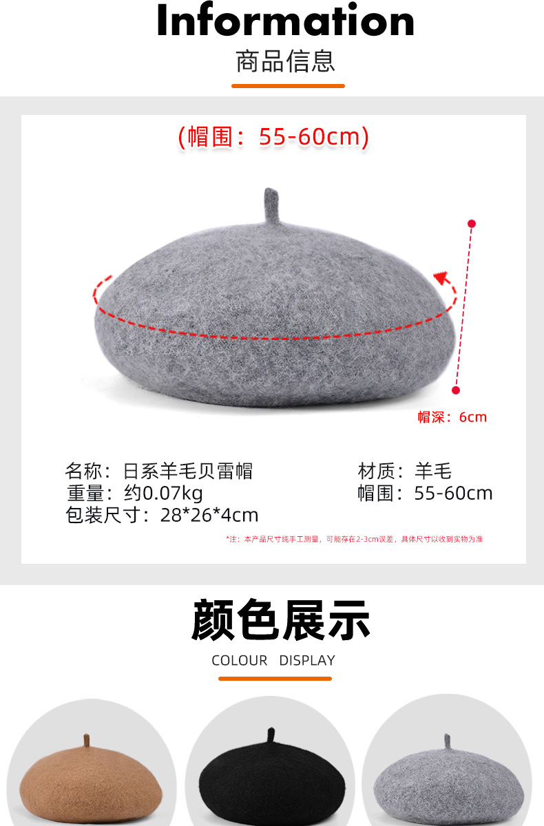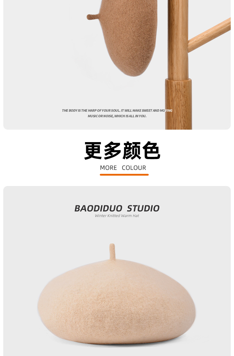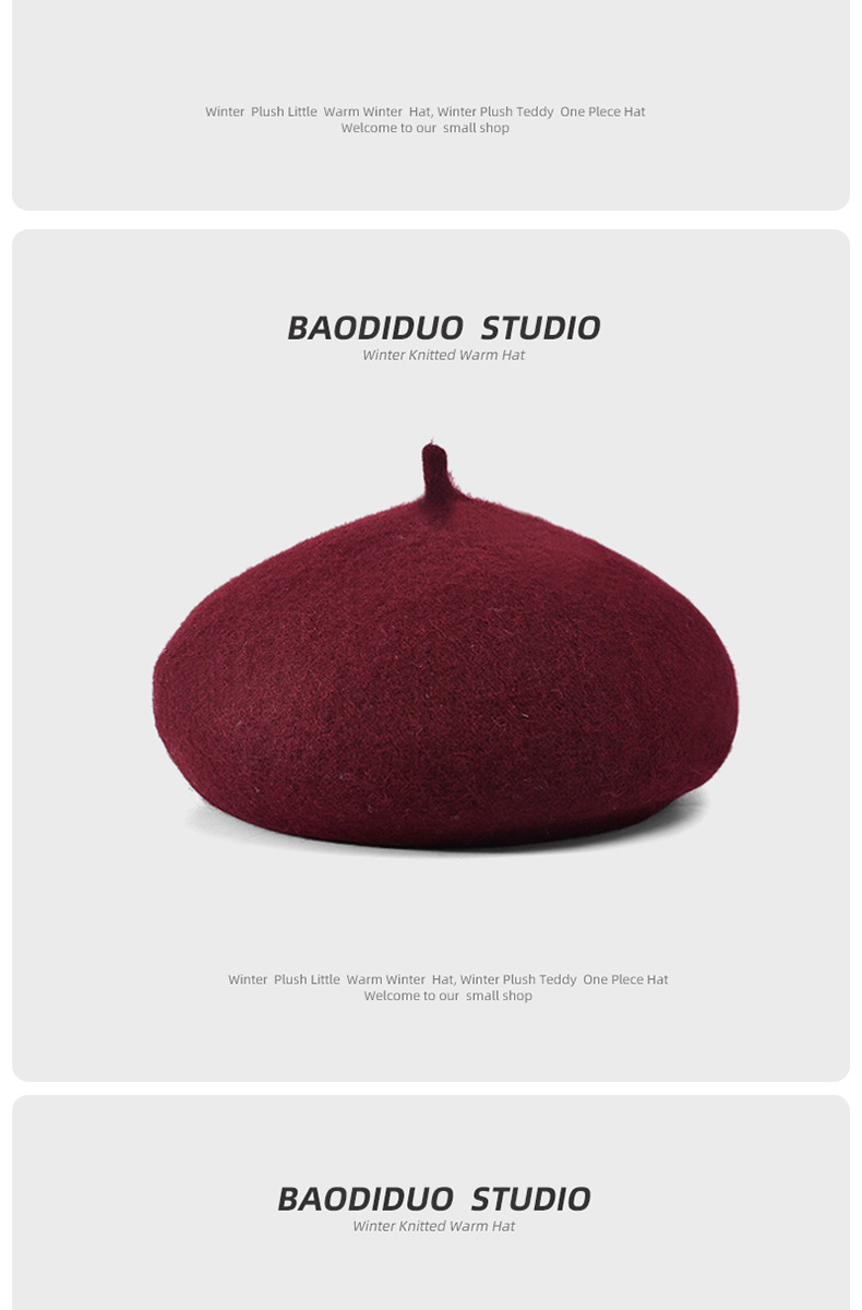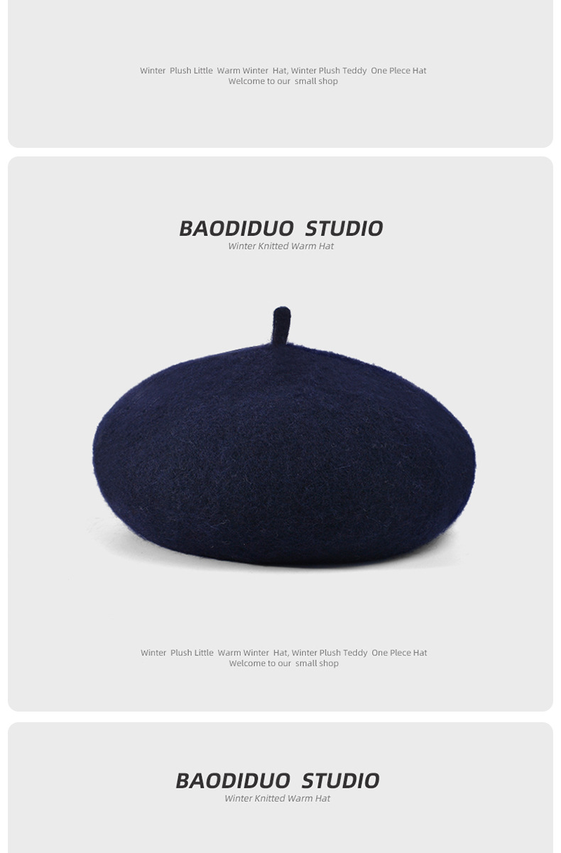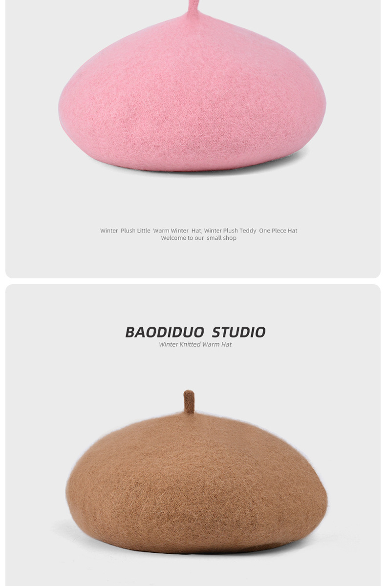 秋冬季羊毛帽子女日系百搭保暖蓓蕾画家帽显脸小复古英伦风贝雷帽