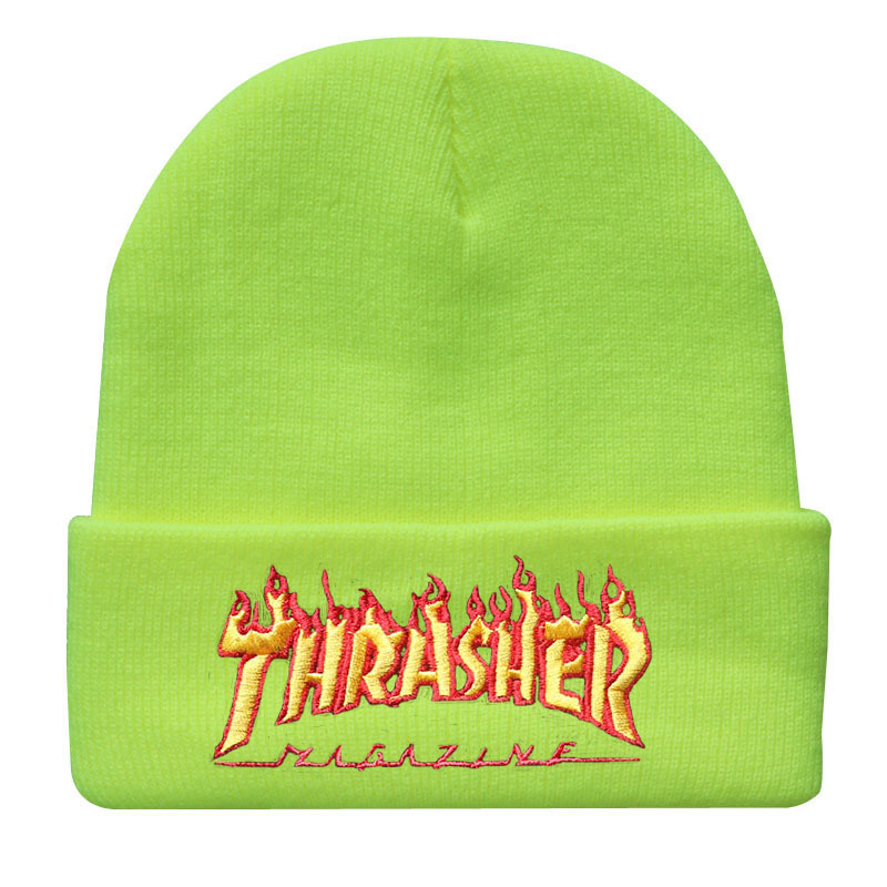 时尚潮牌火焰THRASHER字母刺绣针织帽男女秋冬帽毛线帽冷帽子男女