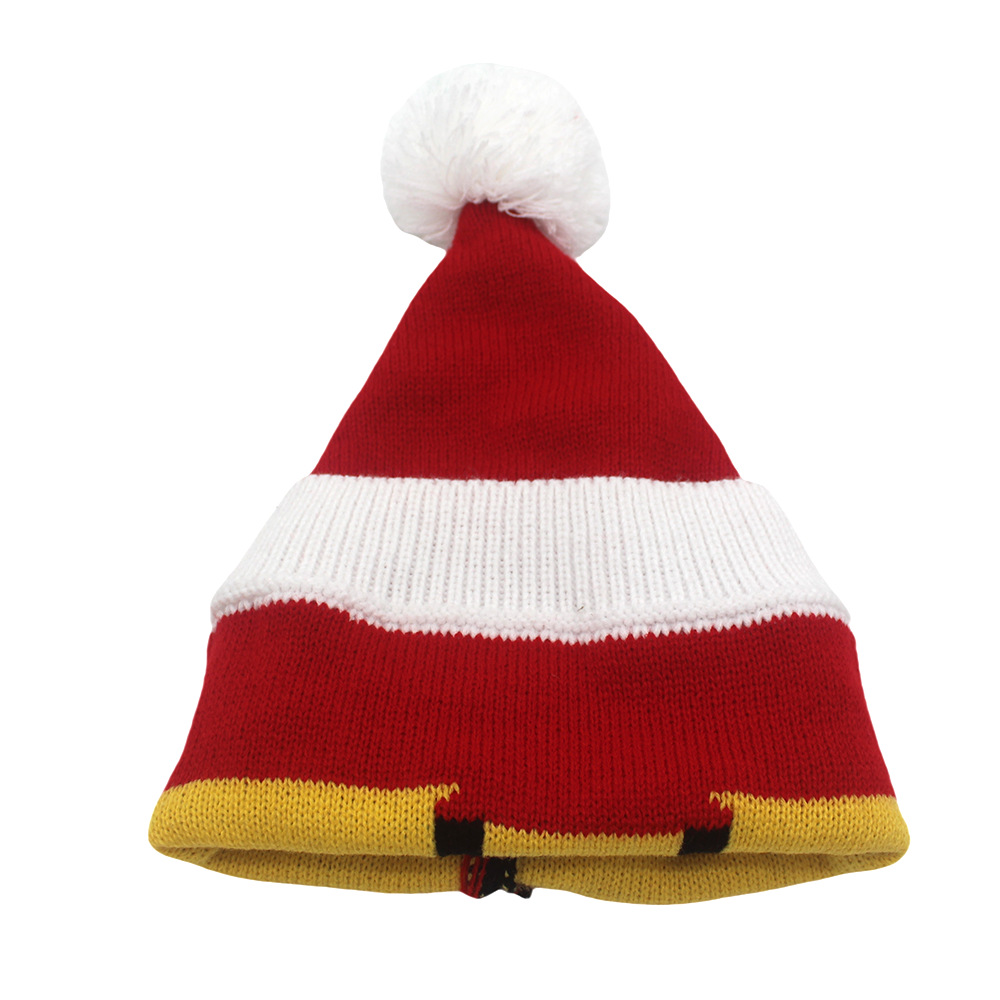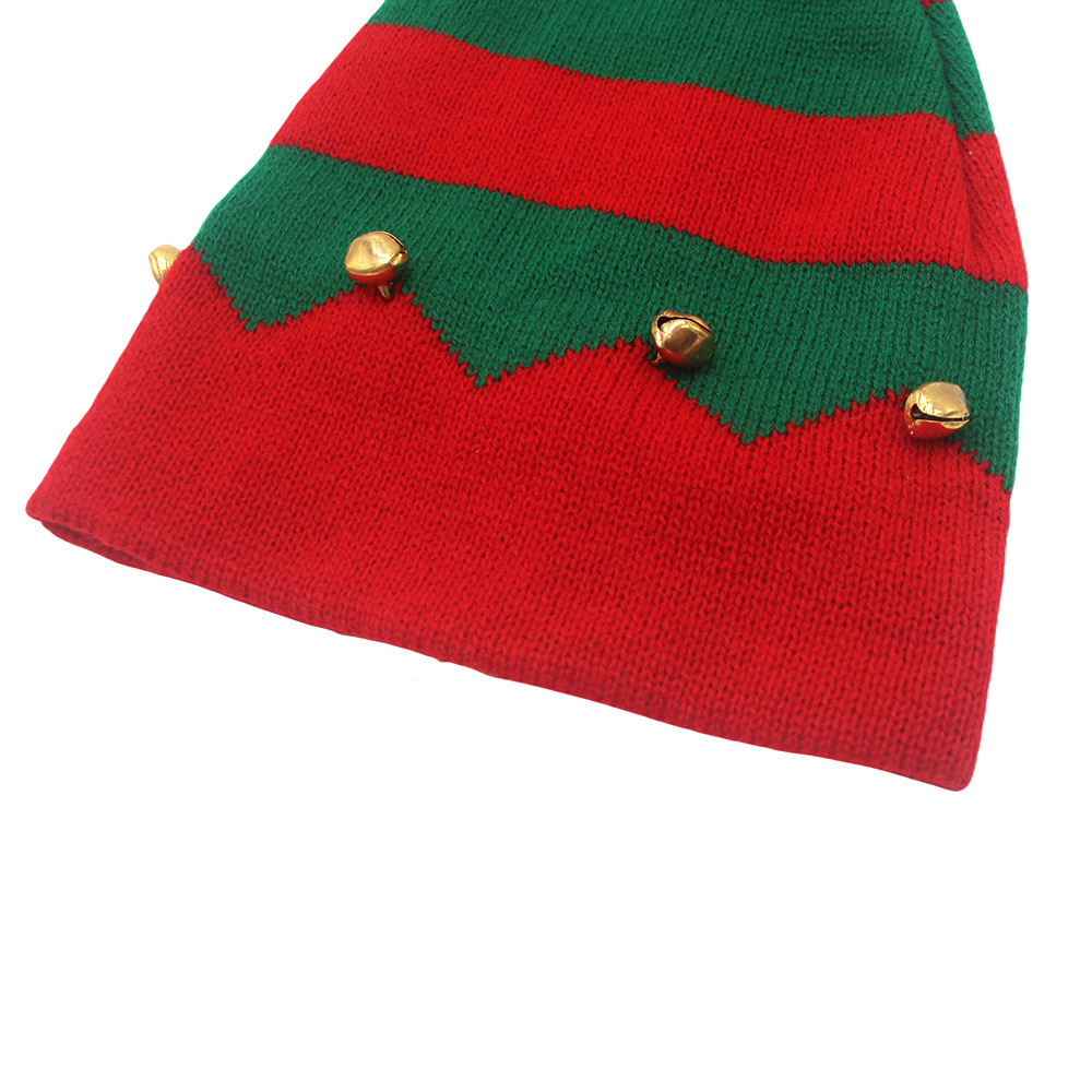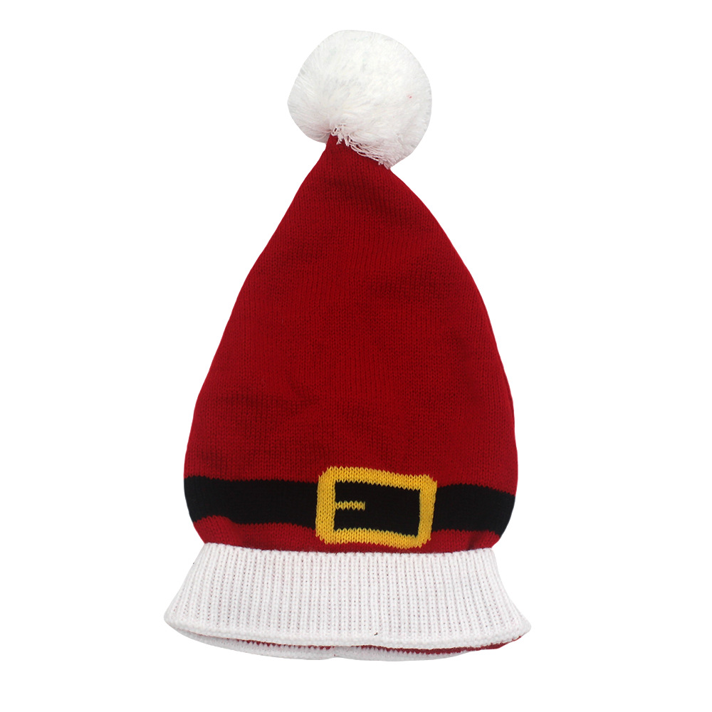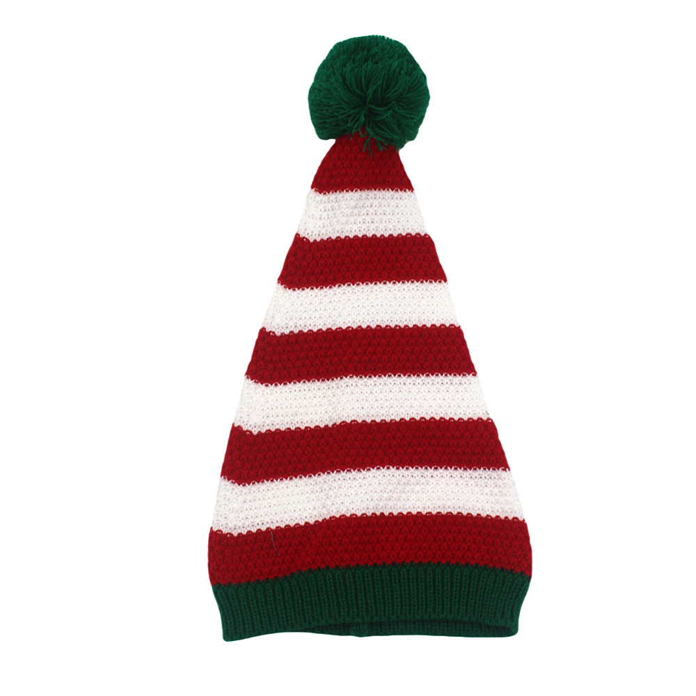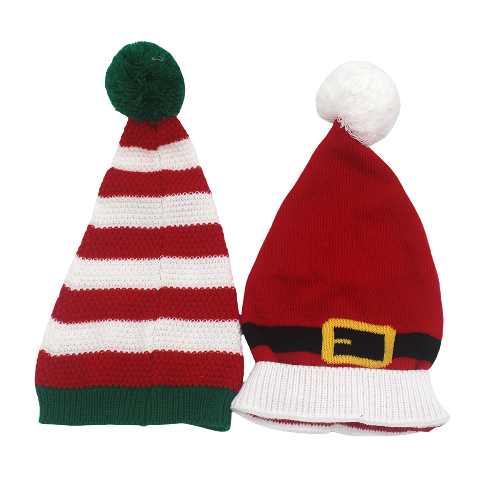 跨境新款圣诞节装饰红色条纹毛线帽秋冬保暖圣诞老人腰带帽尖尖帽