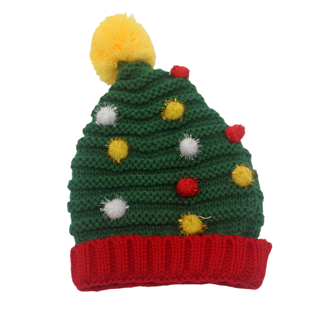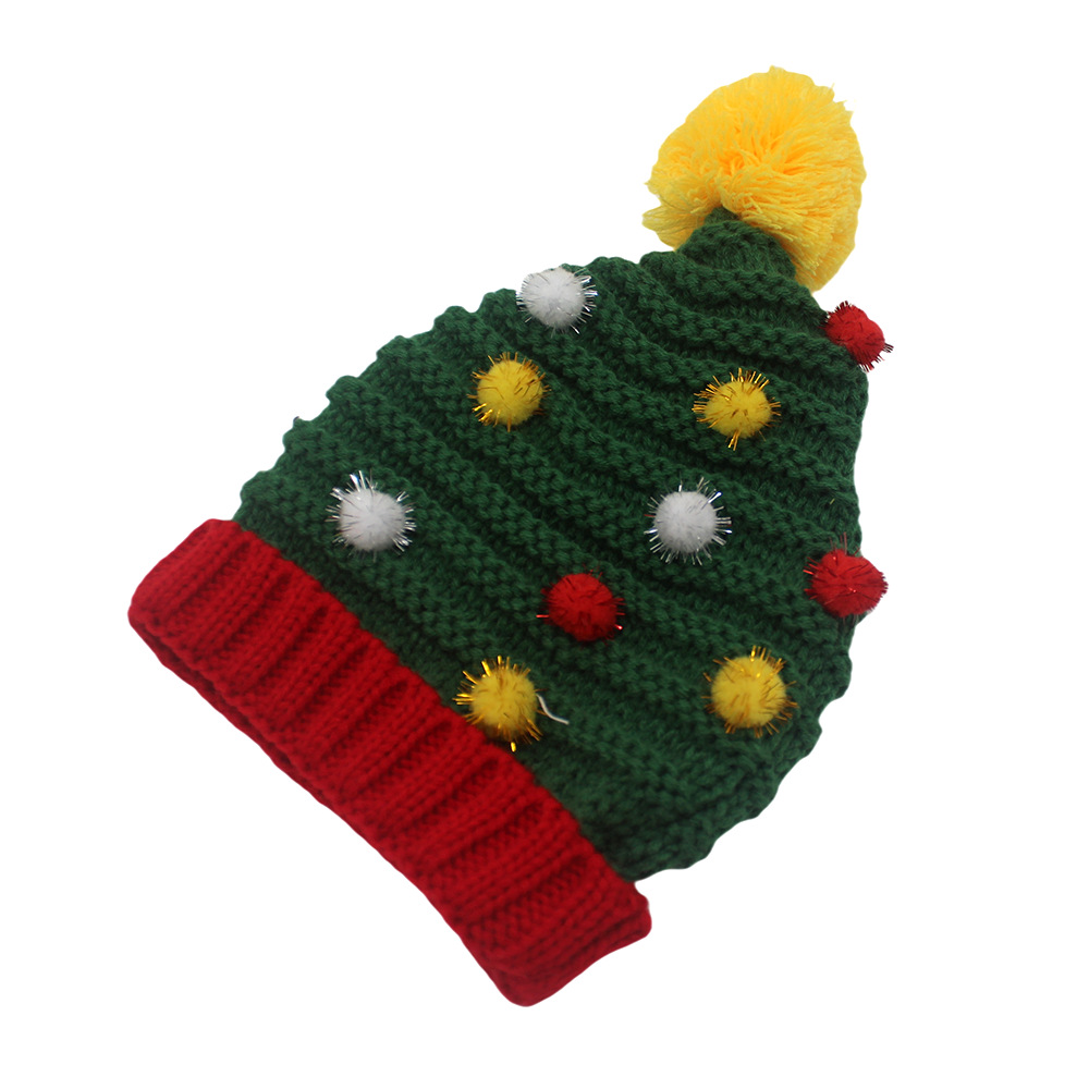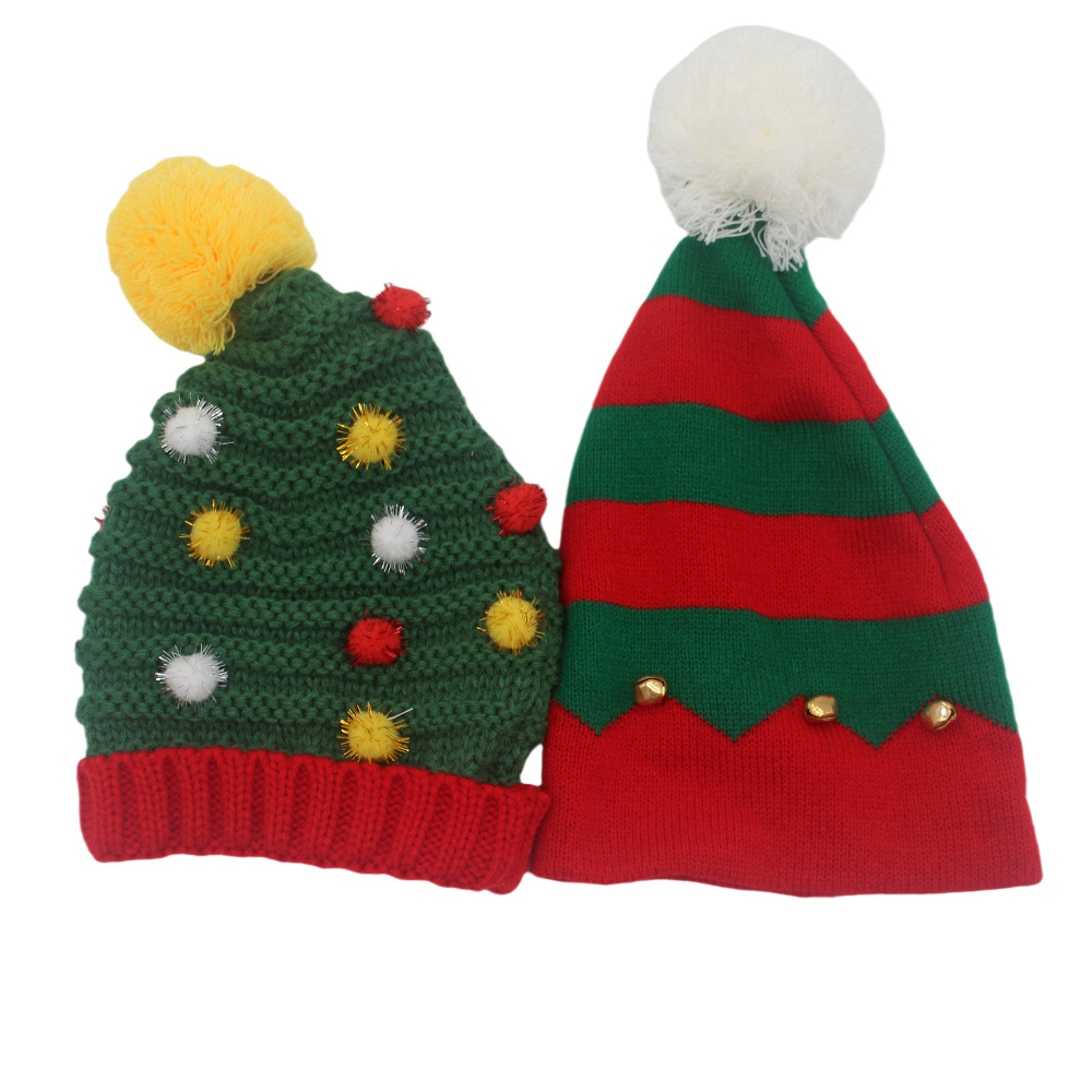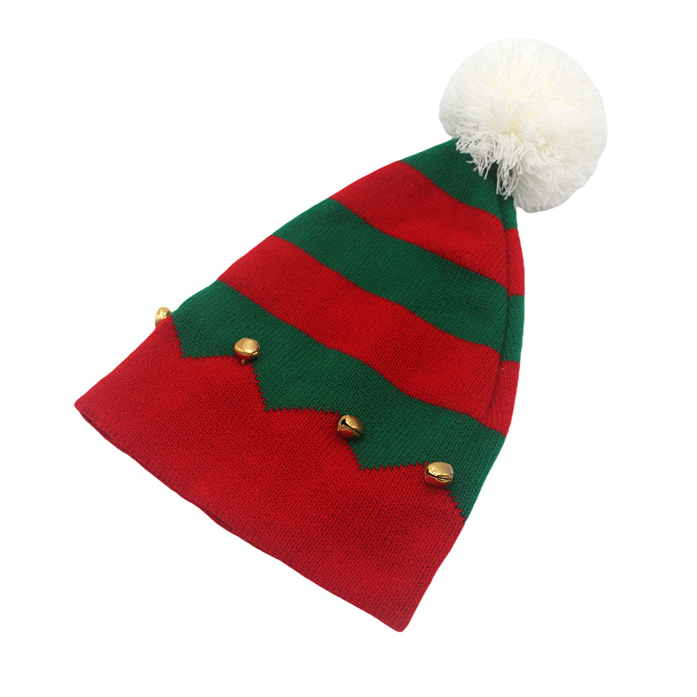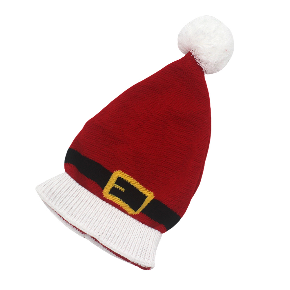 跨境新款圣诞节装饰红色条纹毛线帽秋冬保暖圣诞老人腰带帽尖尖帽