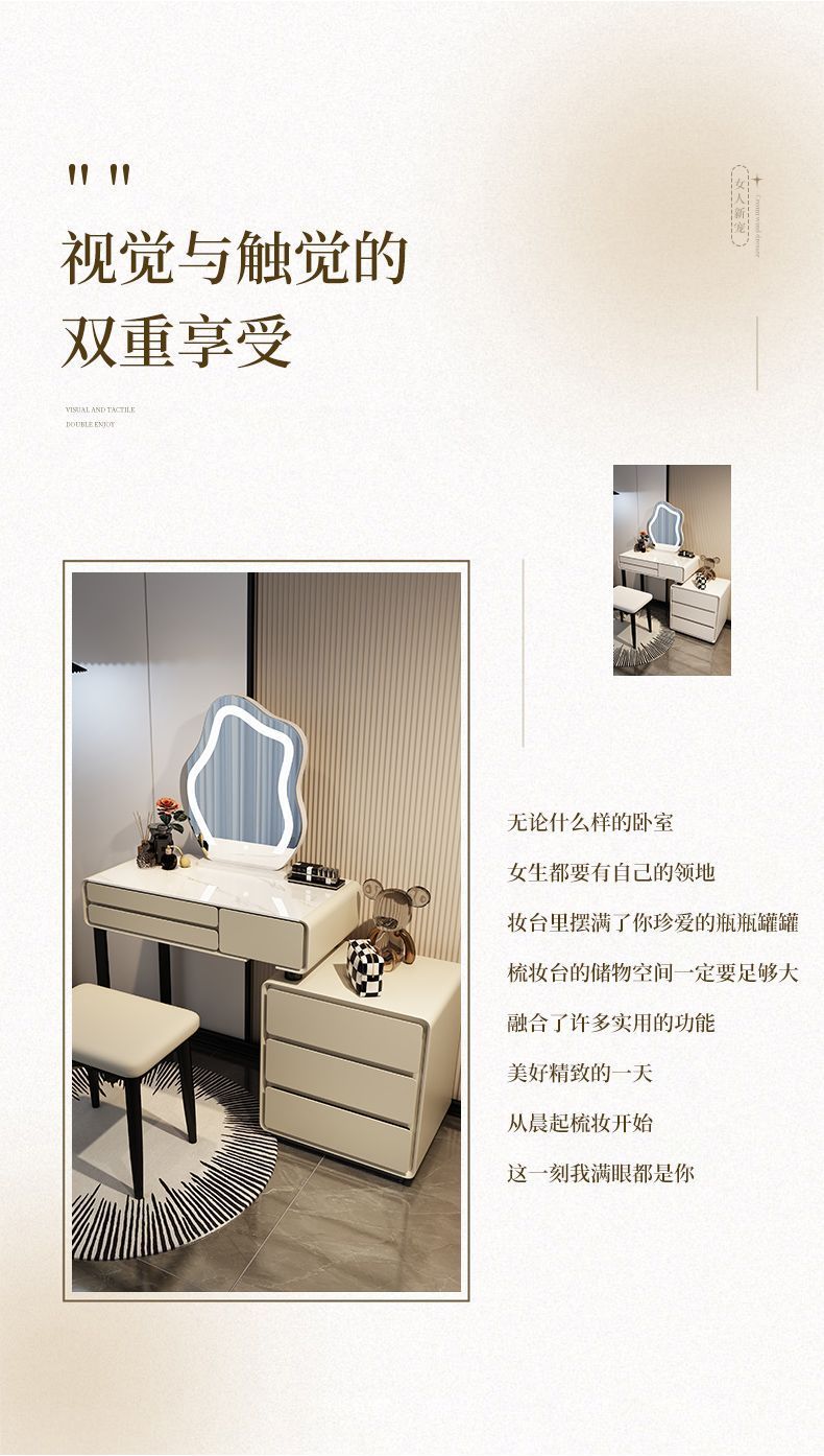 | 80 table khaki color + mirror + side cabinet + petal chair(80桌卡其色+镜子+边柜+花瓣椅) | USD $96.72 | 694 piece available |