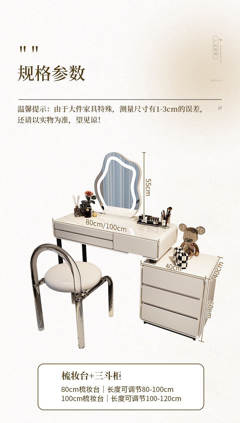 | 120 table khaki color + mirror + side cabinet + petal chair(120桌卡其色+镜子+边柜+花瓣椅) | USD $106.31 | 692 piece available |