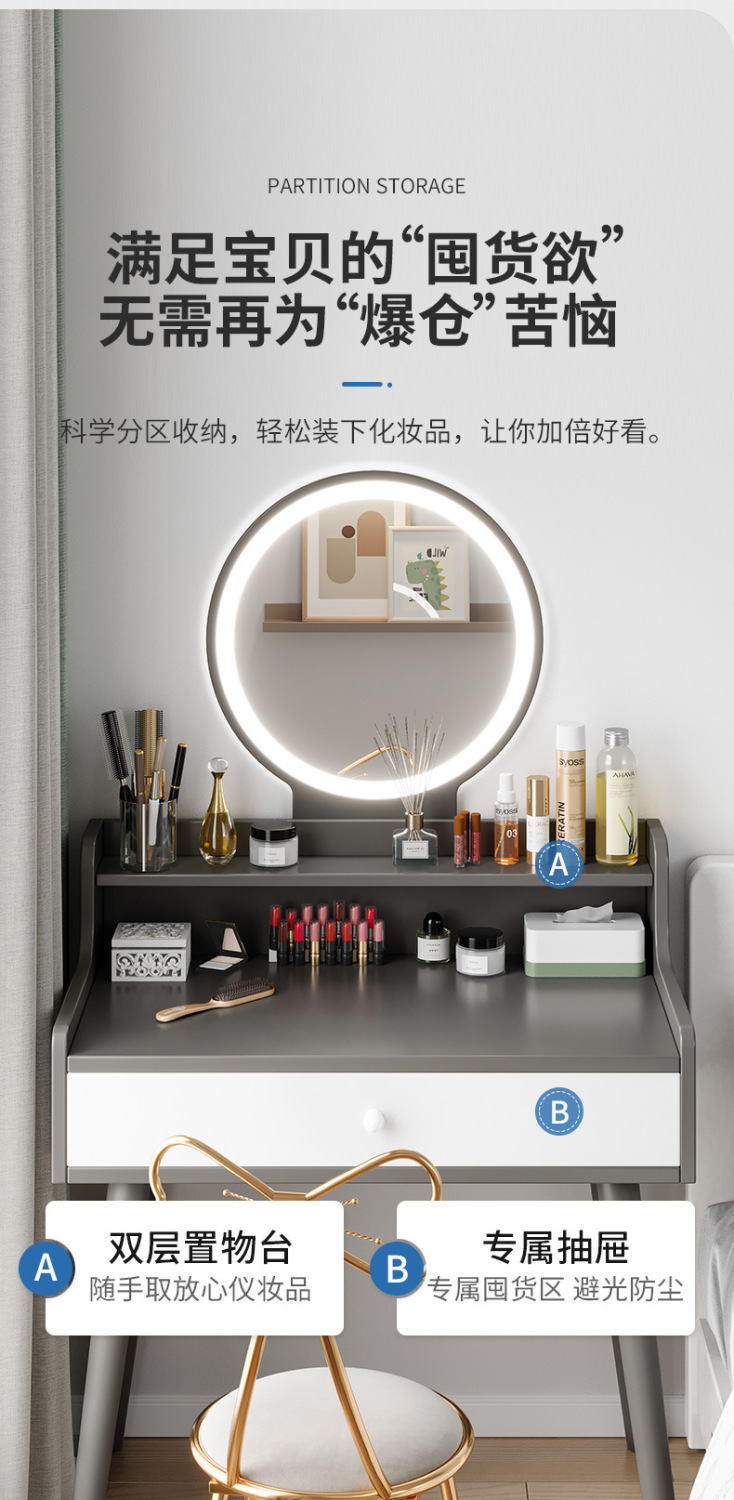 北欧卧室化妆台2024年新款小户型梳妆台迷你单人单抽屉窄化妆桌子