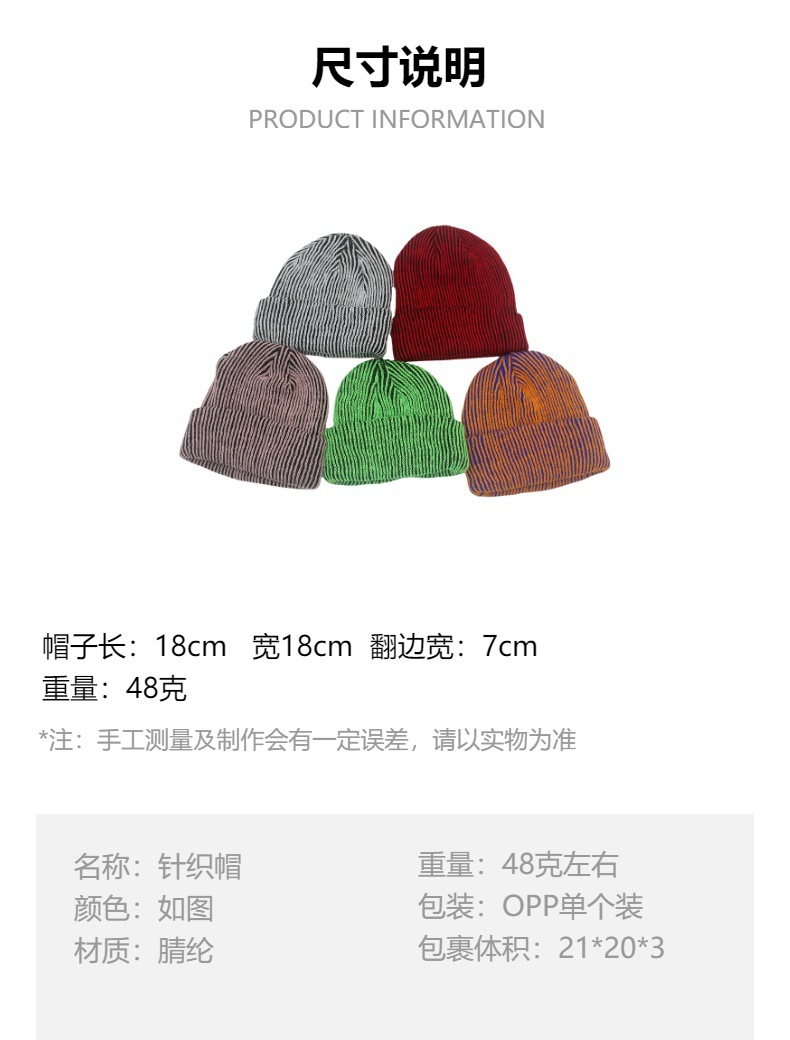 跨境新款细条纹拼色瓜皮针织帽秋冬季户外保暖毛线帽时尚套头冷帽