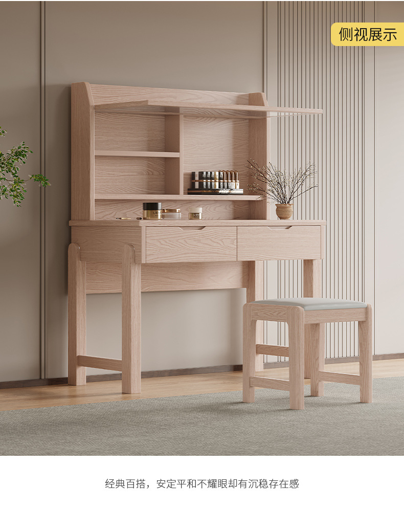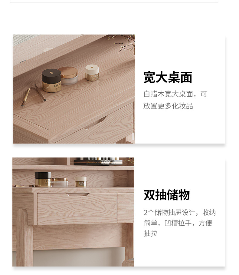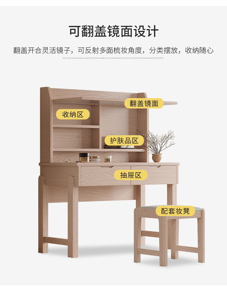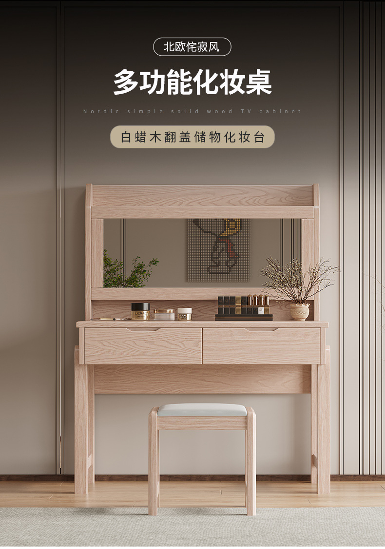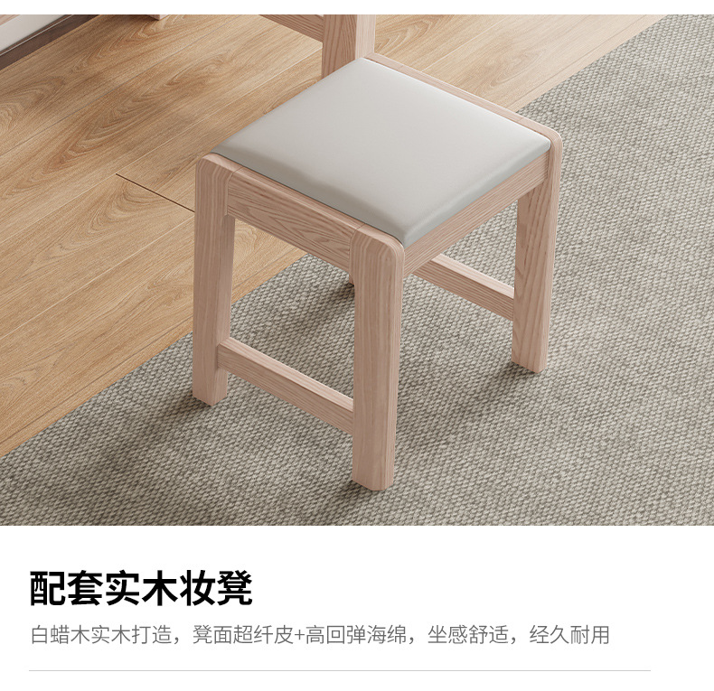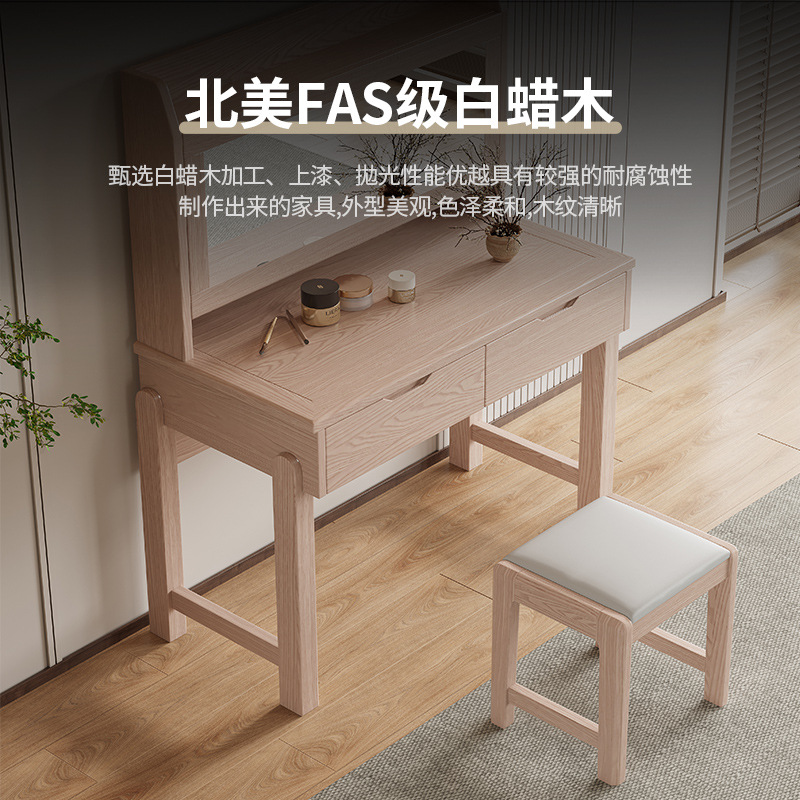 北欧简约实木梳妆台带妆凳白蜡木化妆桌储物一体柜家用卧室化妆台