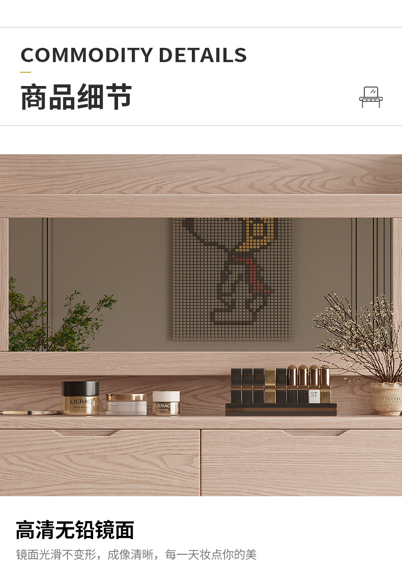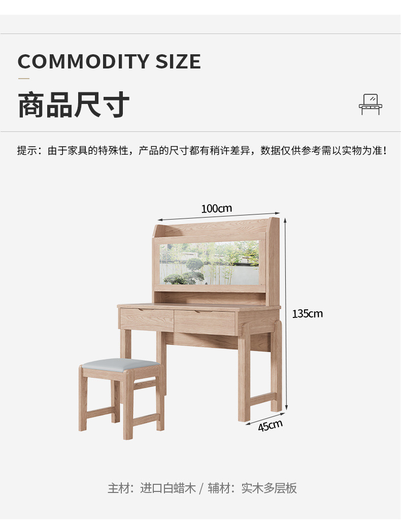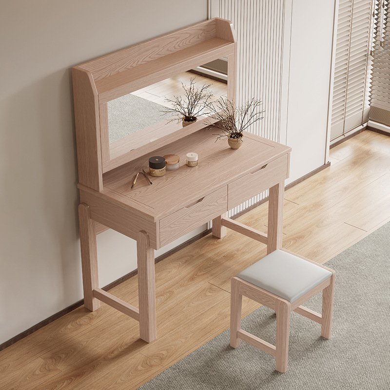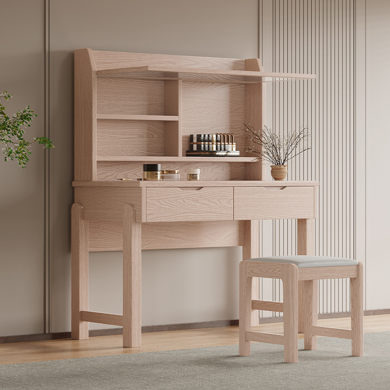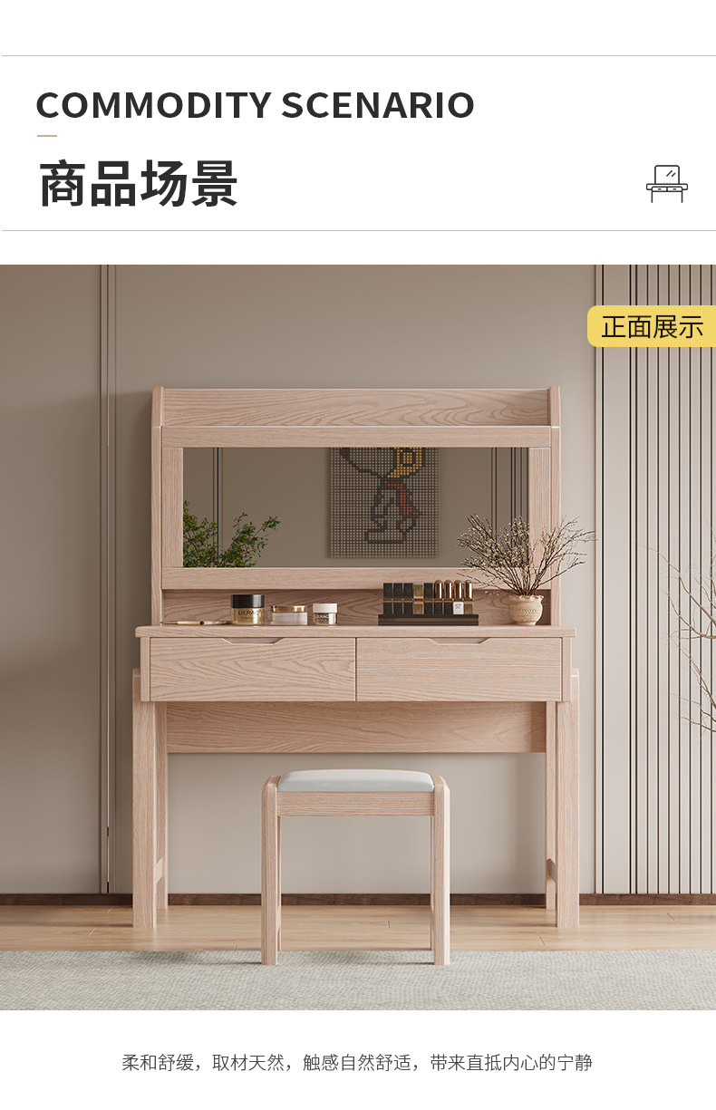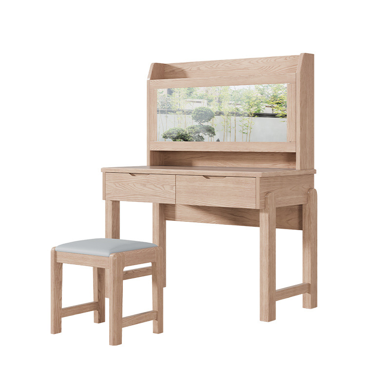 北欧简约实木梳妆台带妆凳白蜡木化妆桌储物一体柜家用卧室化妆台