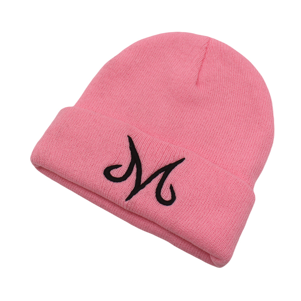 跨境新款M字母刺绣针织帽秋冬保暖男女百搭时尚毛线帽子套头冷帽