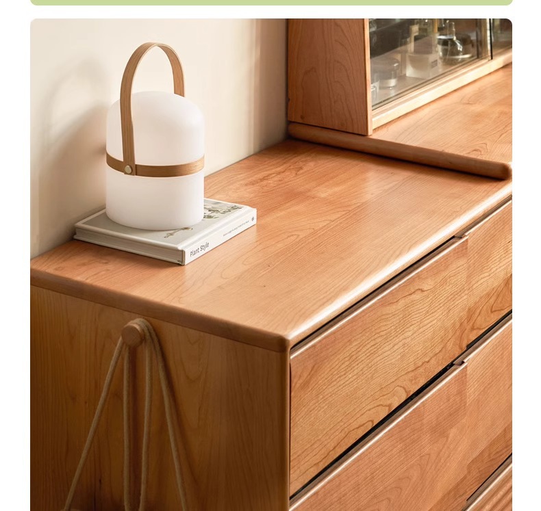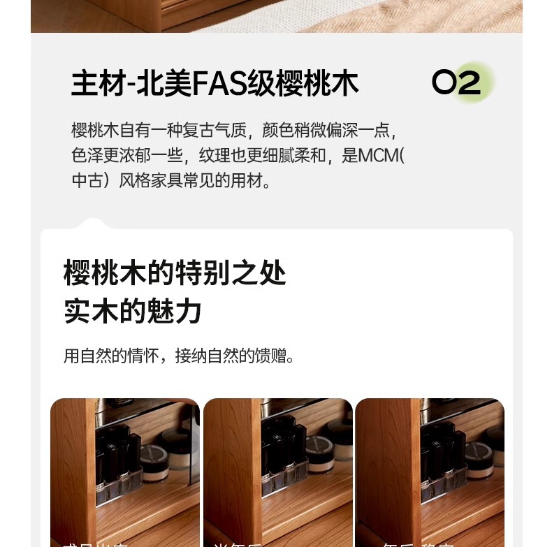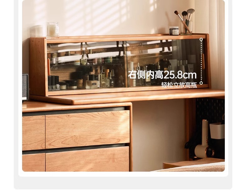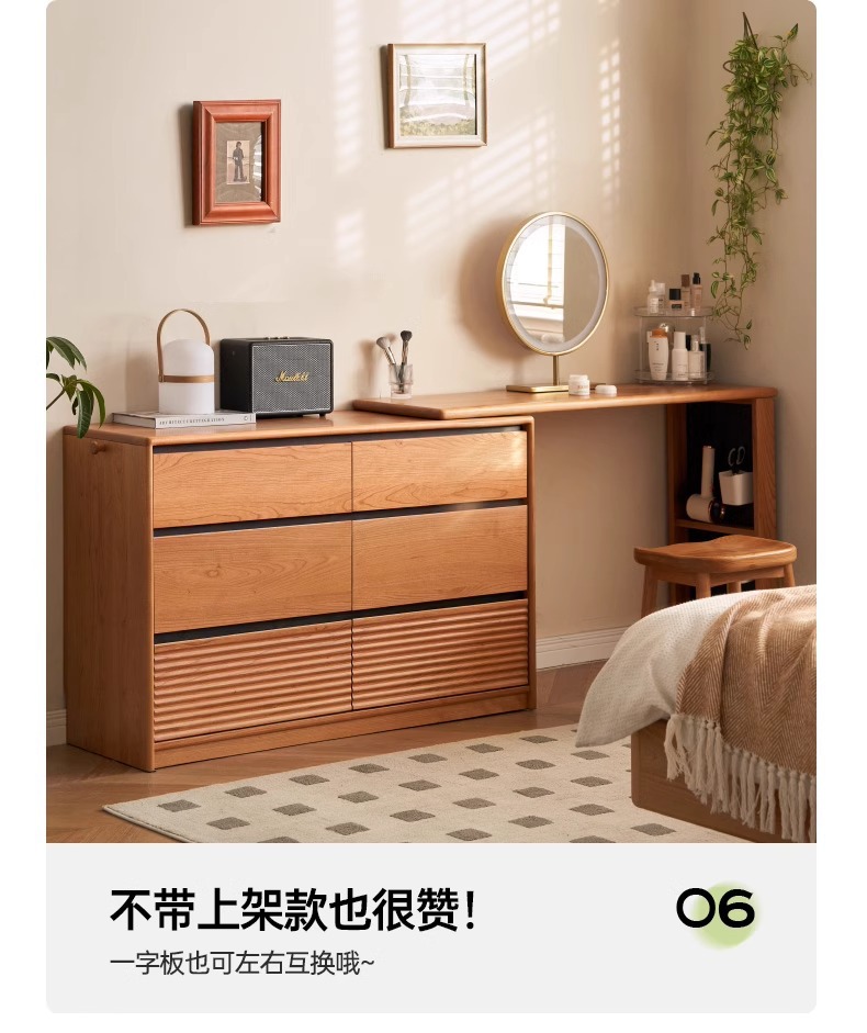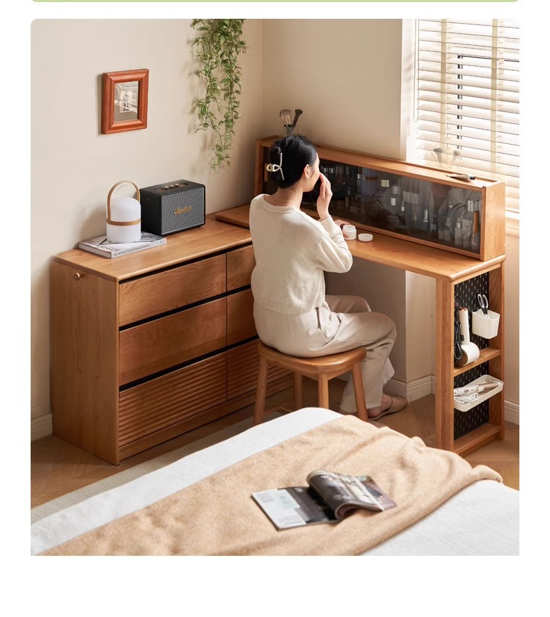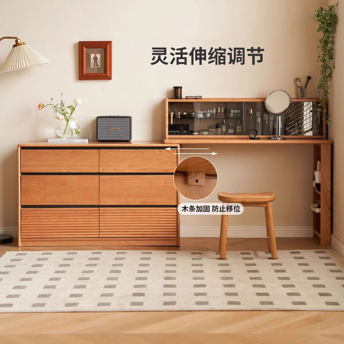 实木化妆桌樱桃木复古家用转角化妆台简约斗柜梳妆台一体