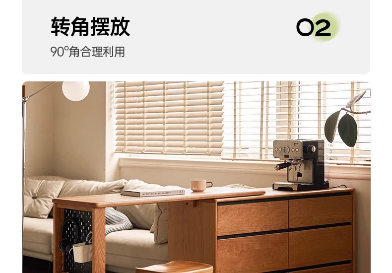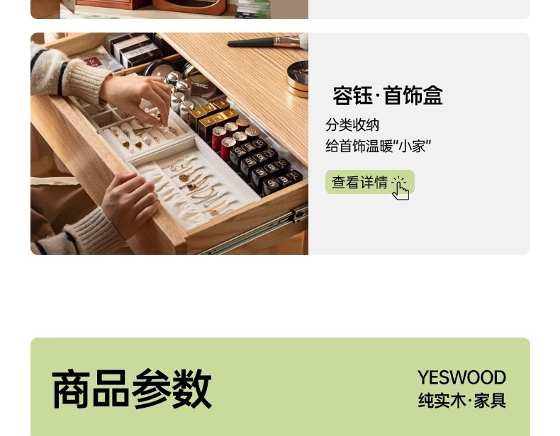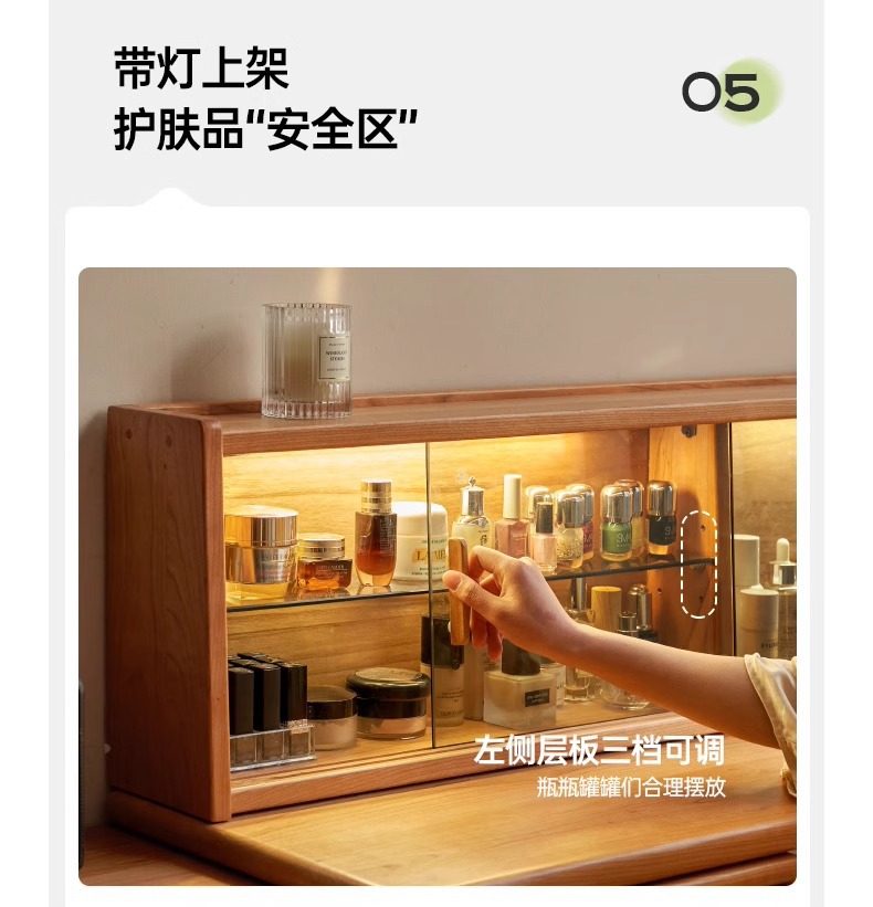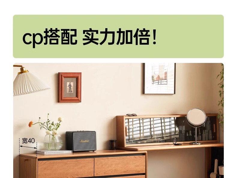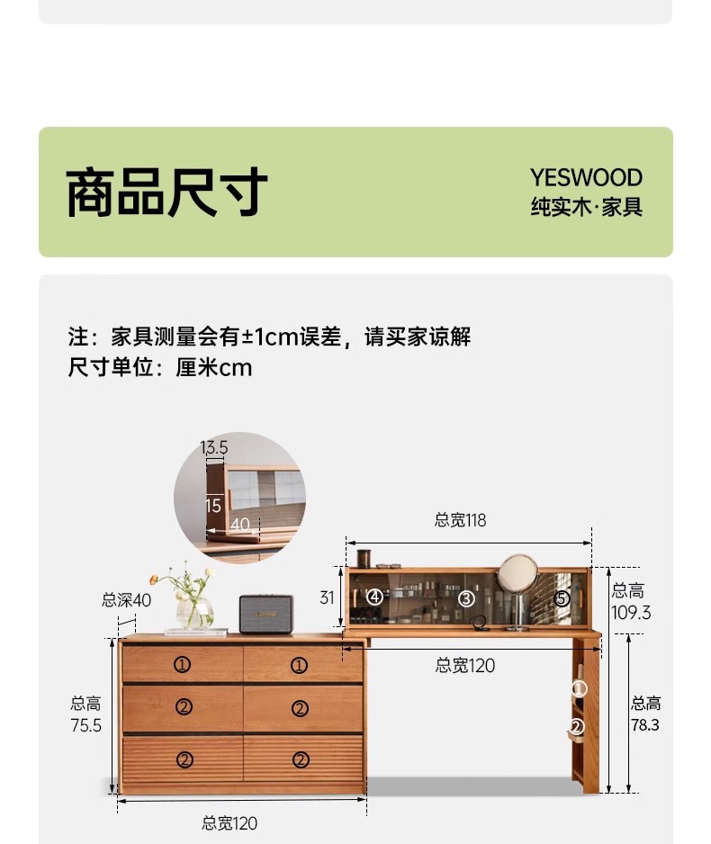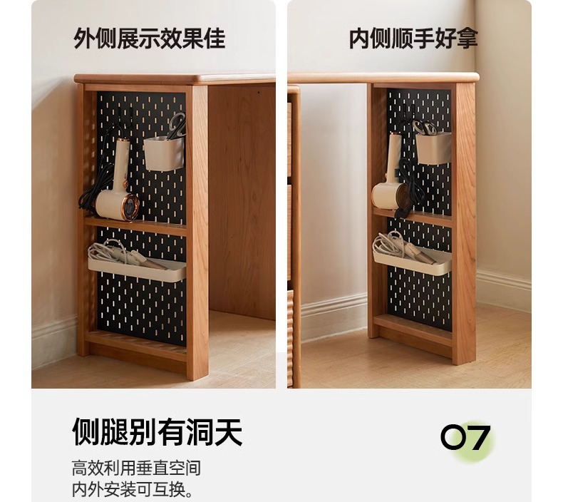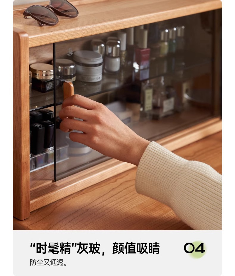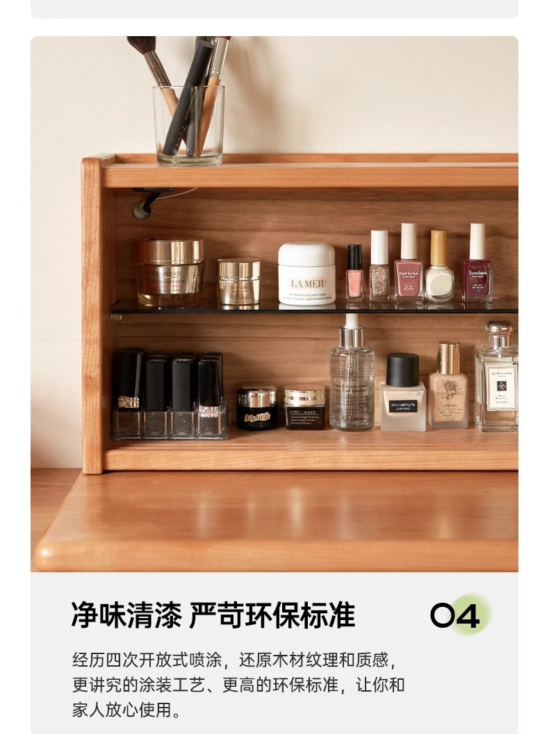 实木化妆桌樱桃木复古家用转角化妆台简约斗柜梳妆台一体