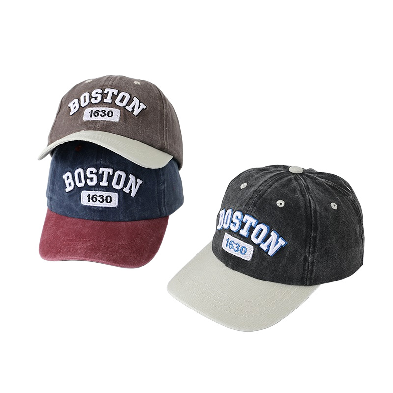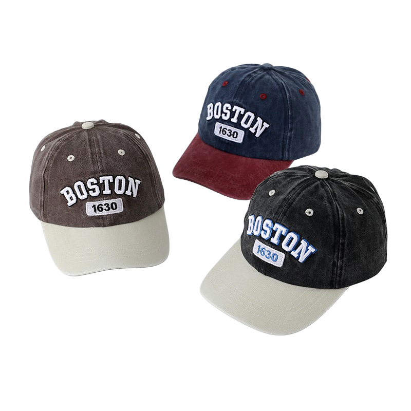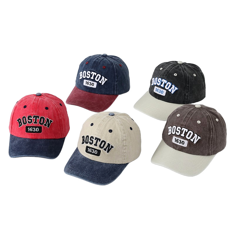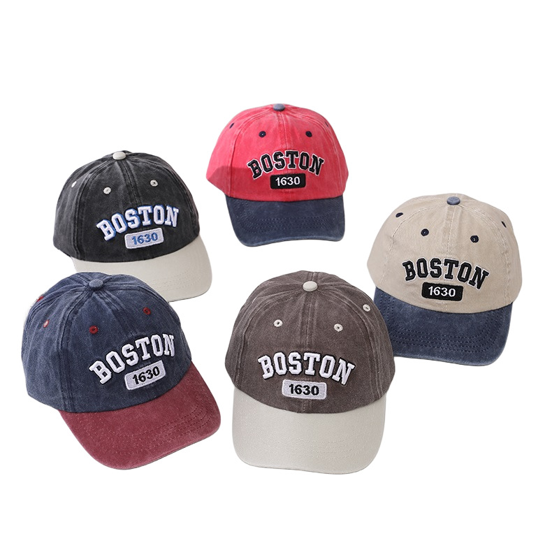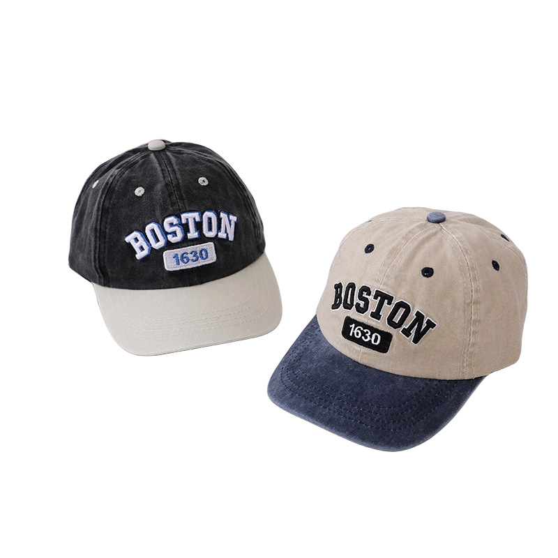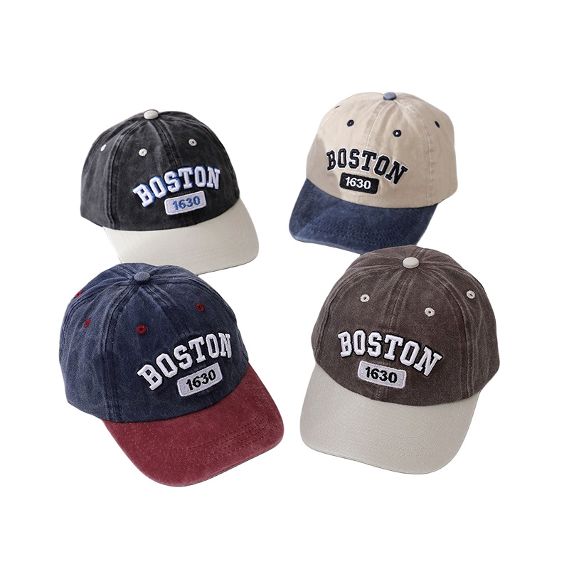 外贸儿童帽子BOSTON水洗刺绣鸭舌帽春秋男女童遮阳帽拼色棒球帽
