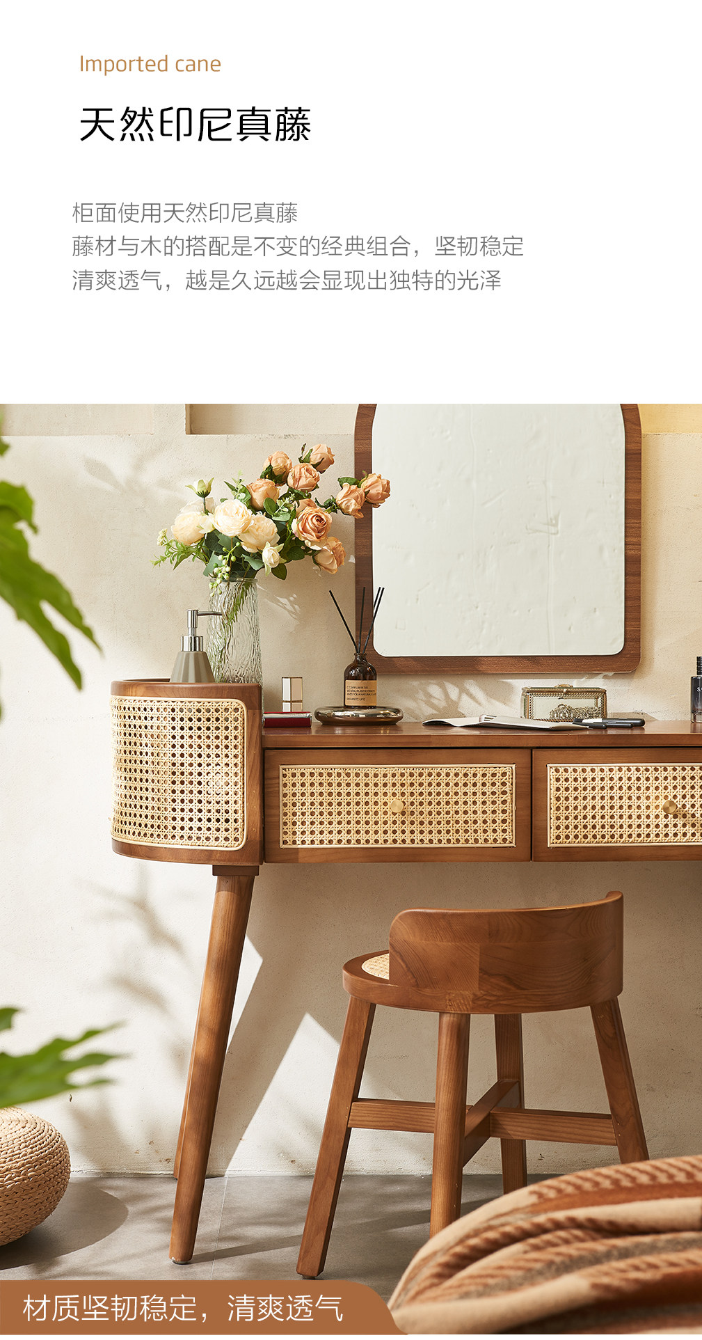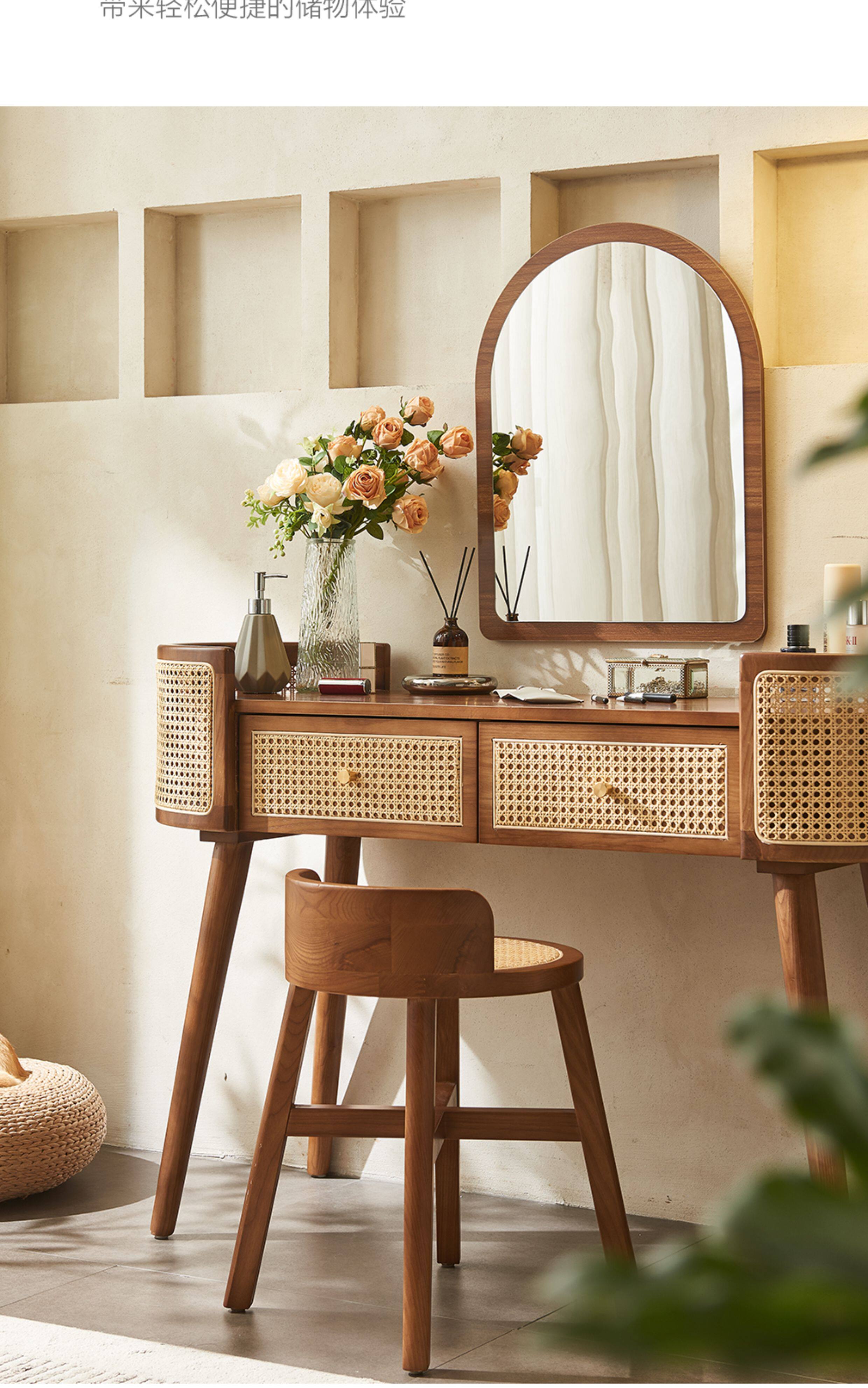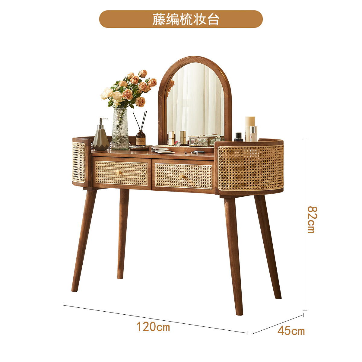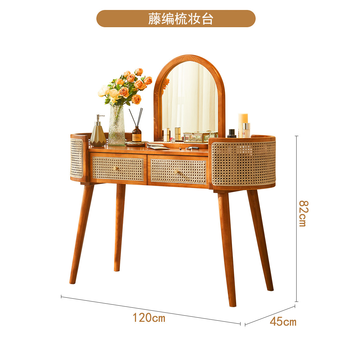 日式ins藤编梳妆台北欧设计师实木化妆桌卧室女现代简约小户型