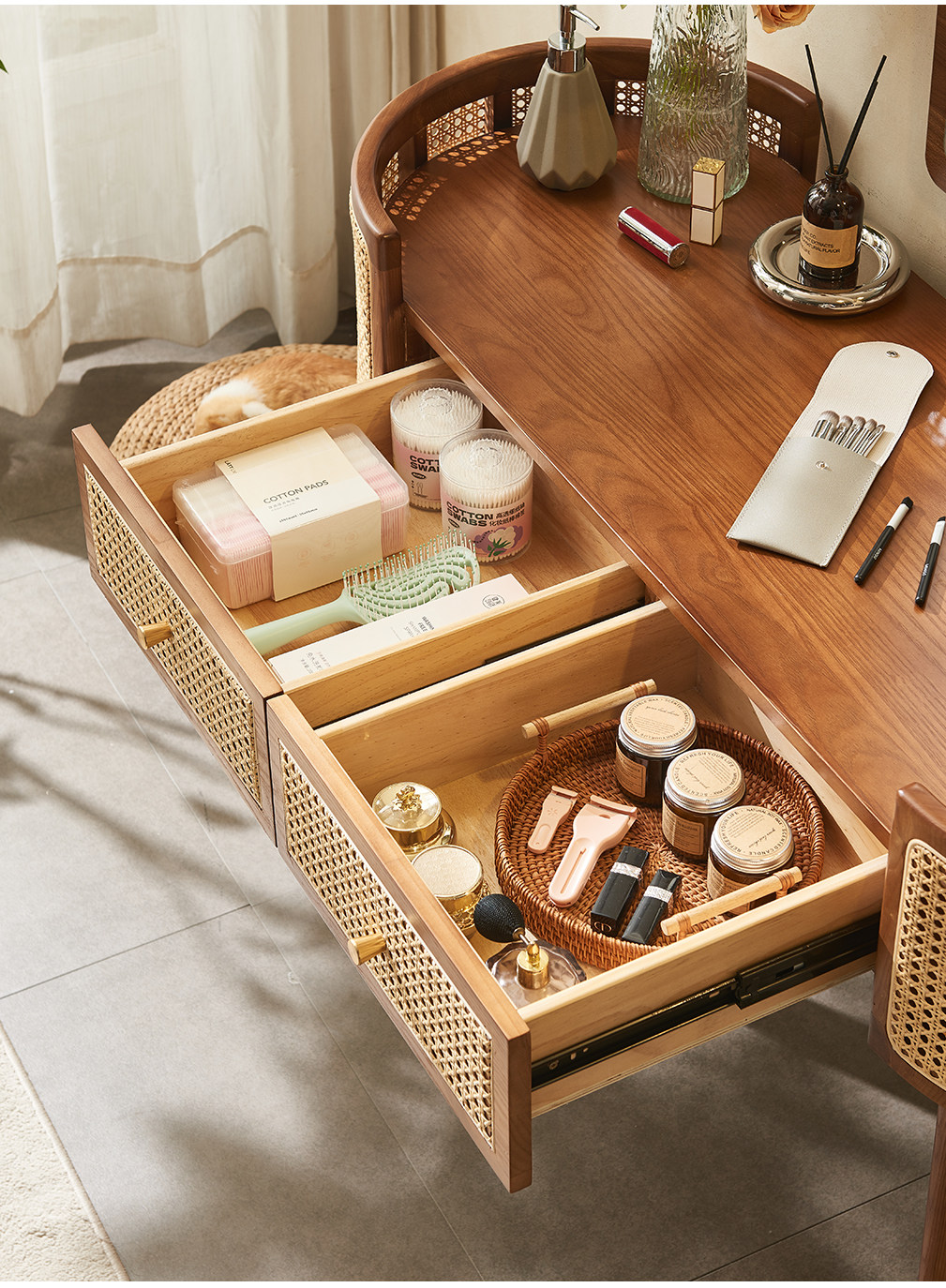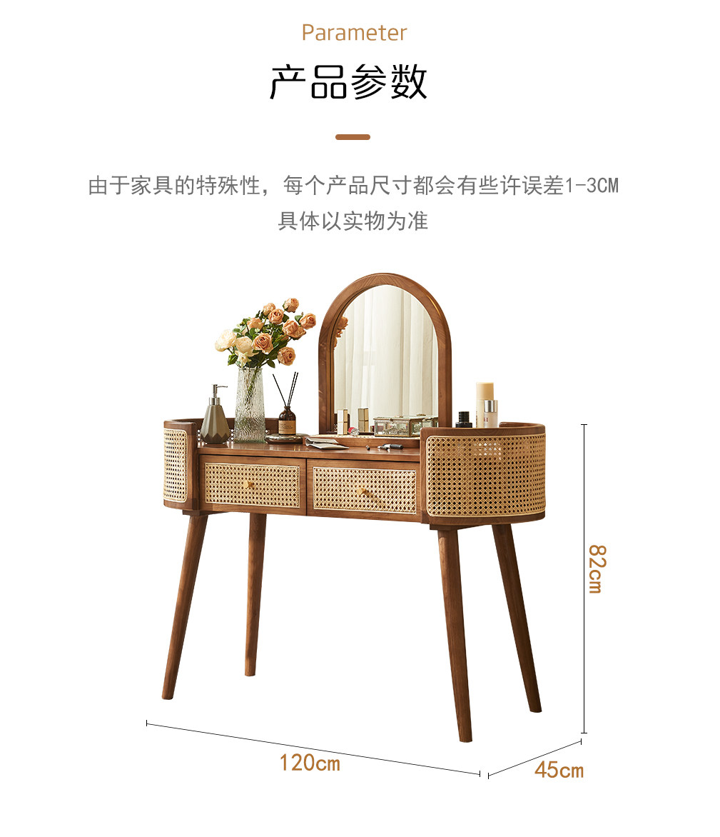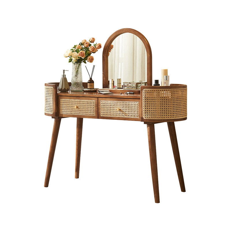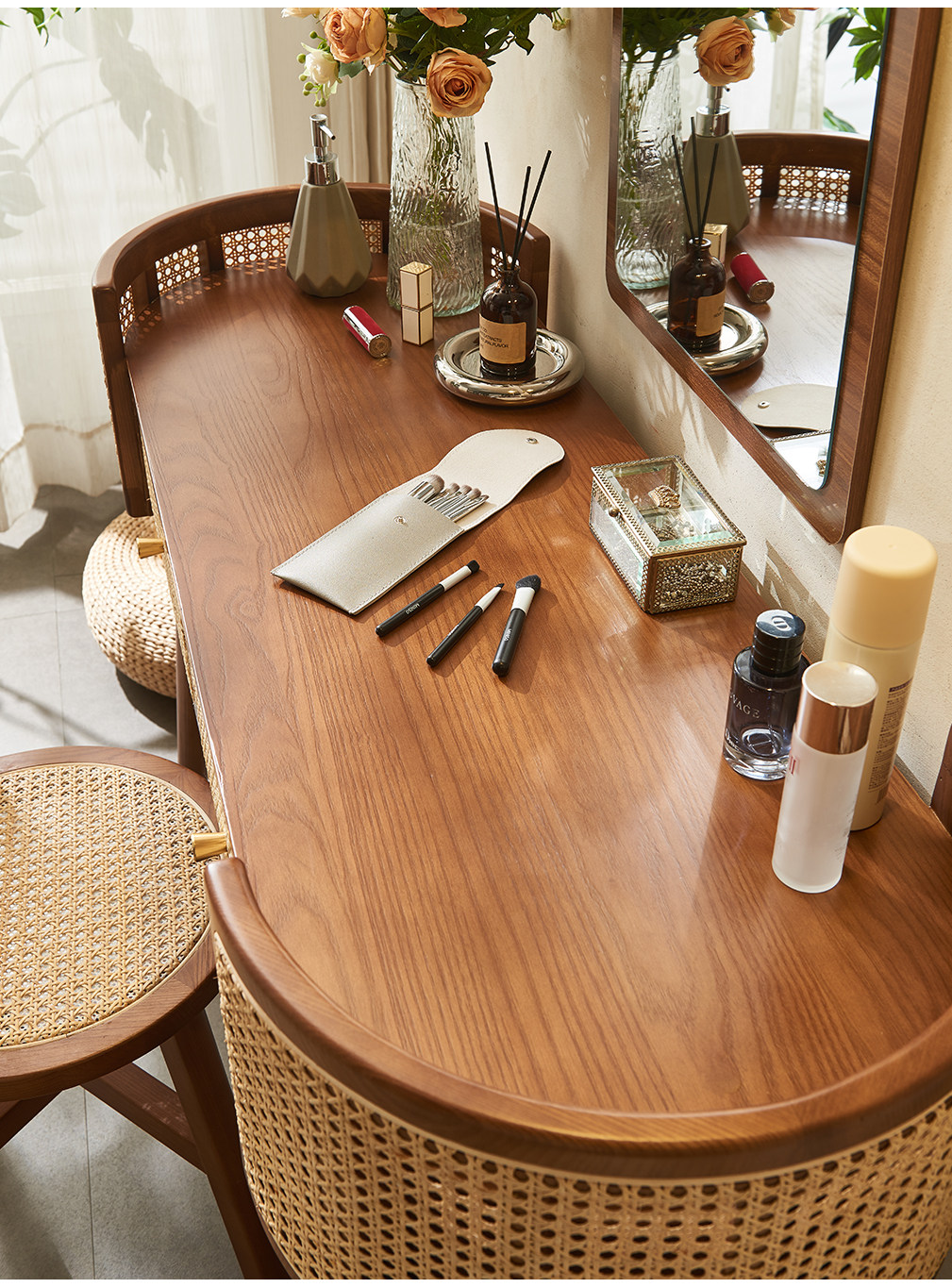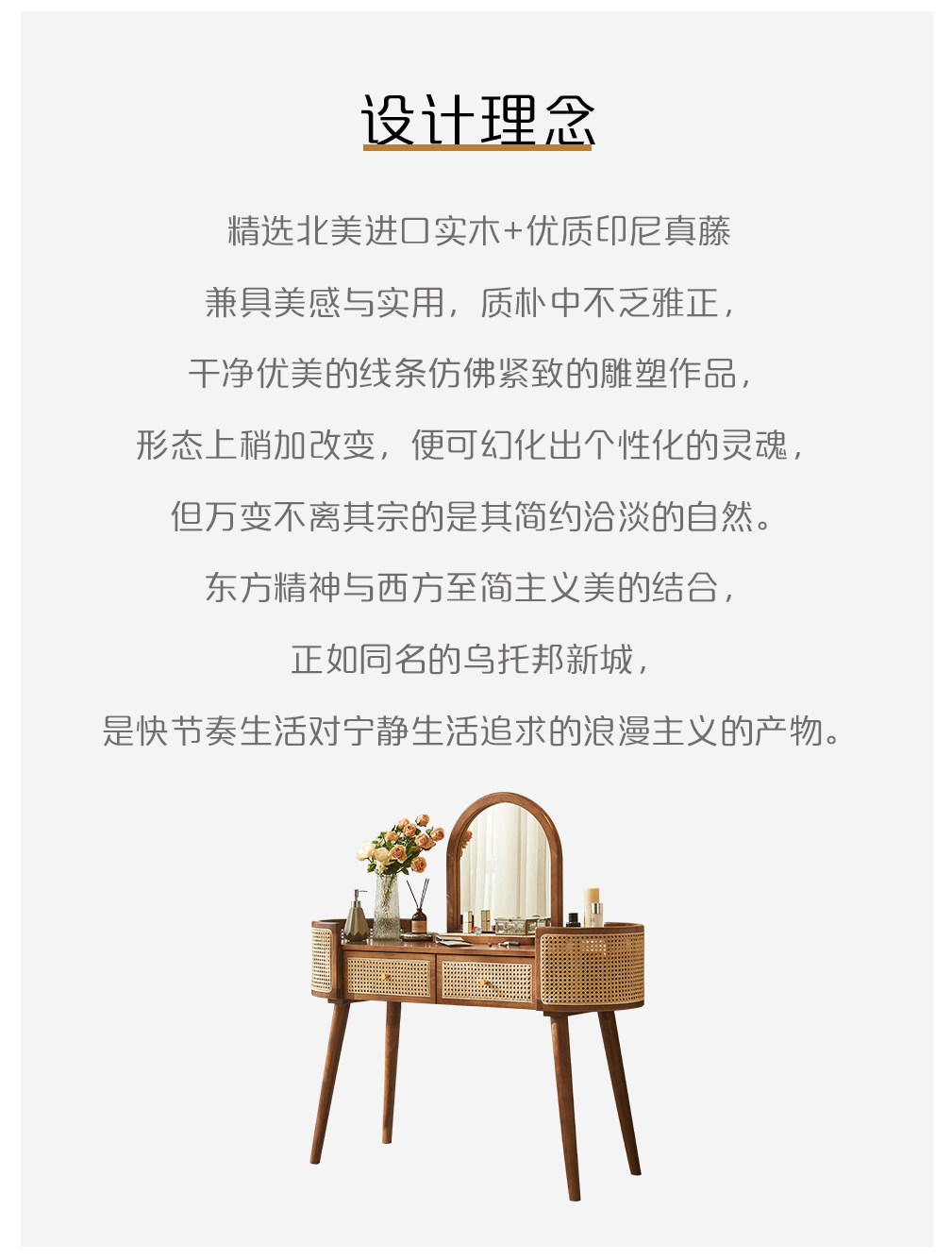 日式ins藤编梳妆台北欧设计师实木化妆桌卧室女现代简约小户型