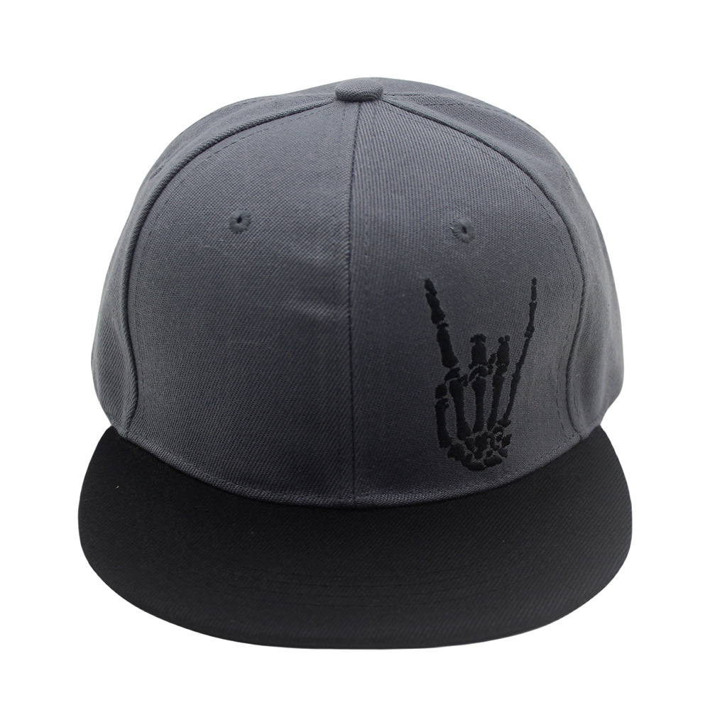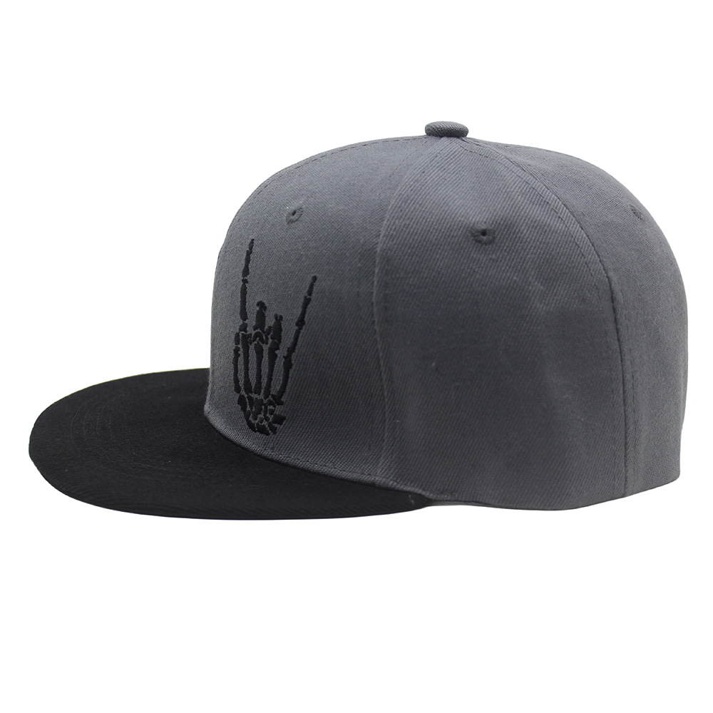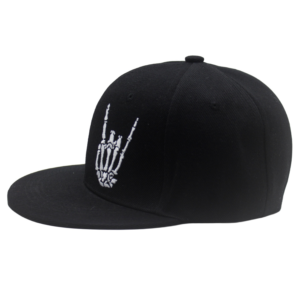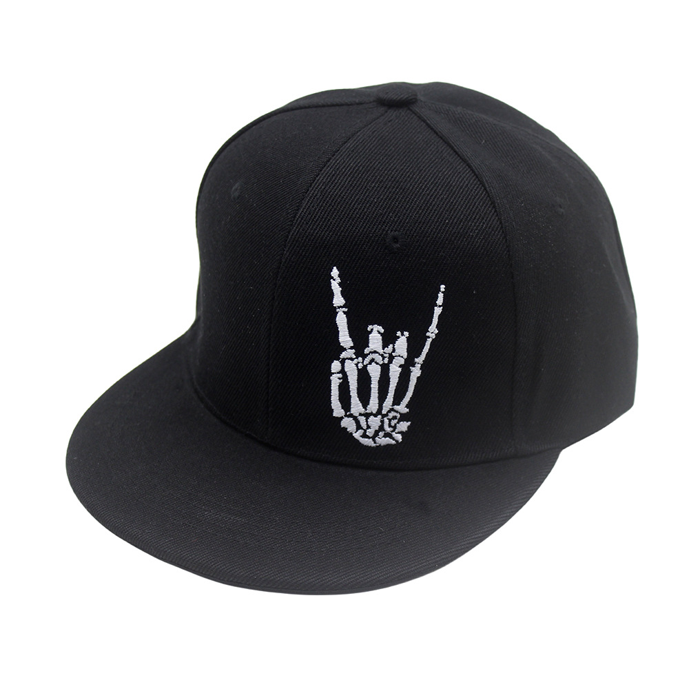 跨境热销骷髅手指刺绣棒球帽男士户外休闲平沿嘻哈帽遮阳防晒帽子