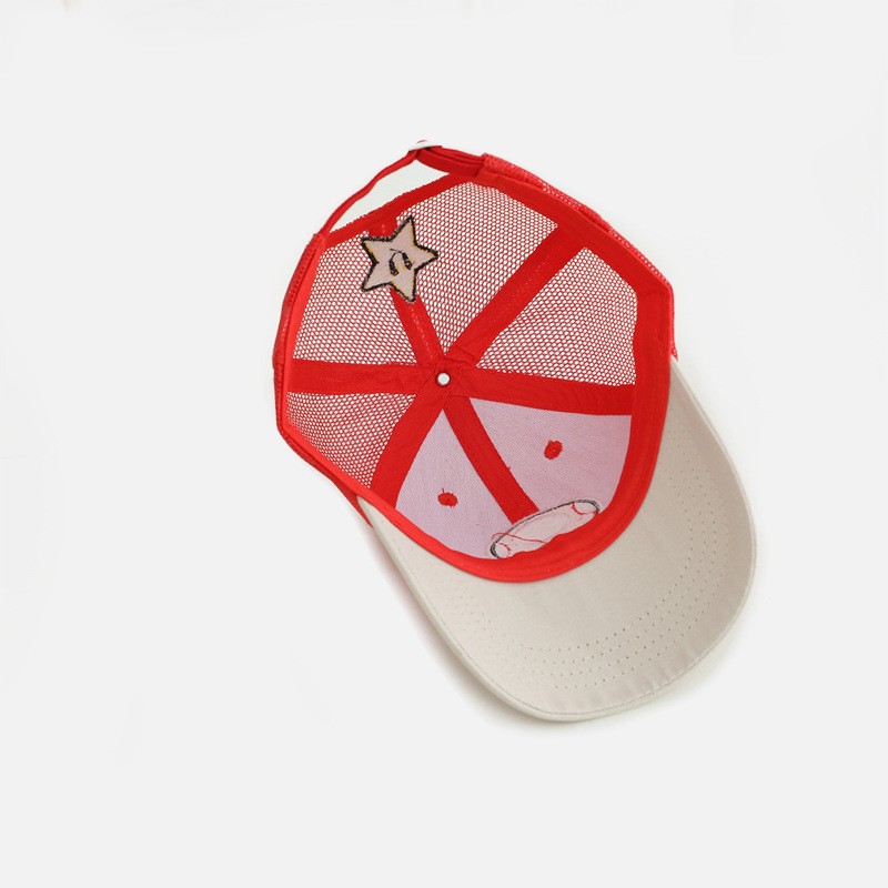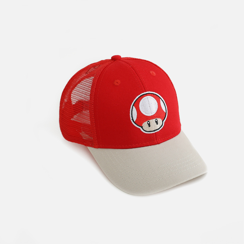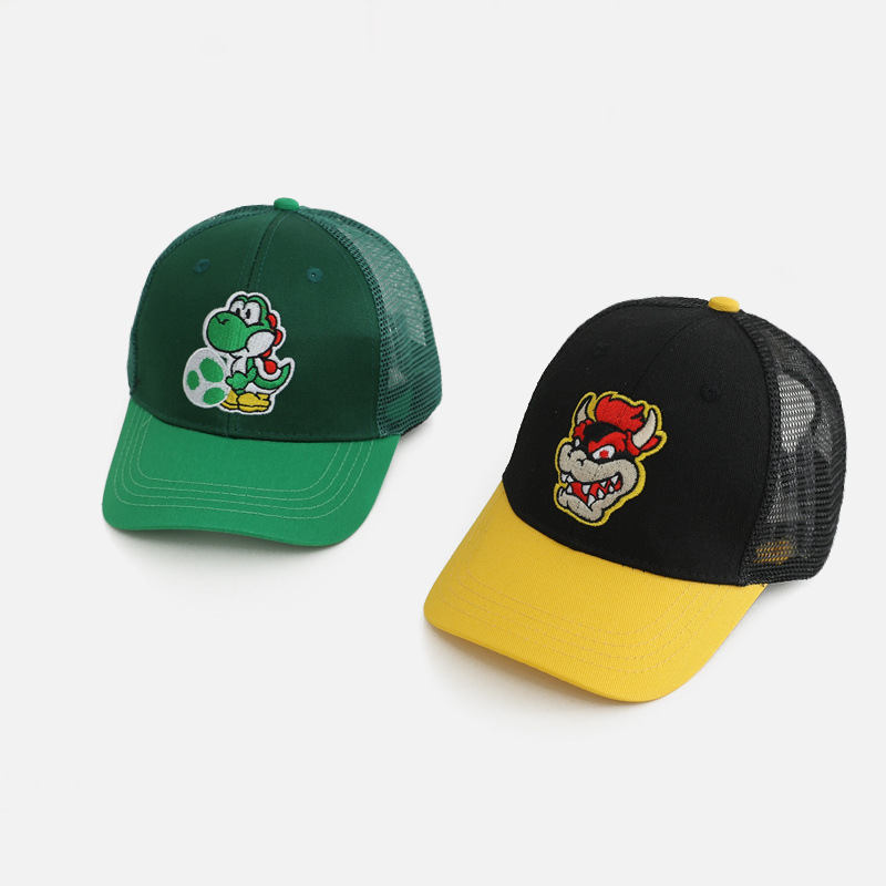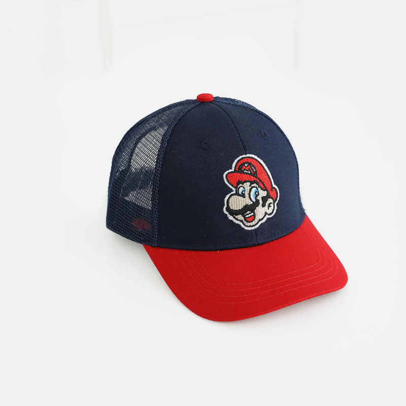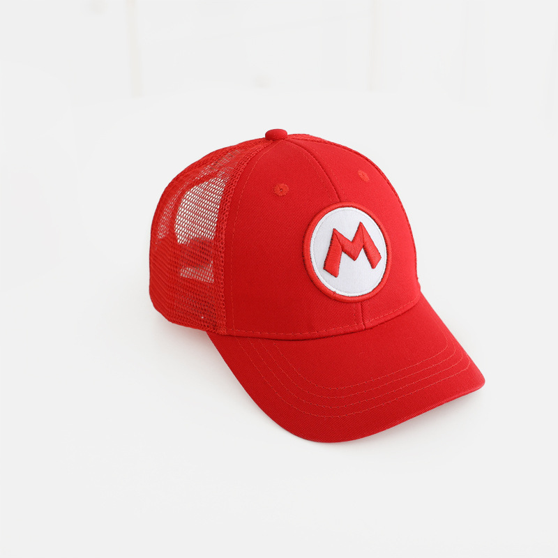 马里奥儿童网帽男女童卡通鸭舌帽夏季新款超级玛丽宝宝拼色棒球帽