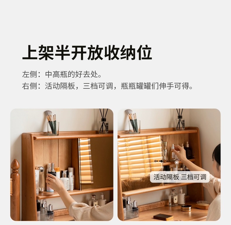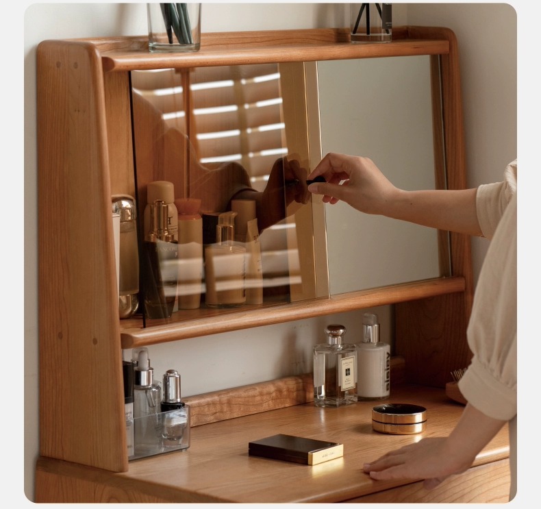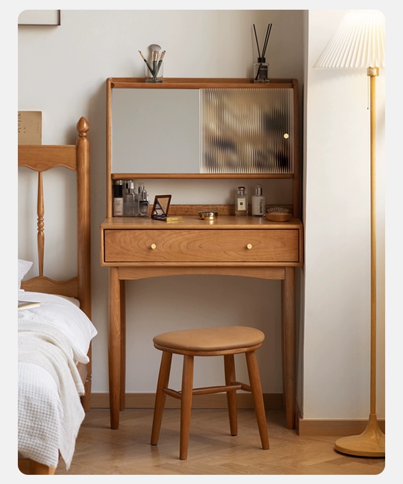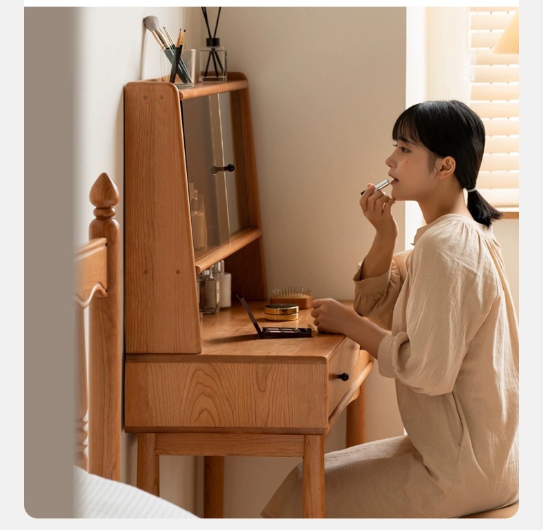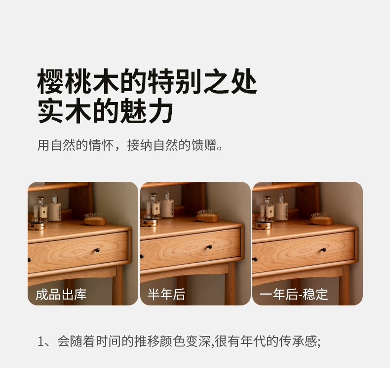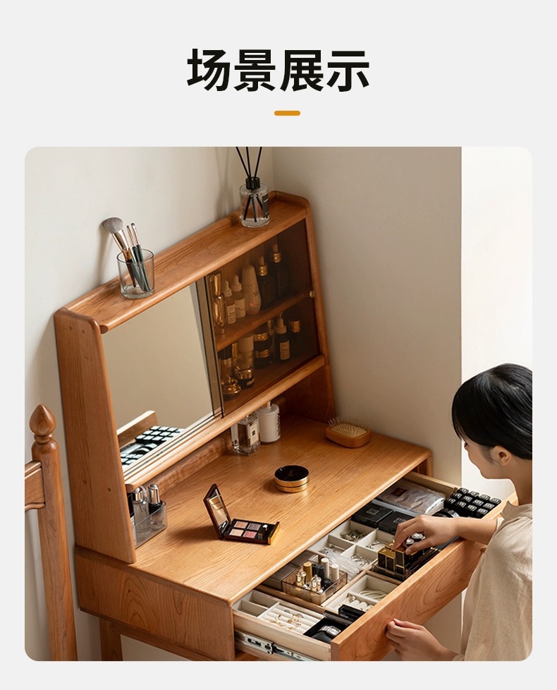 实木化妆桌小户型卧室小型复古樱桃木多功能收纳梳妆台
