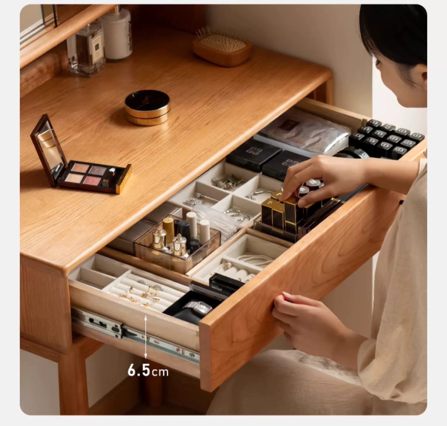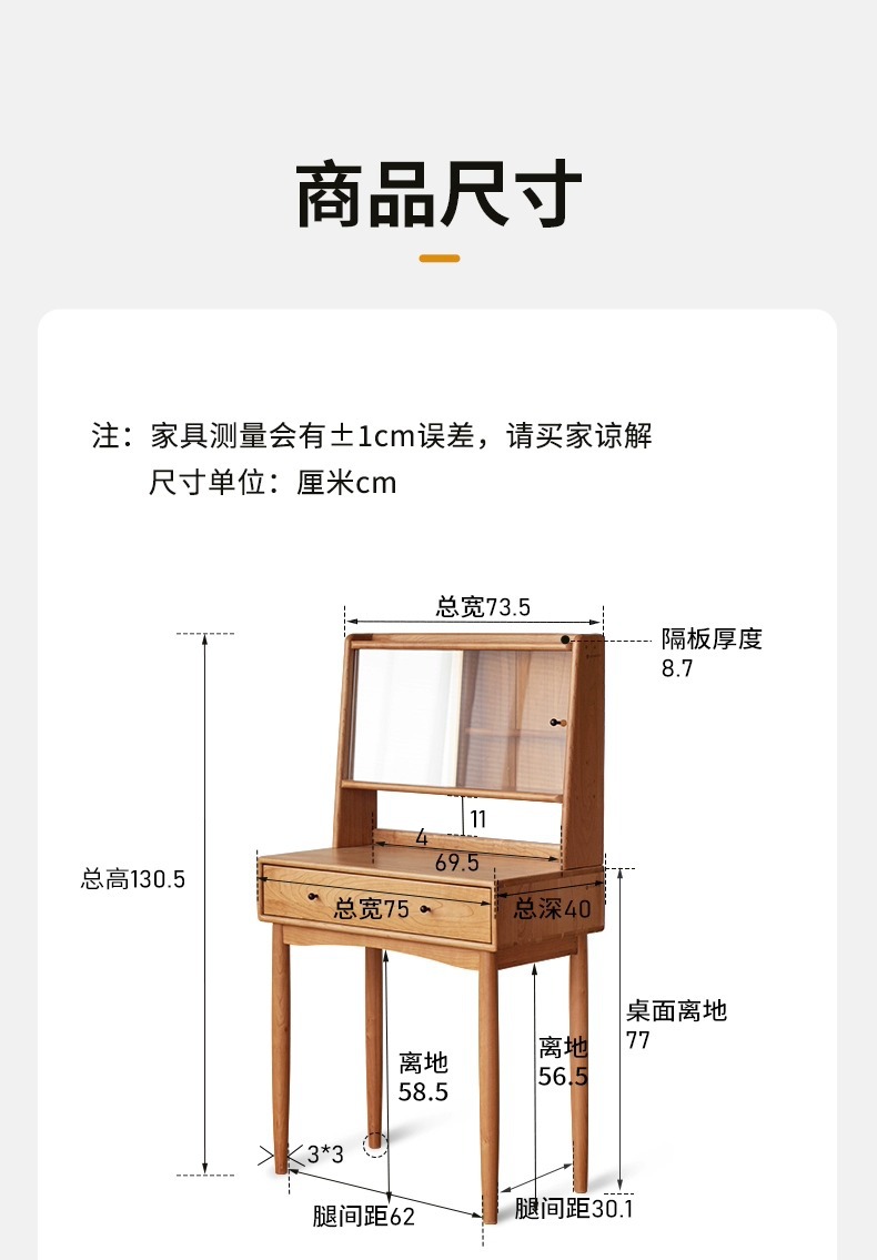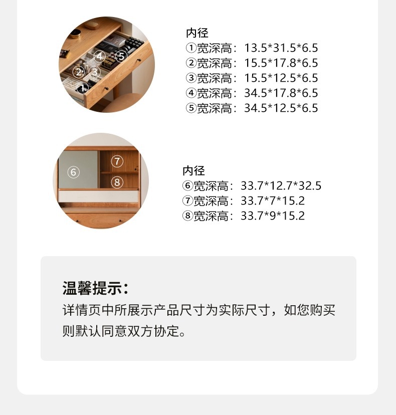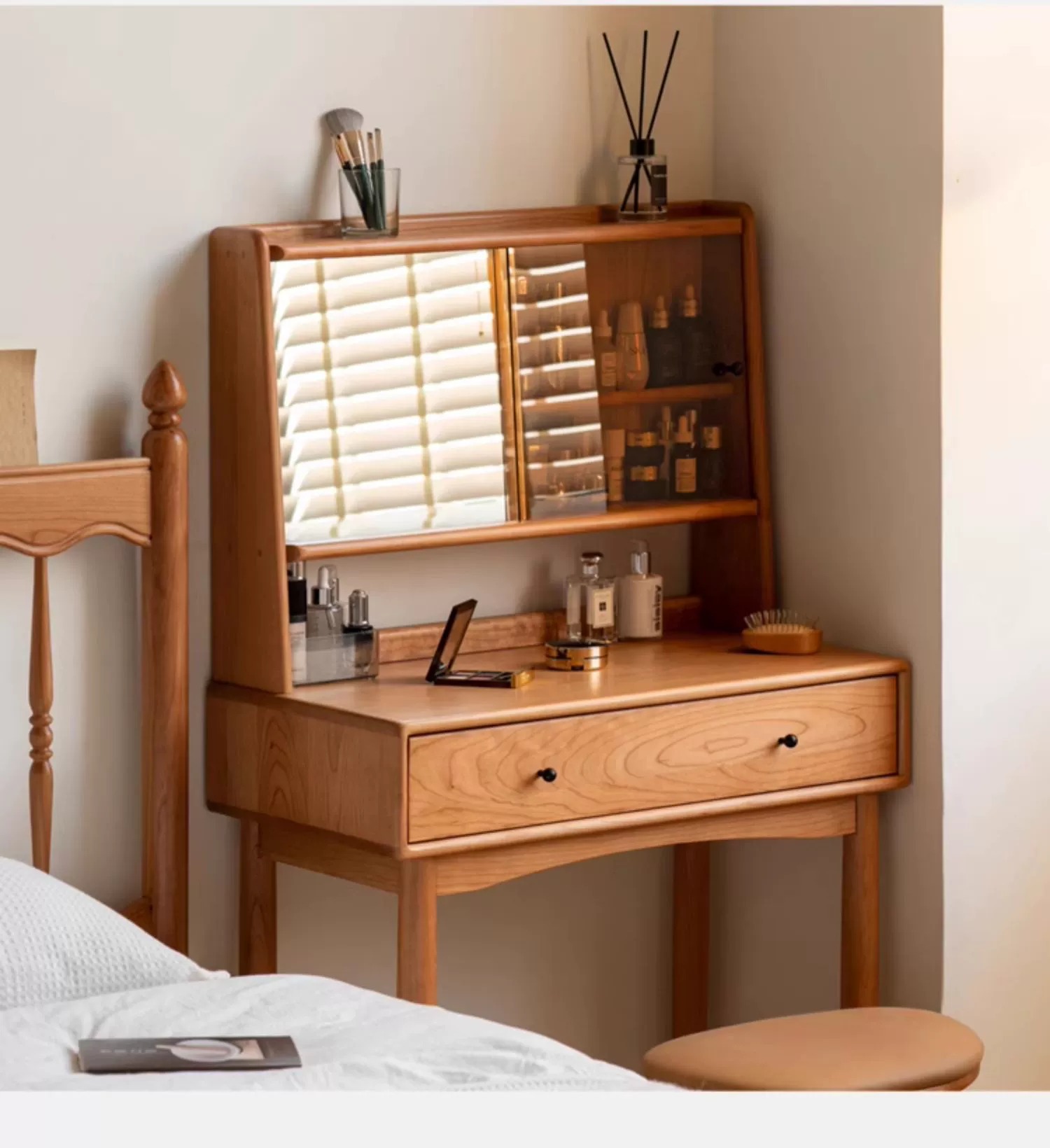 实木化妆桌小户型卧室小型复古樱桃木多功能收纳梳妆台