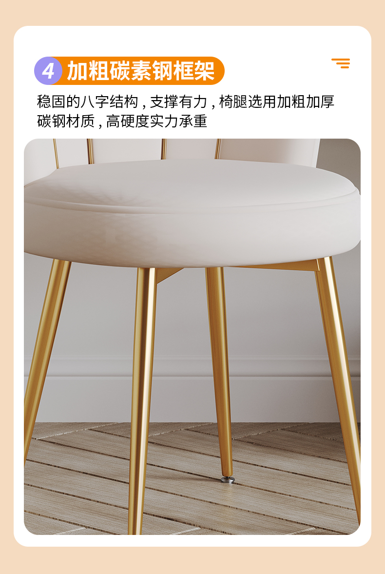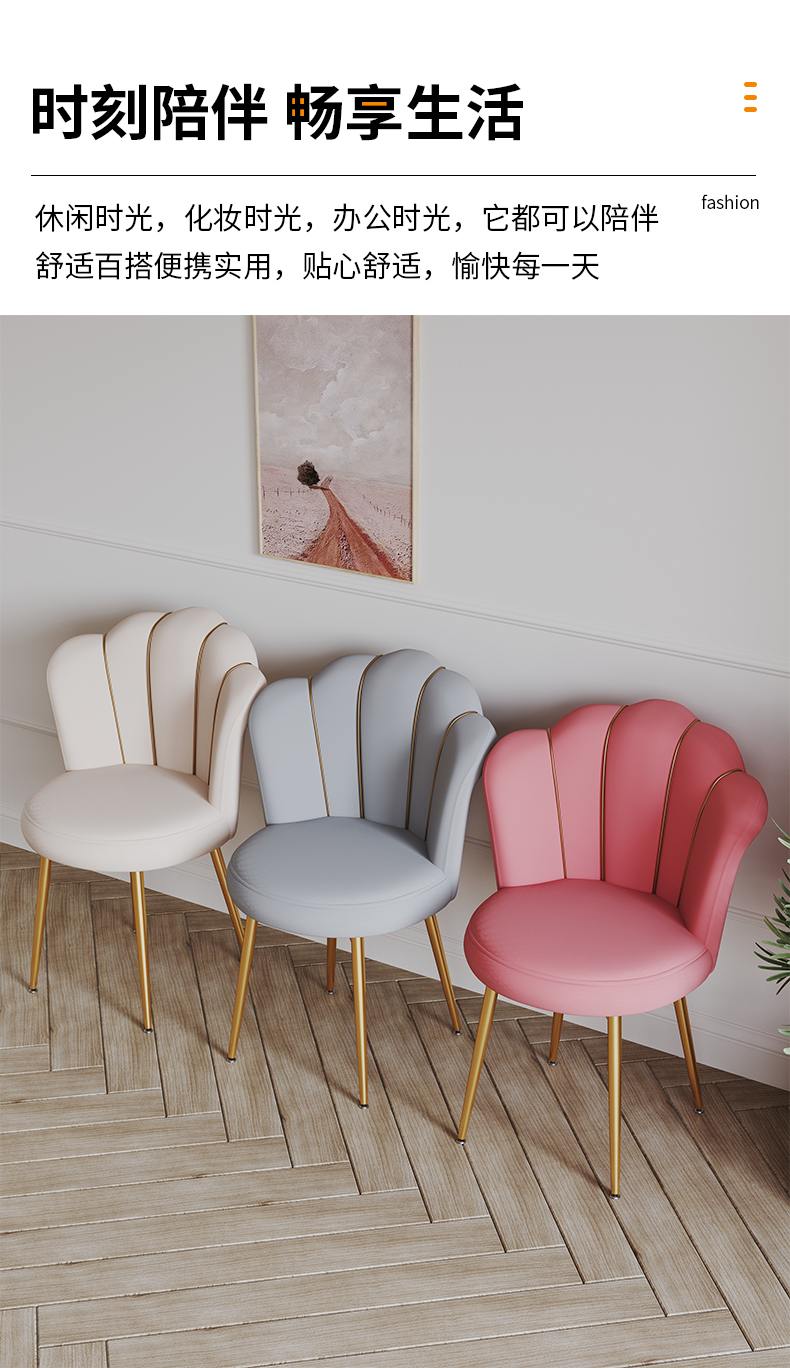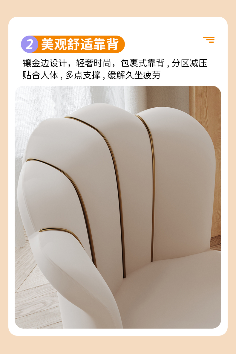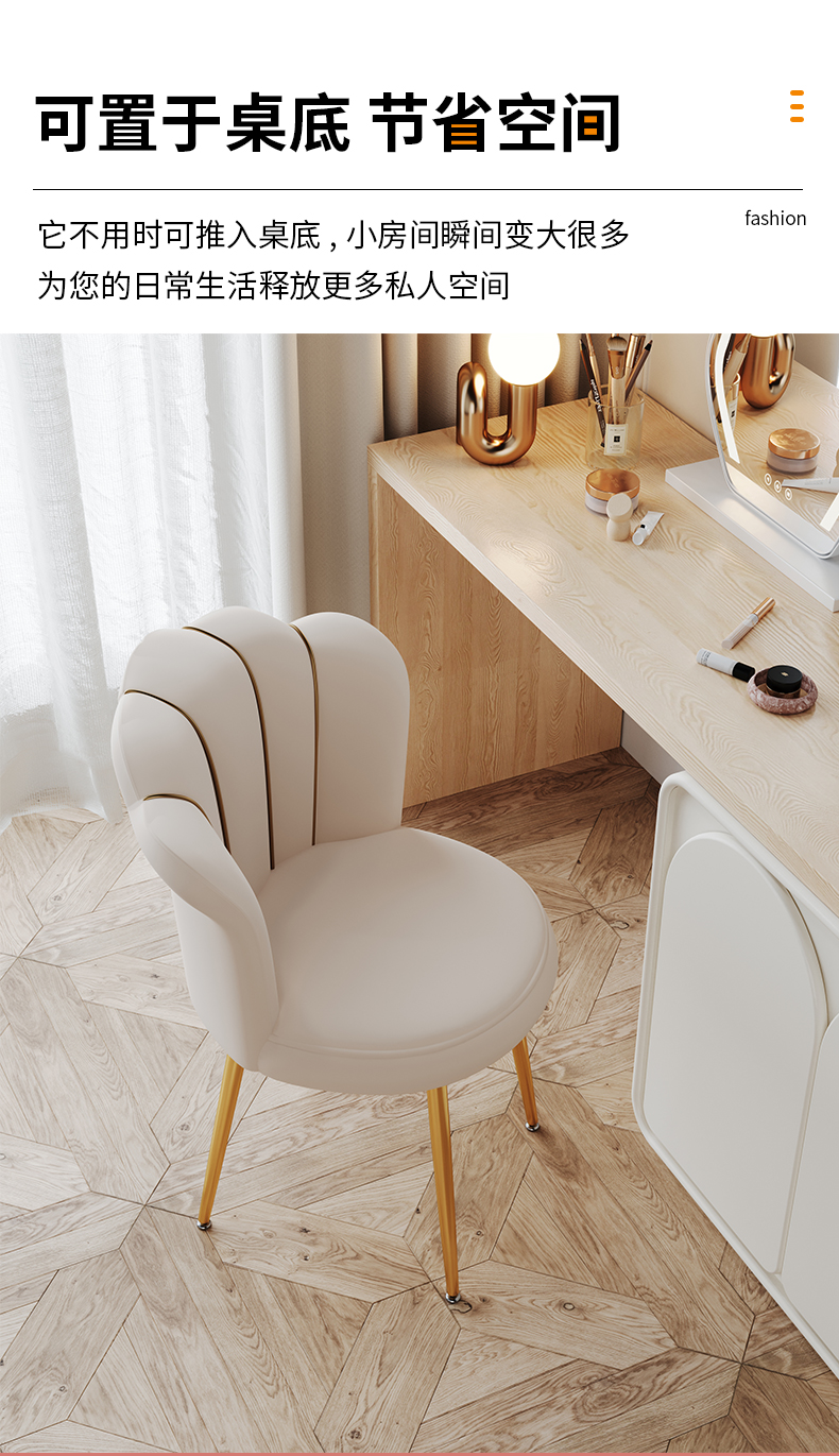 化妆椅轻奢主卧梳妆台凳子网红靠背高级感美甲椅女生卧室花瓣月衫