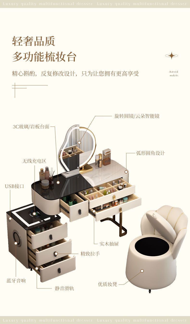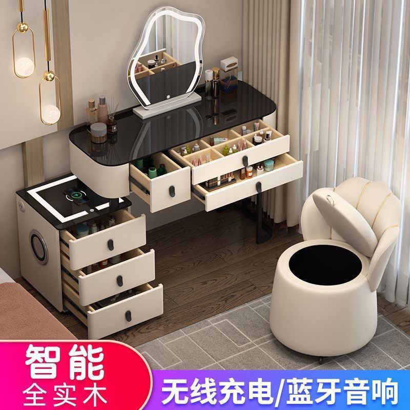 轻奢简约梳妆台卧室实木智能家居多功能蓝牙音响女生化妆桌子