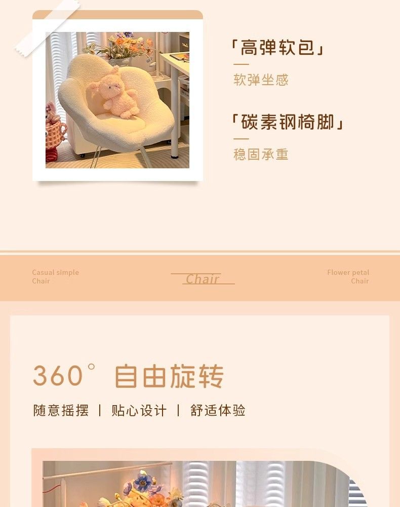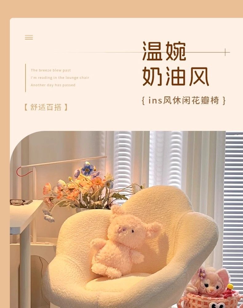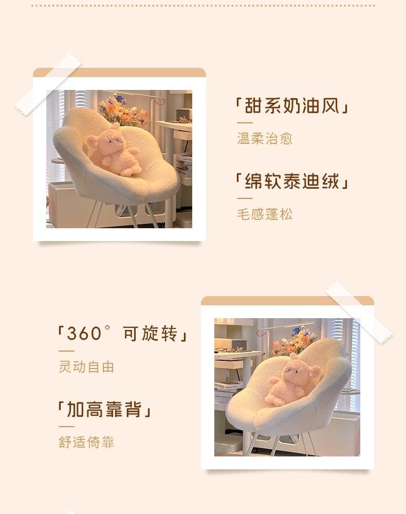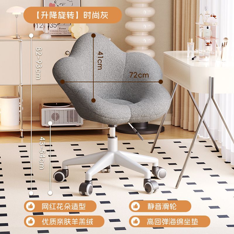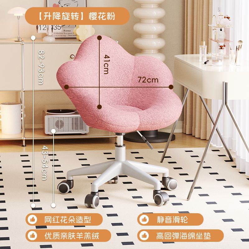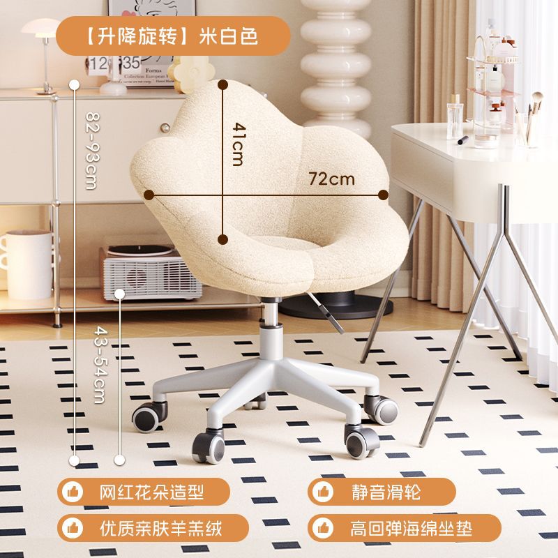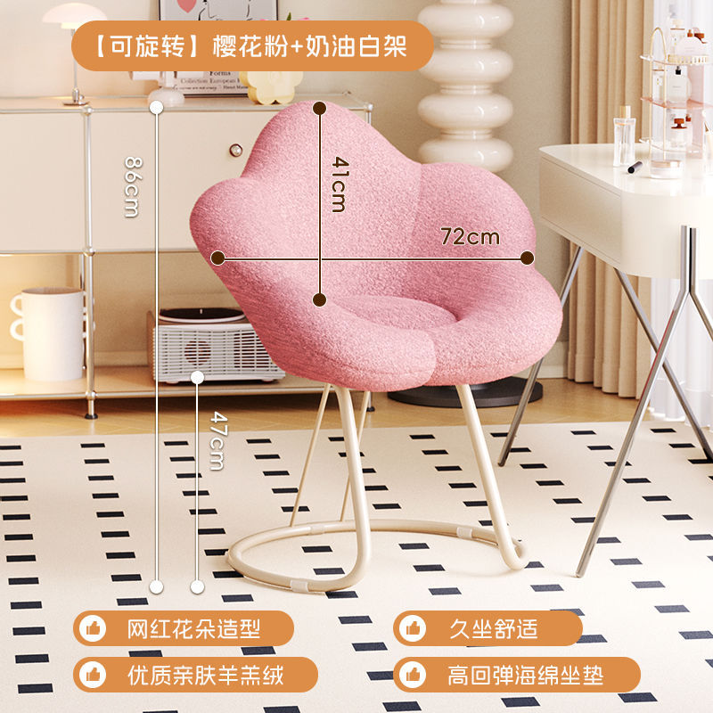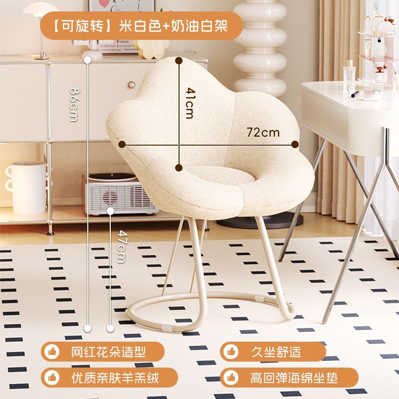 网红化妆椅靠背梳妆台椅子奶油风凳子女生卧室花瓣椅可旋转美甲椅