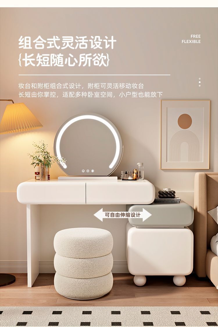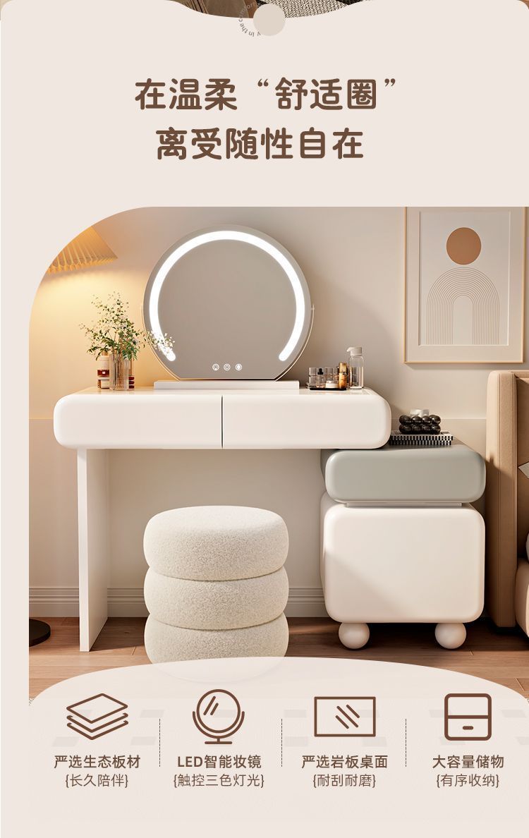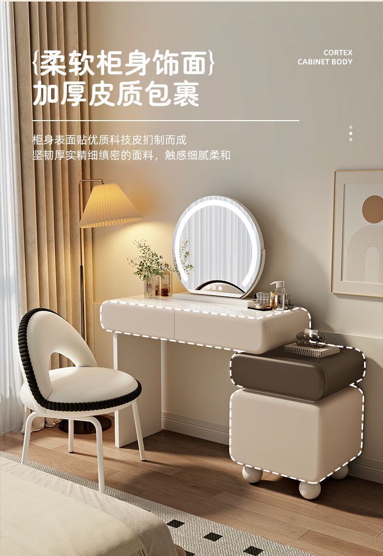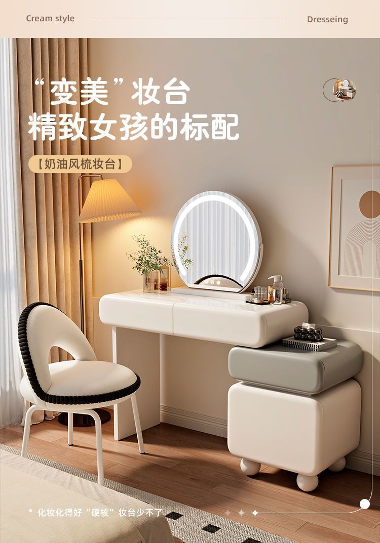 2025新款奶油风家居梳妆台斗柜一体出租房间轻奢高档卧室梳妆台