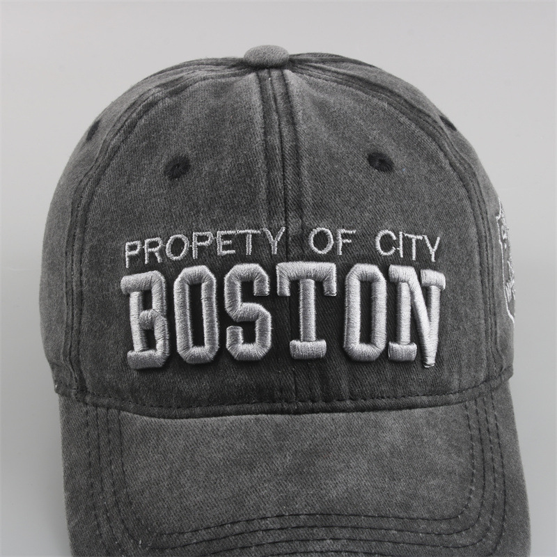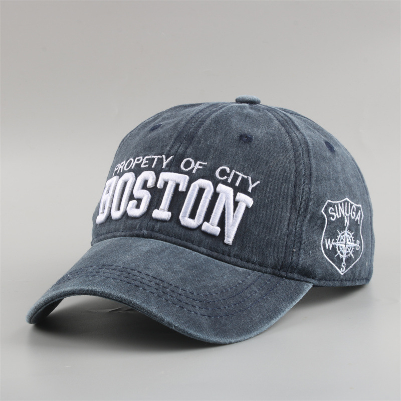 韩版潮水洗棒球帽刺绣boston做旧破洞男女帽子秋季新款遮阳鸭舌帽
