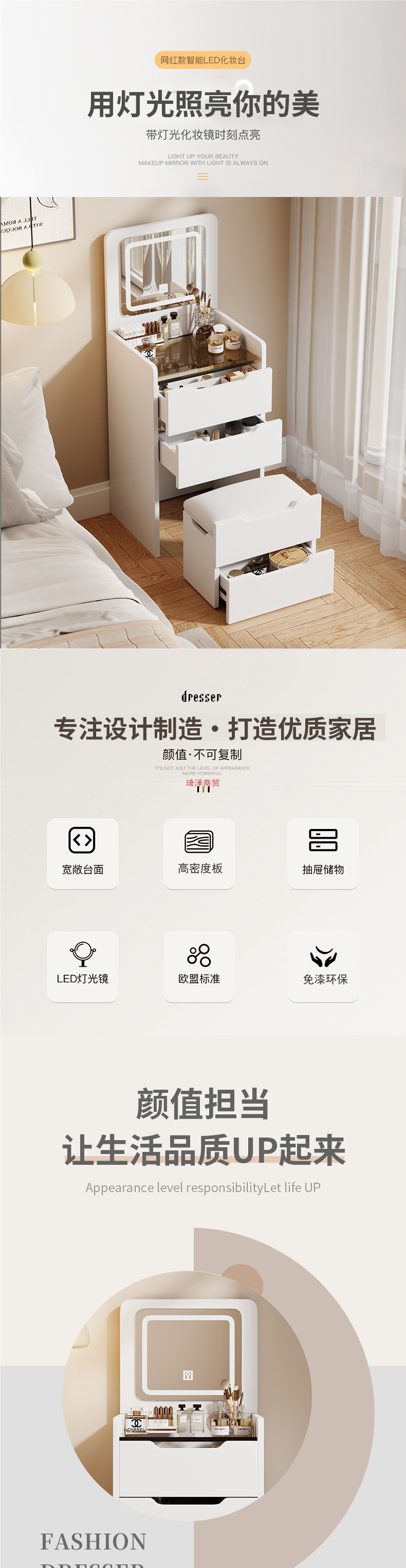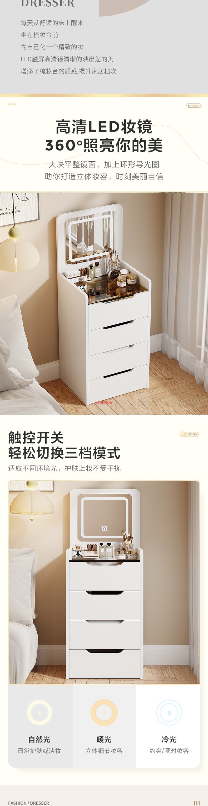 新款梳妆台小户型收纳柜化妆台奶油风多功能翻盖桌子卧室化妆桌女