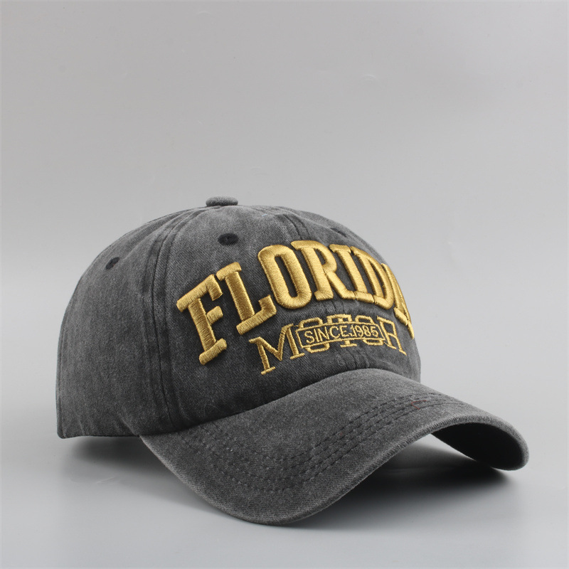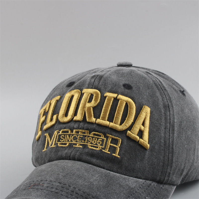 跨境新款水洗棒球帽字母鸭舌FLORIDA帽春秋季太阳帽刺绣遮阳帽子