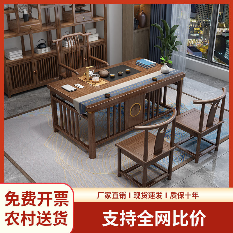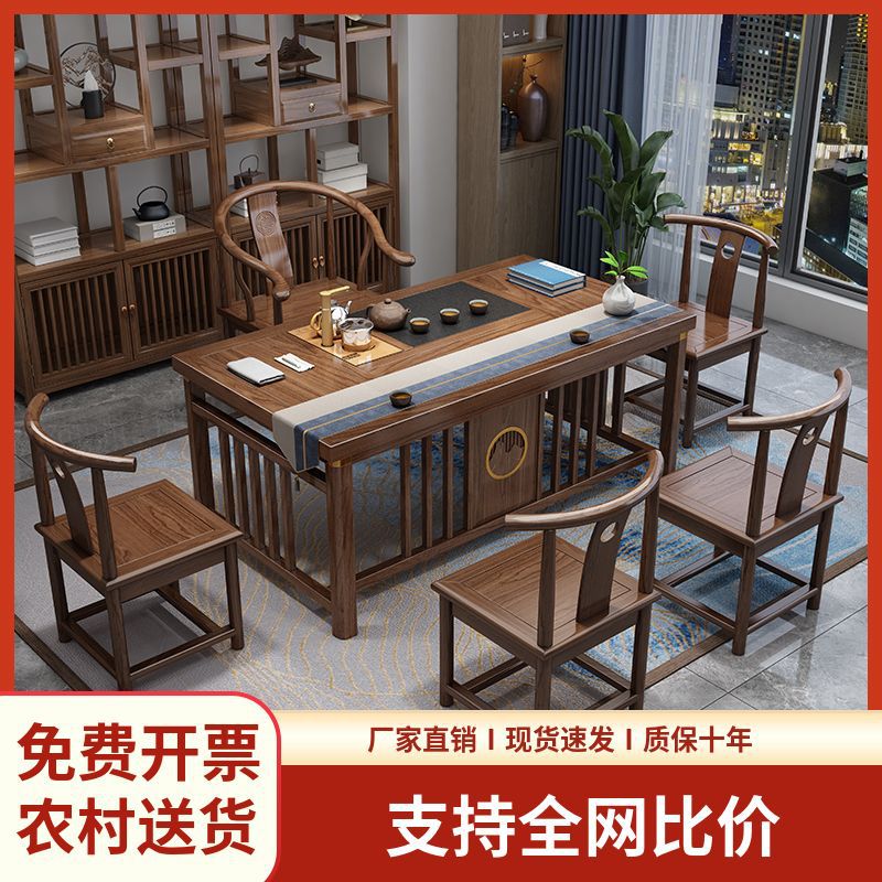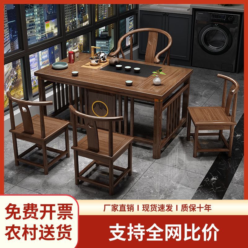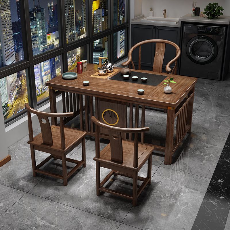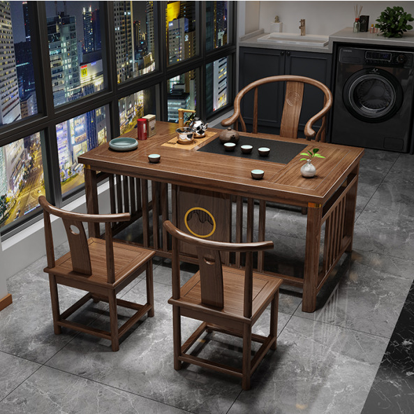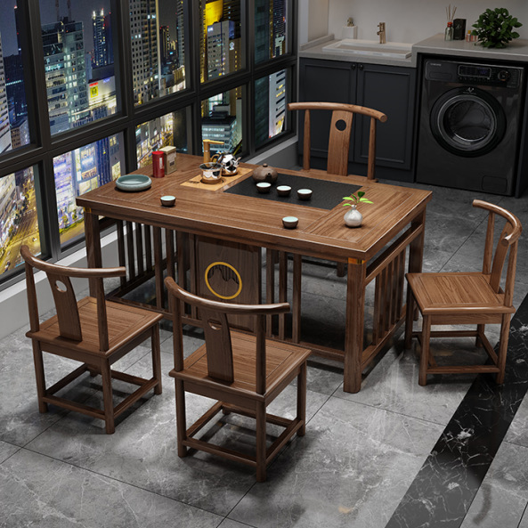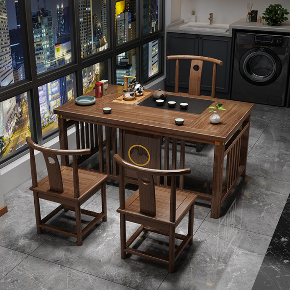 阳台喝茶桌椅组合新中式实木办公室家用小户型泡茶茶桌一体一整套