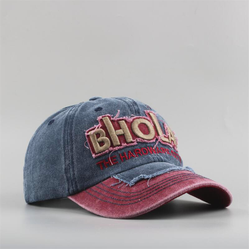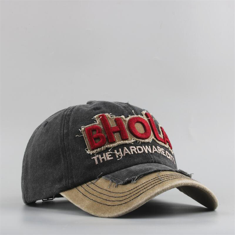 亚马逊棒球帽男刺绣字母BHOLA鸭舌帽女时尚秋季新款做旧水洗帽子