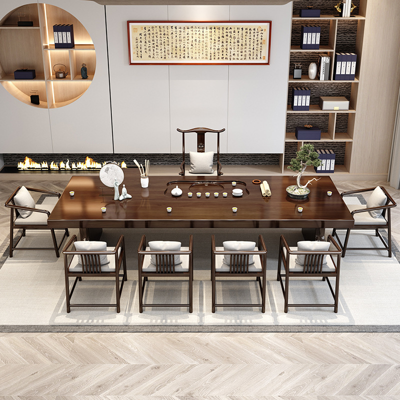 新中式茶桌全套椅组合实木茶台功夫泡茶桌子办公室家用大板茶桌