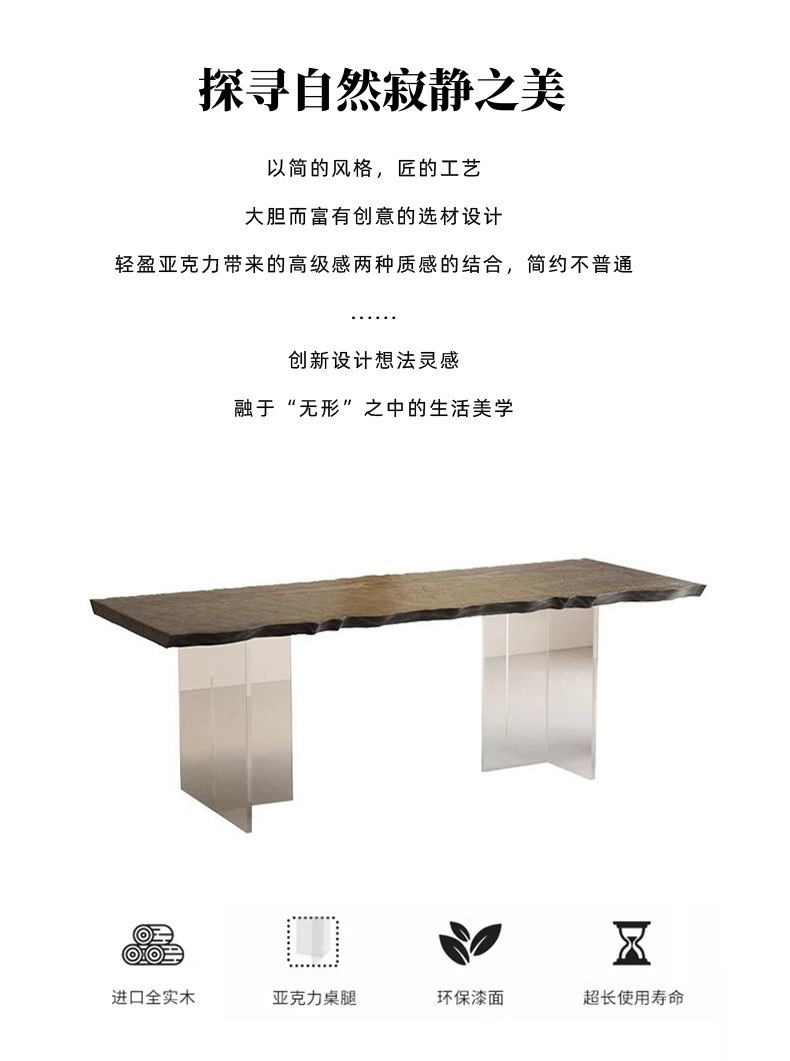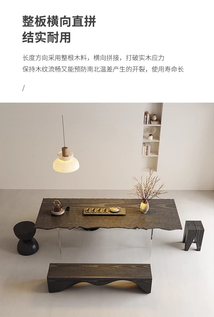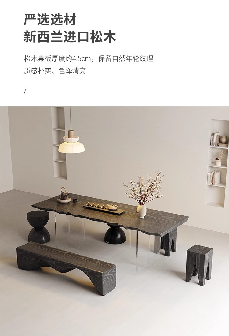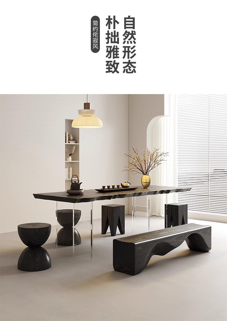 诚宏侘寂风实木茶桌家用泡茶桌子办公室大板亚克力悬浮茶桌椅茶台
