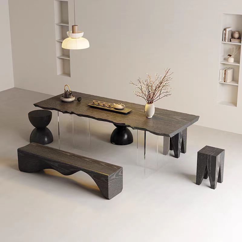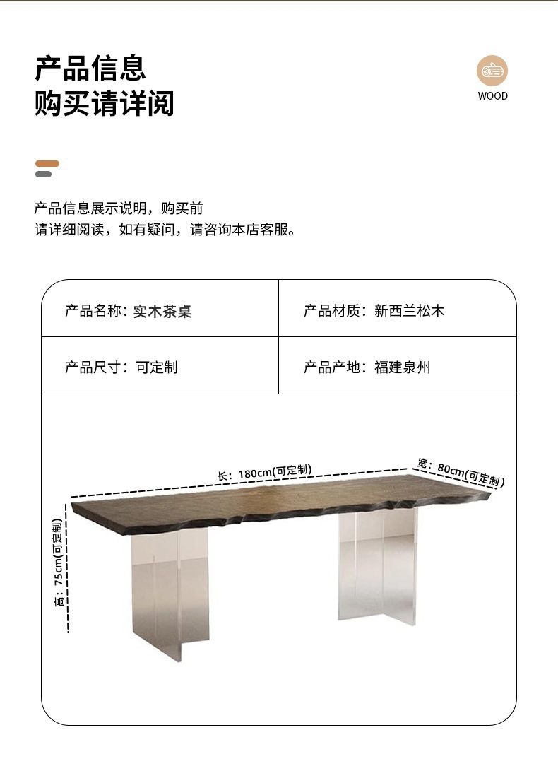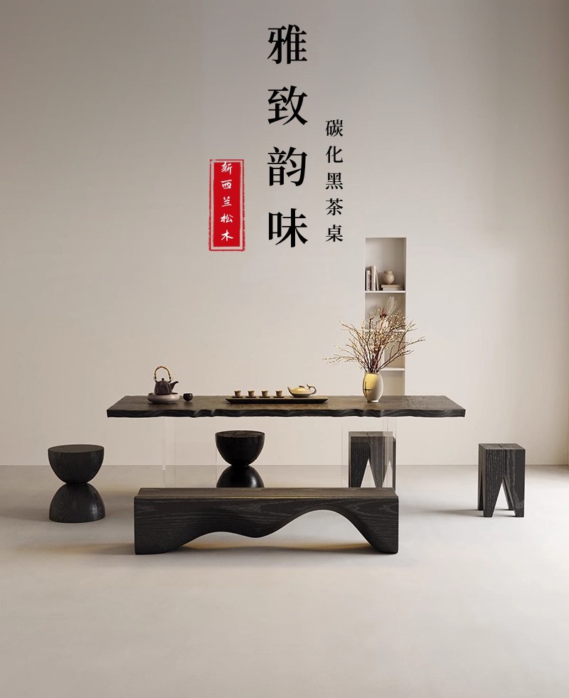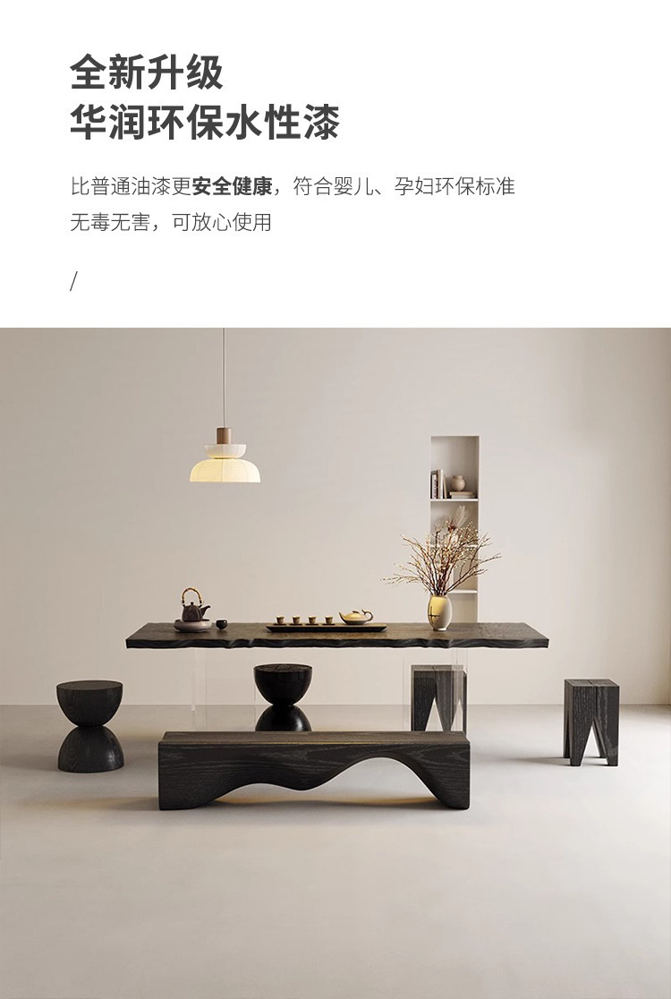 诚宏侘寂风实木茶桌家用泡茶桌子办公室大板亚克力悬浮茶桌椅茶台