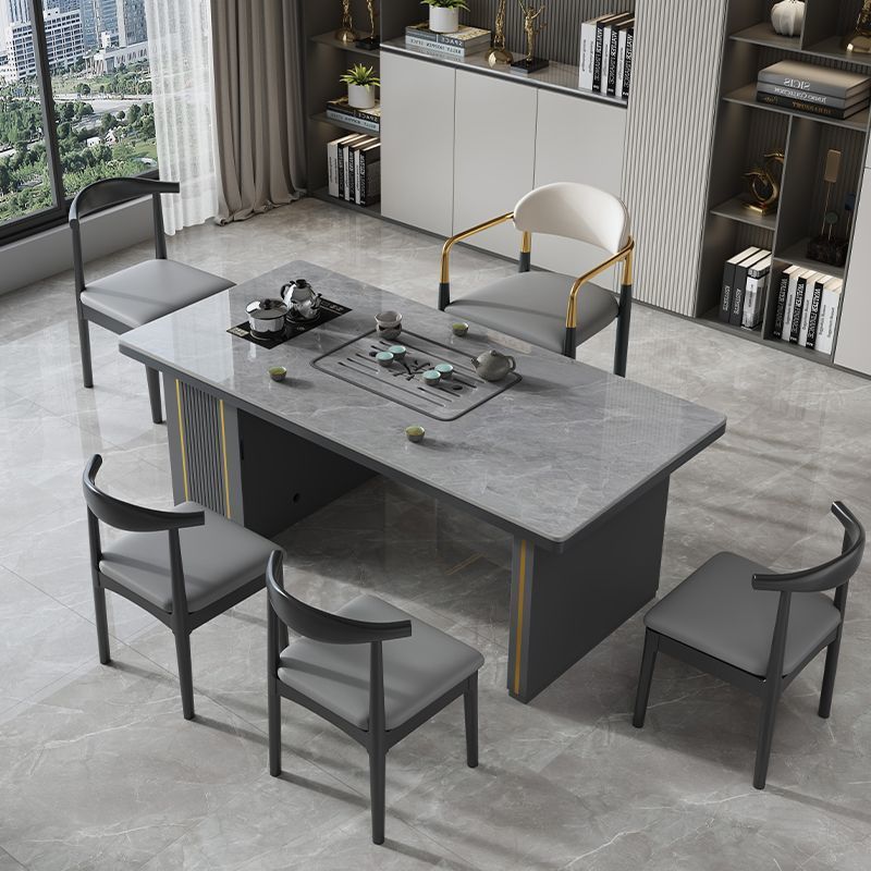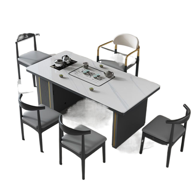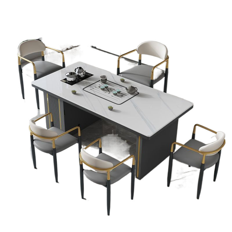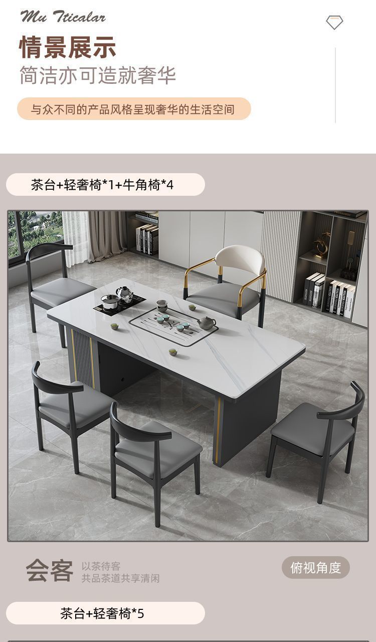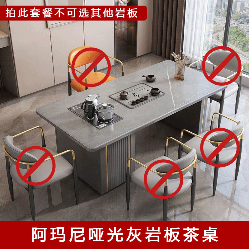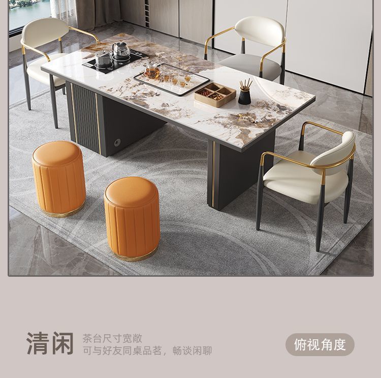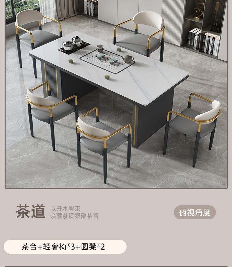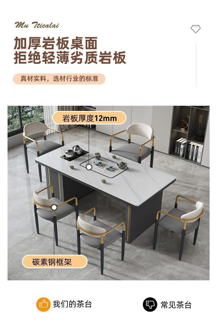轻奢岩板茶台办公室茶桌大理石现代茶桌椅组合家用茶几阳台泡茶桌