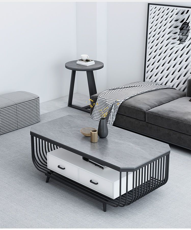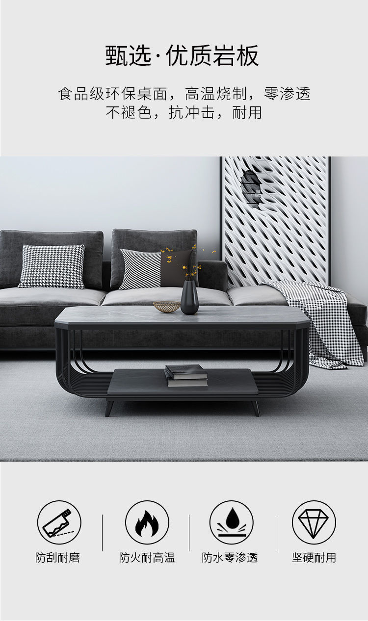全套商用岩板办公室铁艺茶几小户型简约创意泡茶桌客厅家用茶几桌
