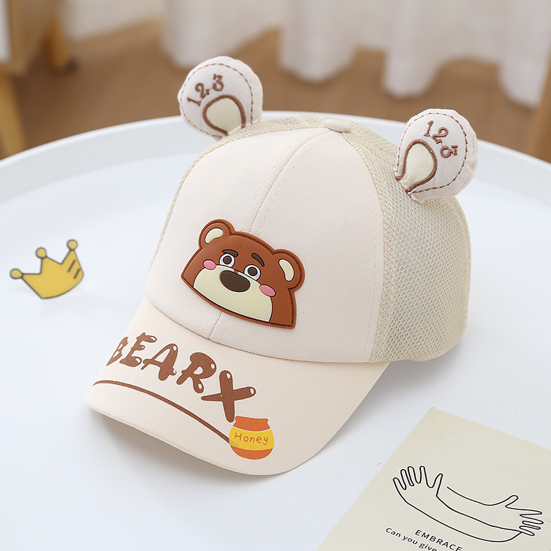日系超萌百搭儿童帽子卡通动物网眼帽薄款遮阳防晒太阳帽棒球帽夏